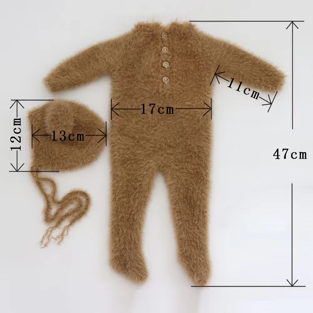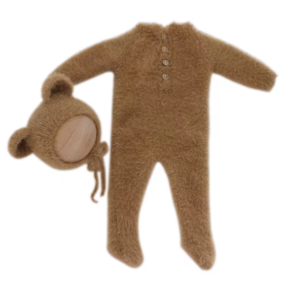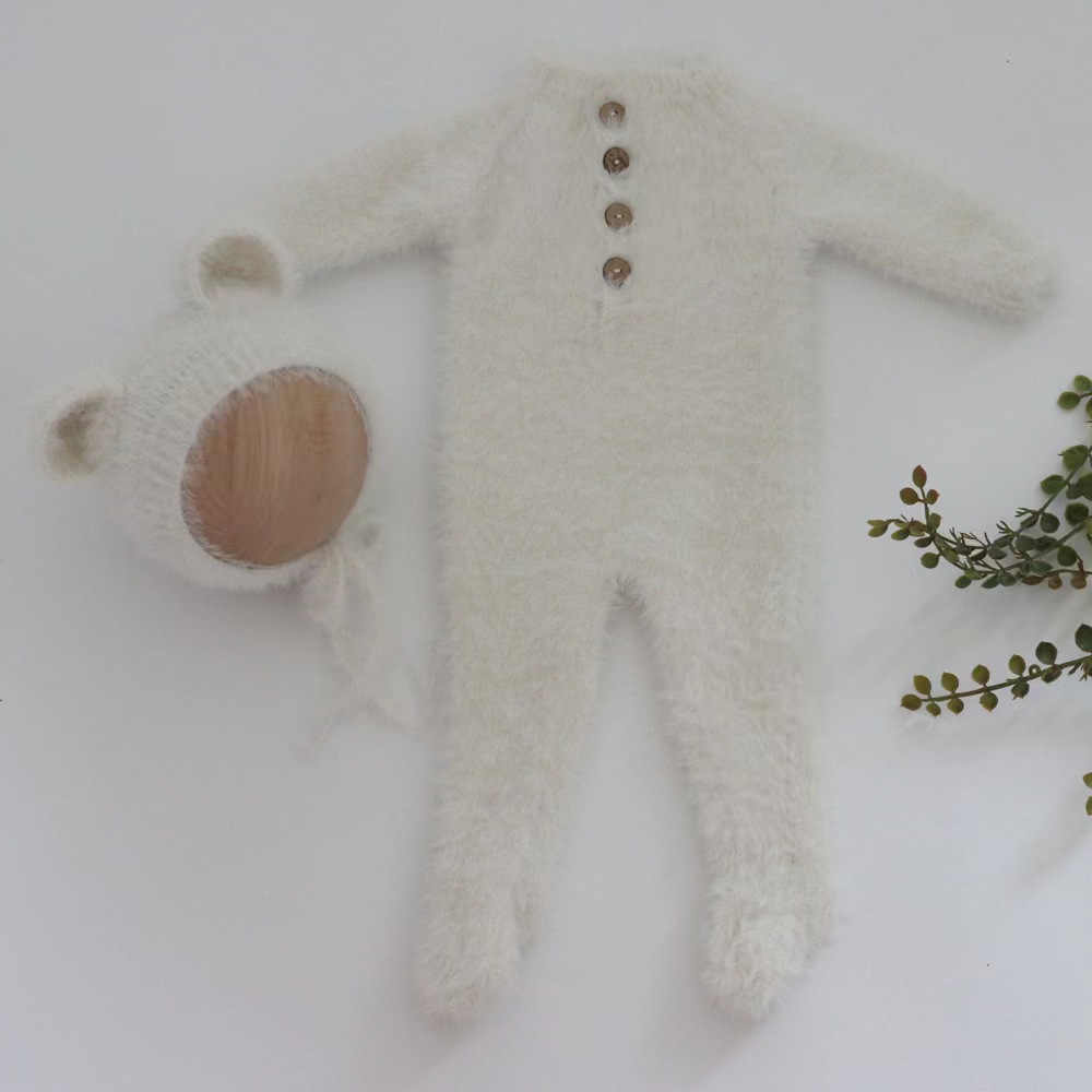 新生儿摄影服装婴儿柔软针织又萌又可爱小毛熊连体衣+帽子