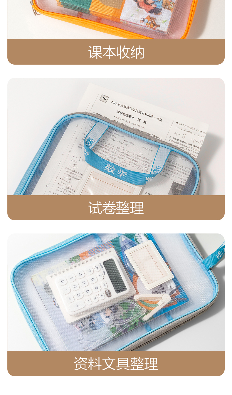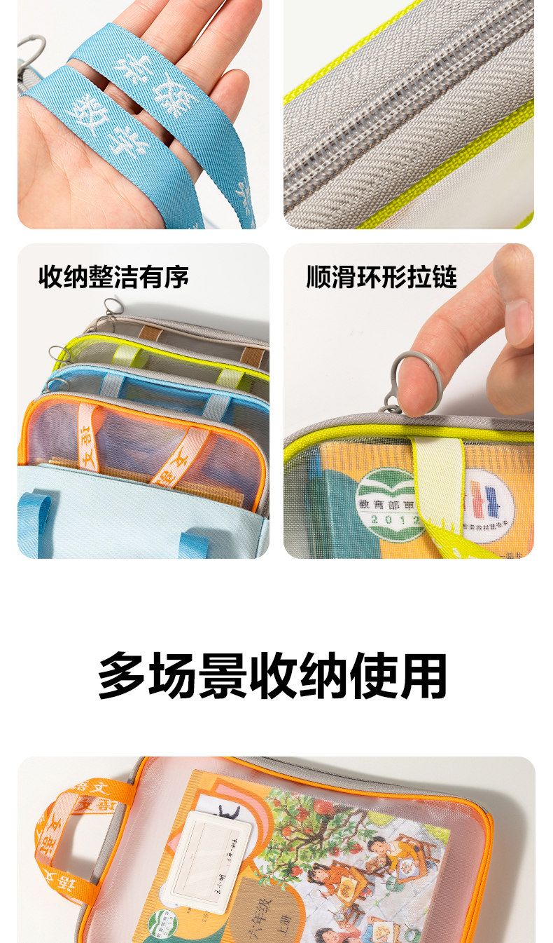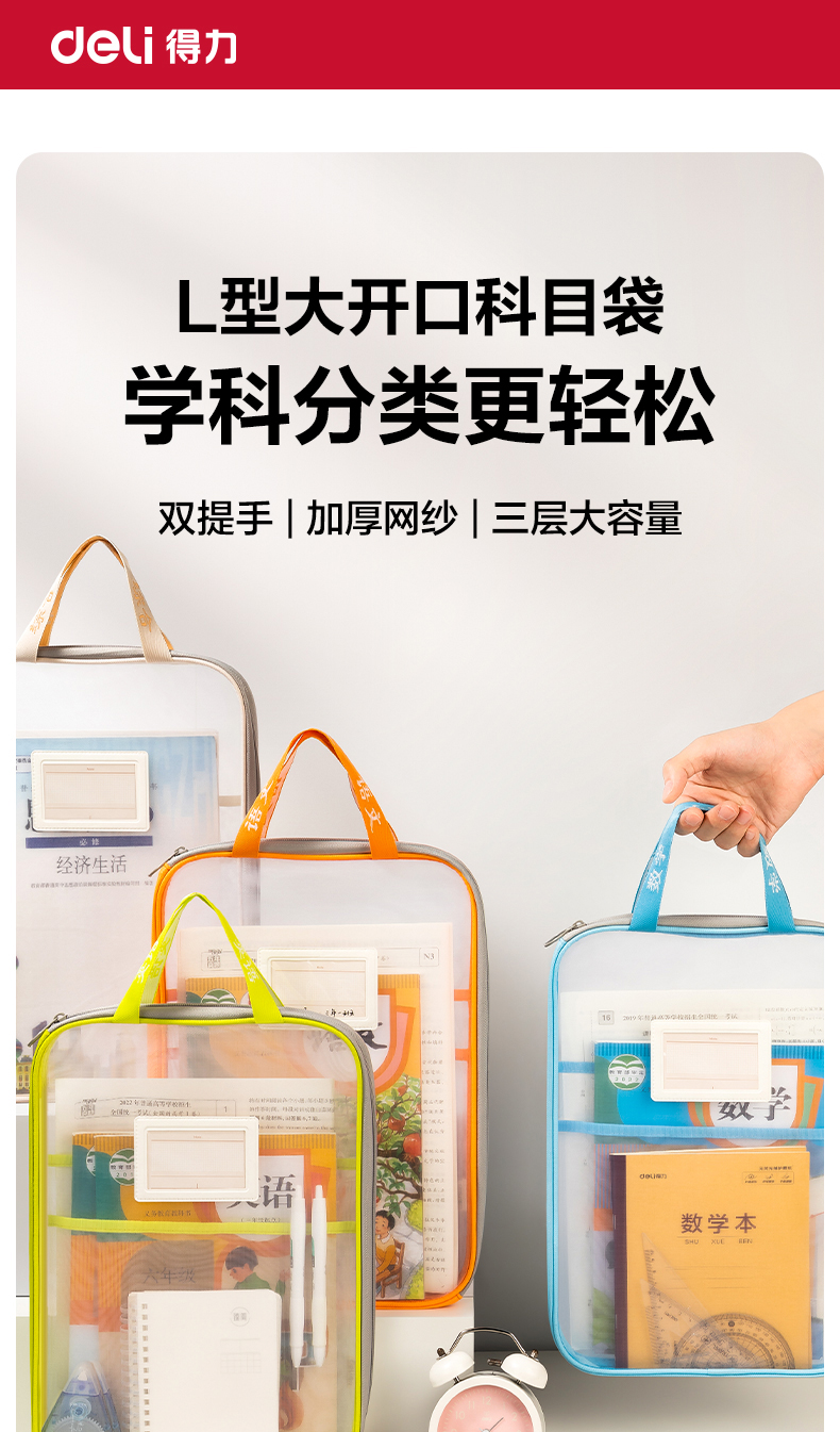 得力加厚分类科目袋小学生L型文件袋学科袋拉链式文件包手提网纱大开口书袋作业补习袋试卷收纳袋档案资料袋