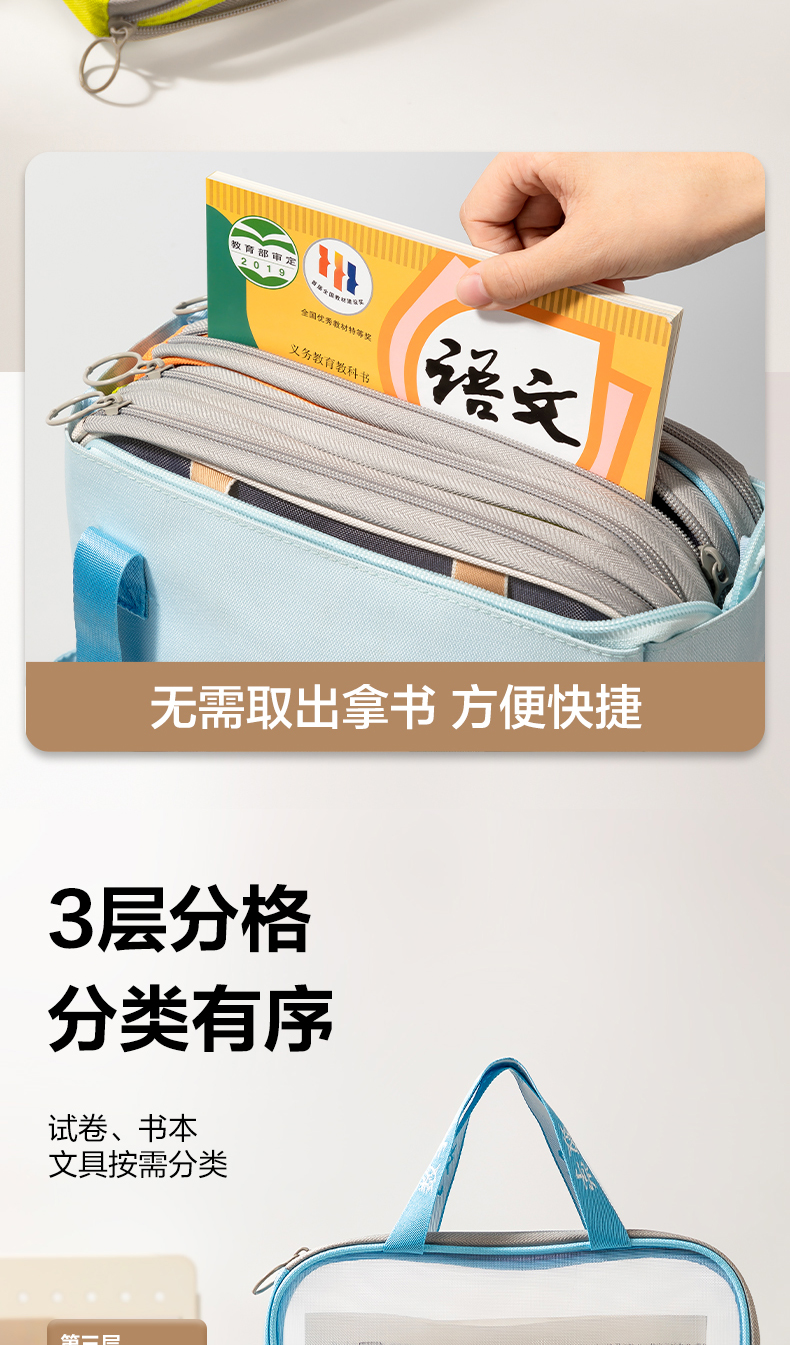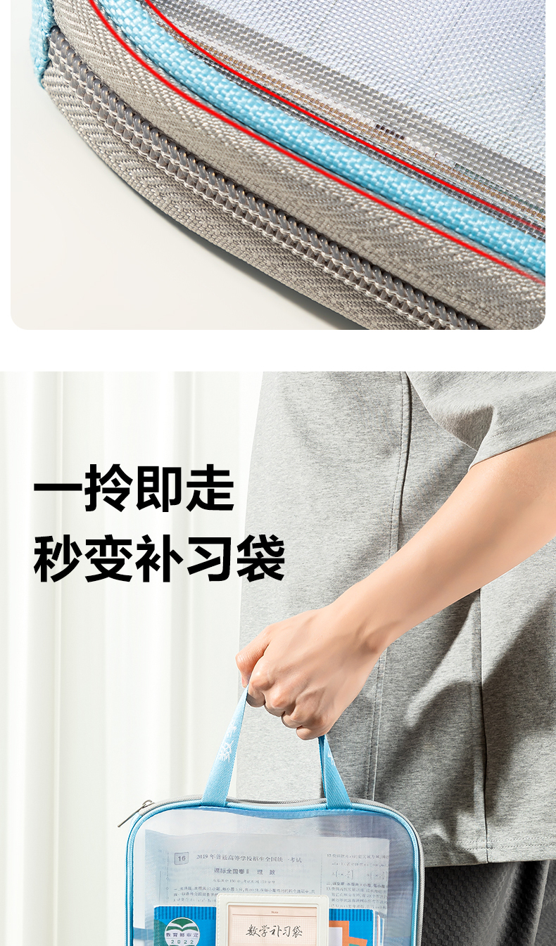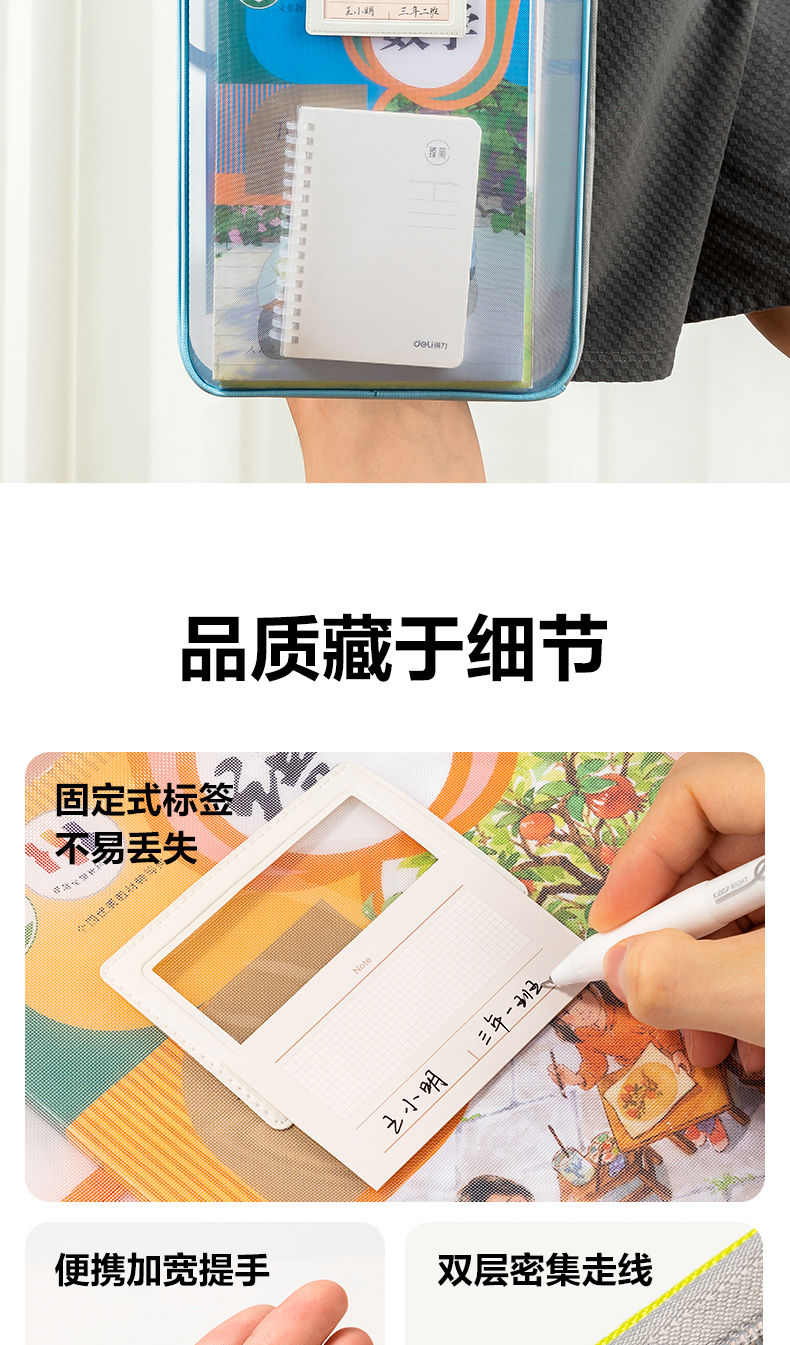 得力加厚分类科目袋小学生L型文件袋学科袋拉链式文件包手提网纱大开口书袋作业补习袋试卷收纳袋档案资料袋