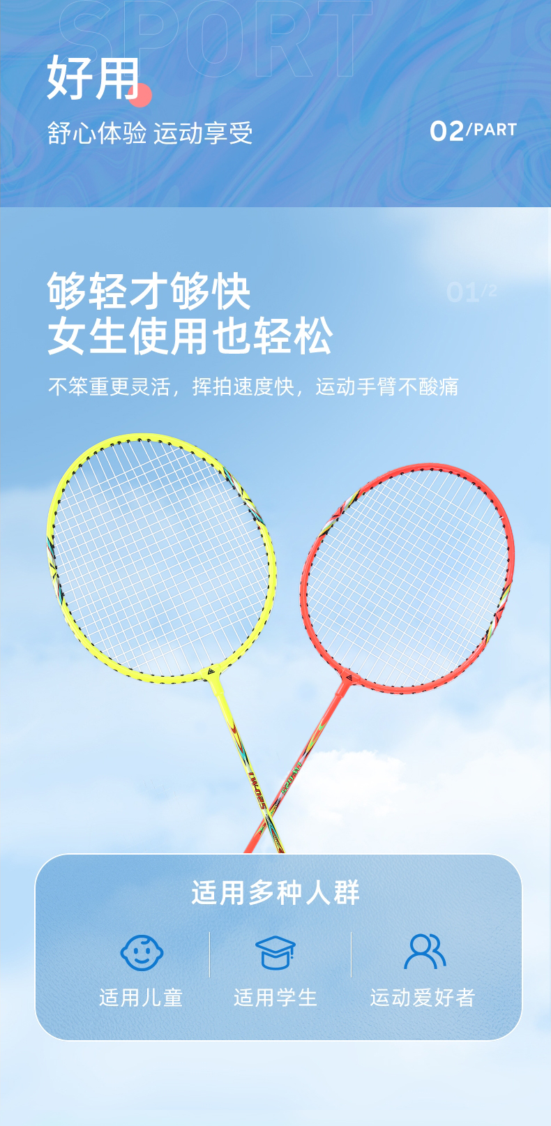 兰威羽毛球拍正品铝铁合金碳素纤维耐用超轻进攻双拍套装羽毛拍