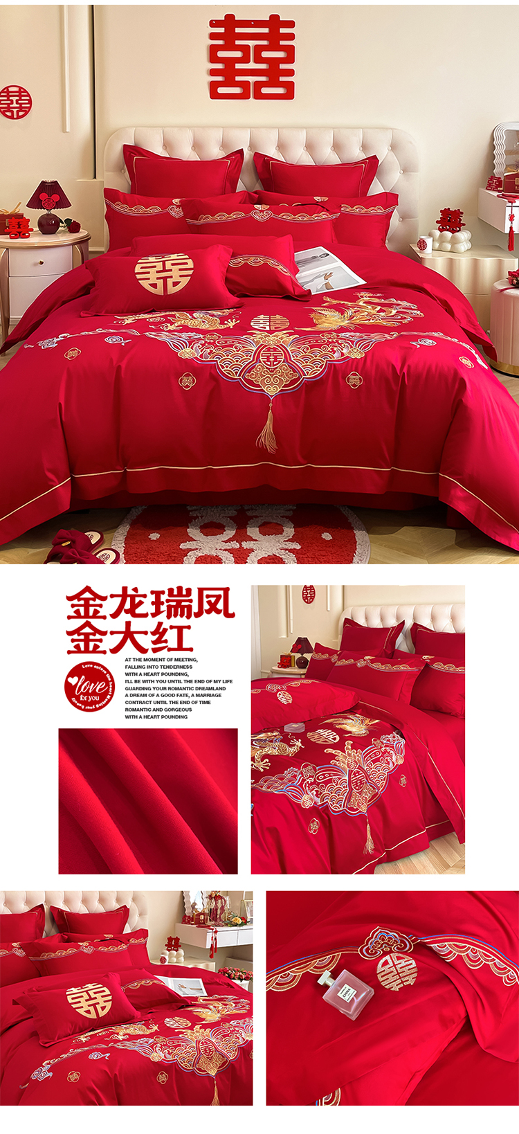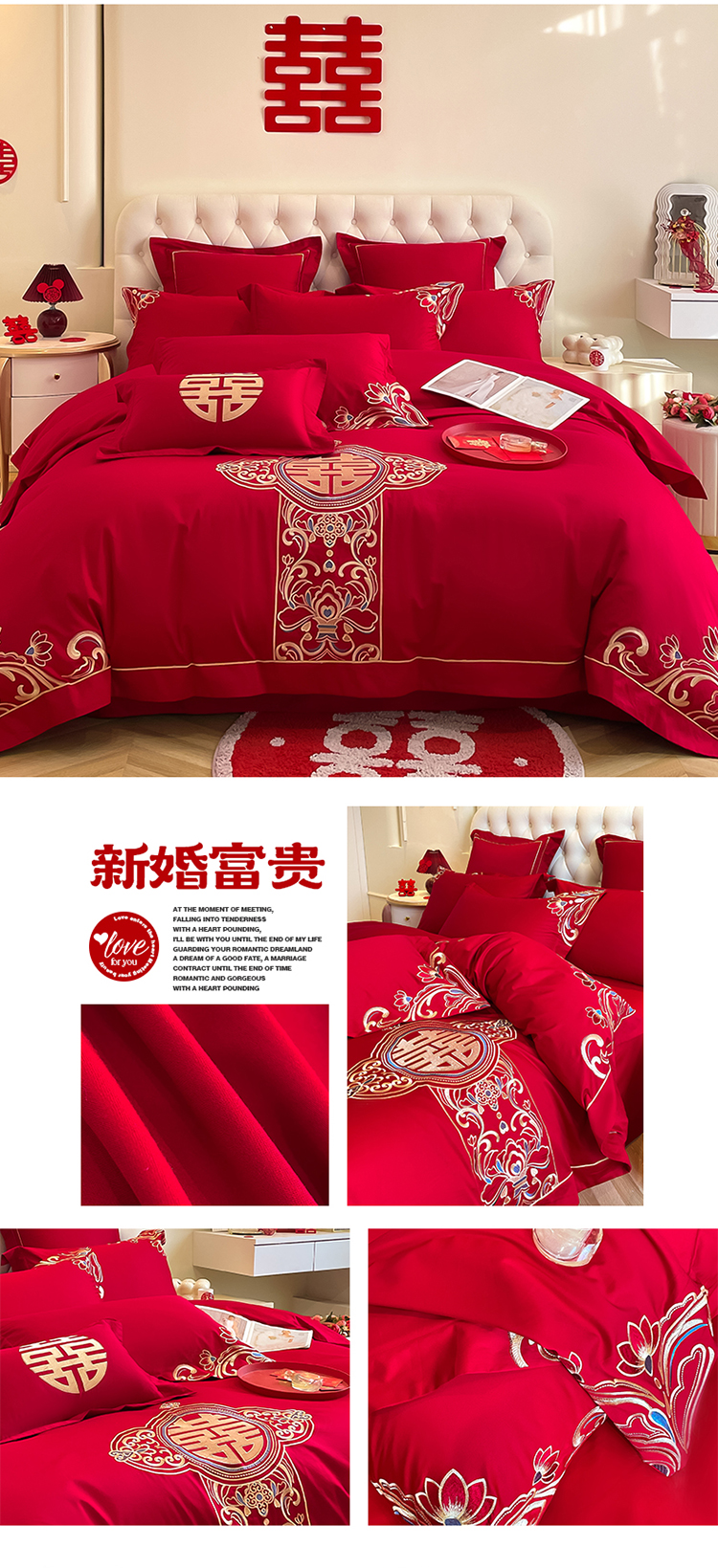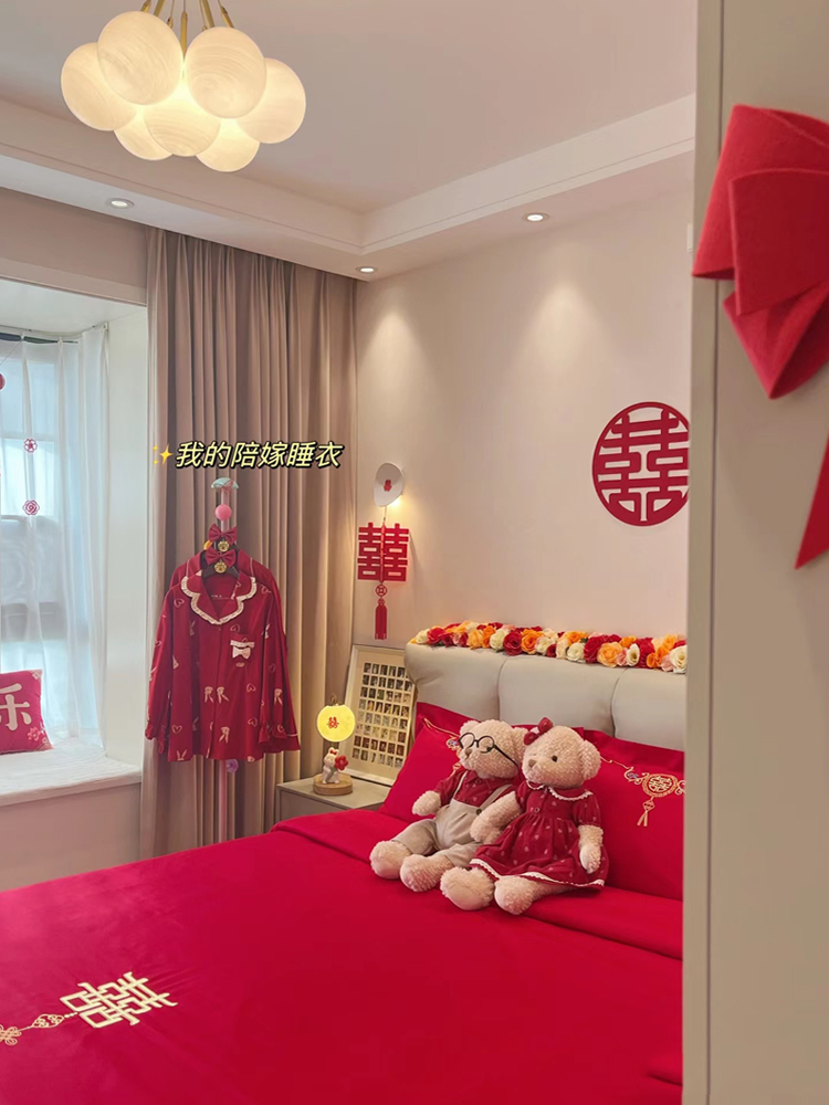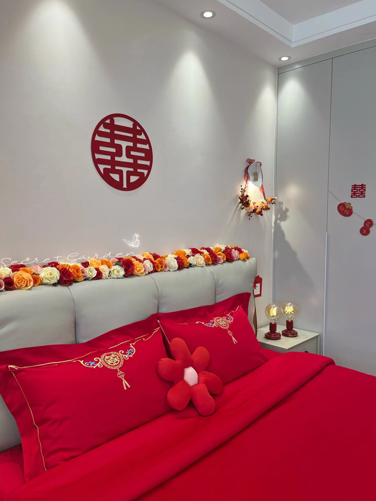 高档160支长绒棉结婚四件套纯棉陪嫁被套红色全棉床单新婚庆床品8
