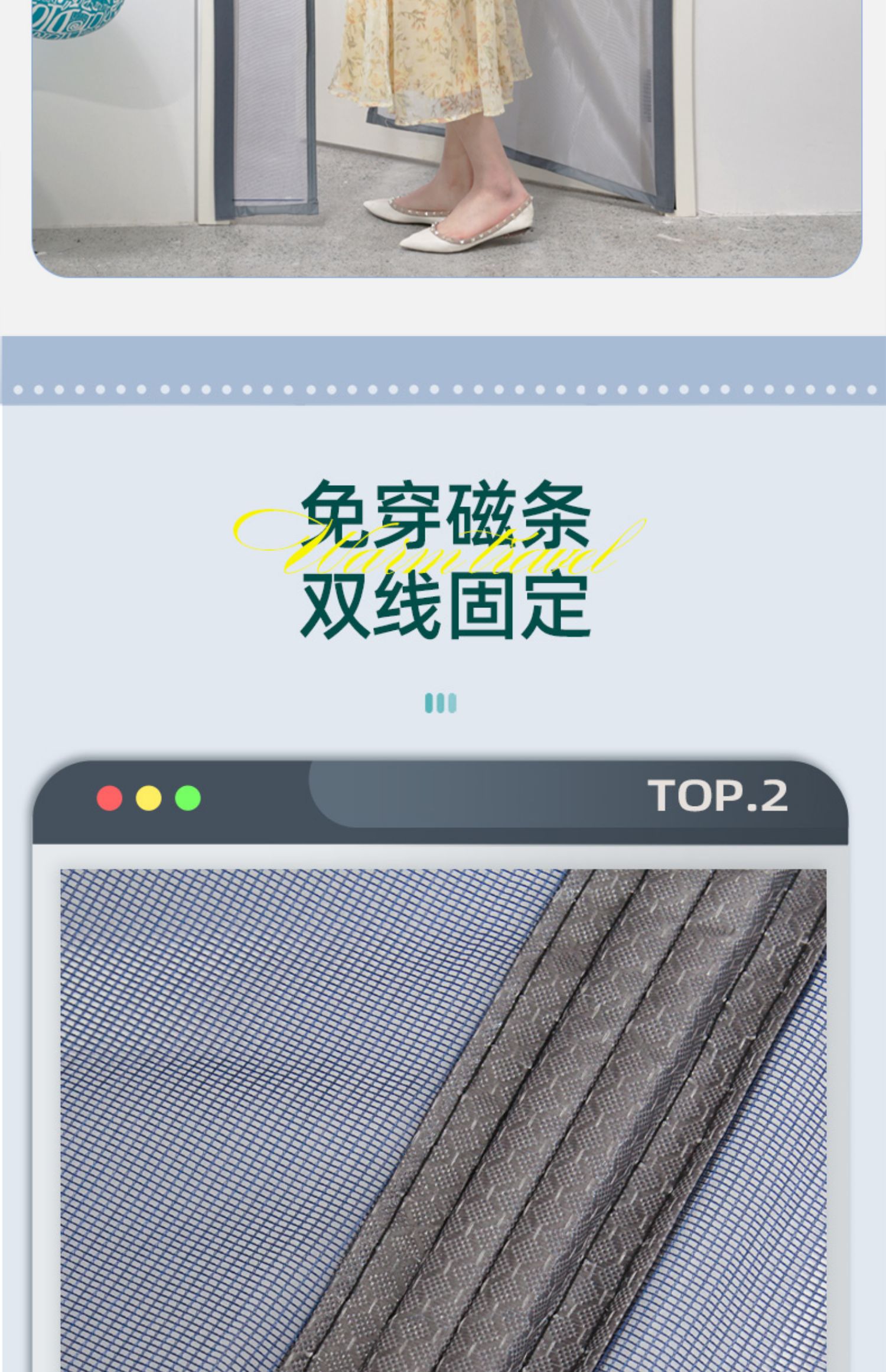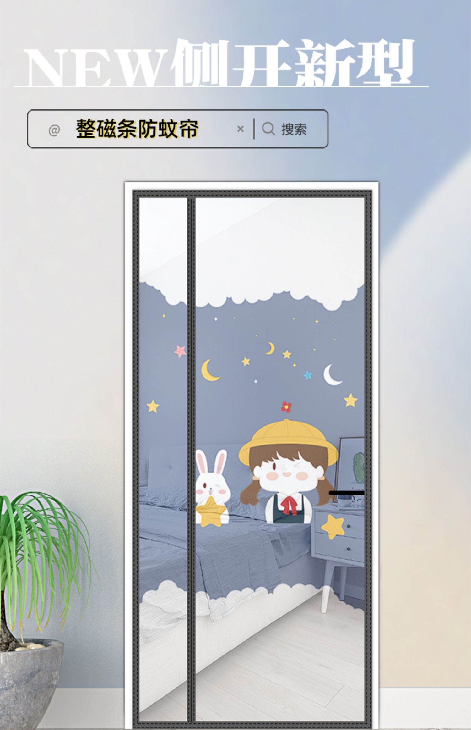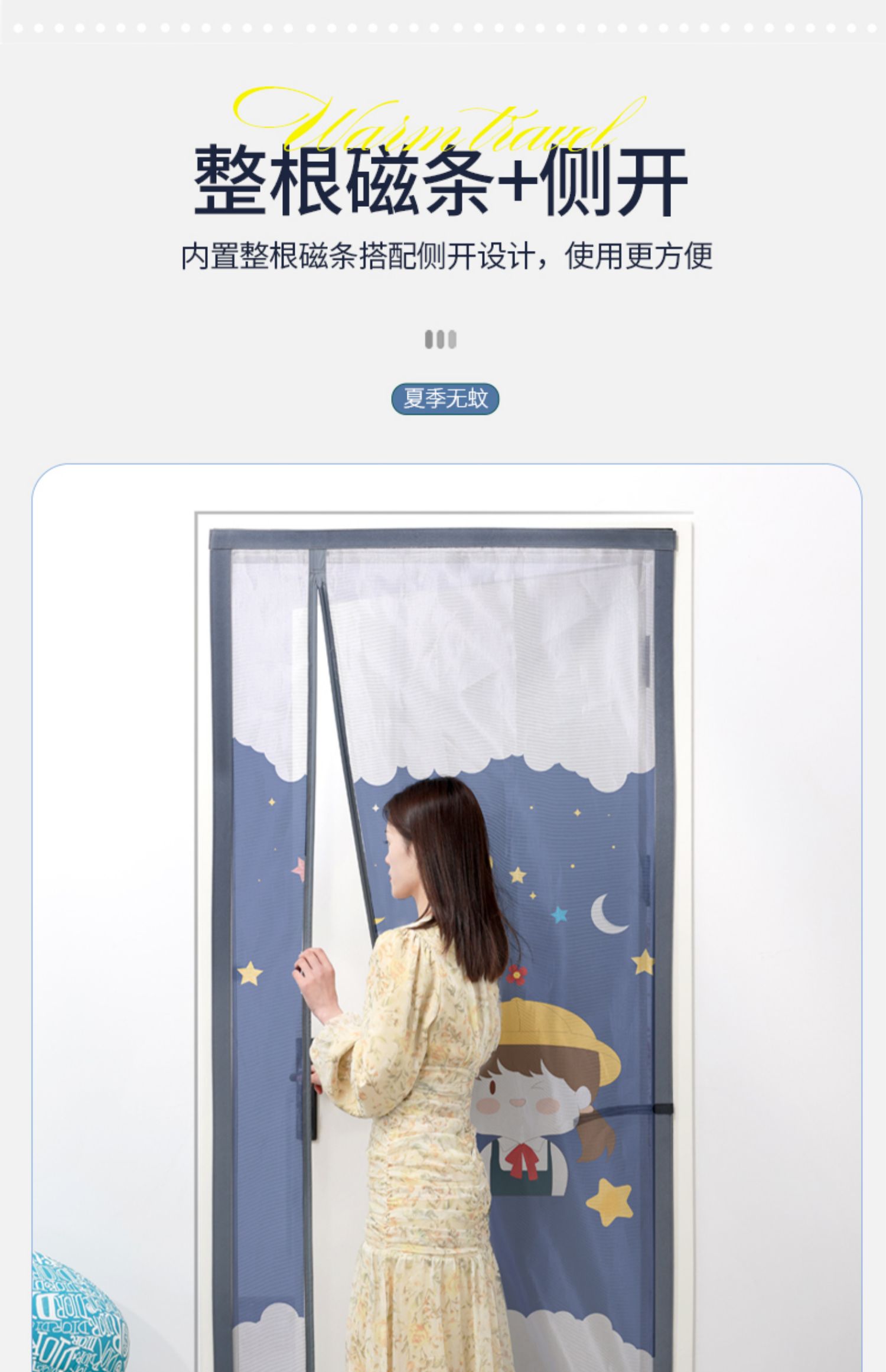夏天门帘防蚊全磁条魔术贴家用免打孔纱门纱窗蚊帐隔断帘子侧开款