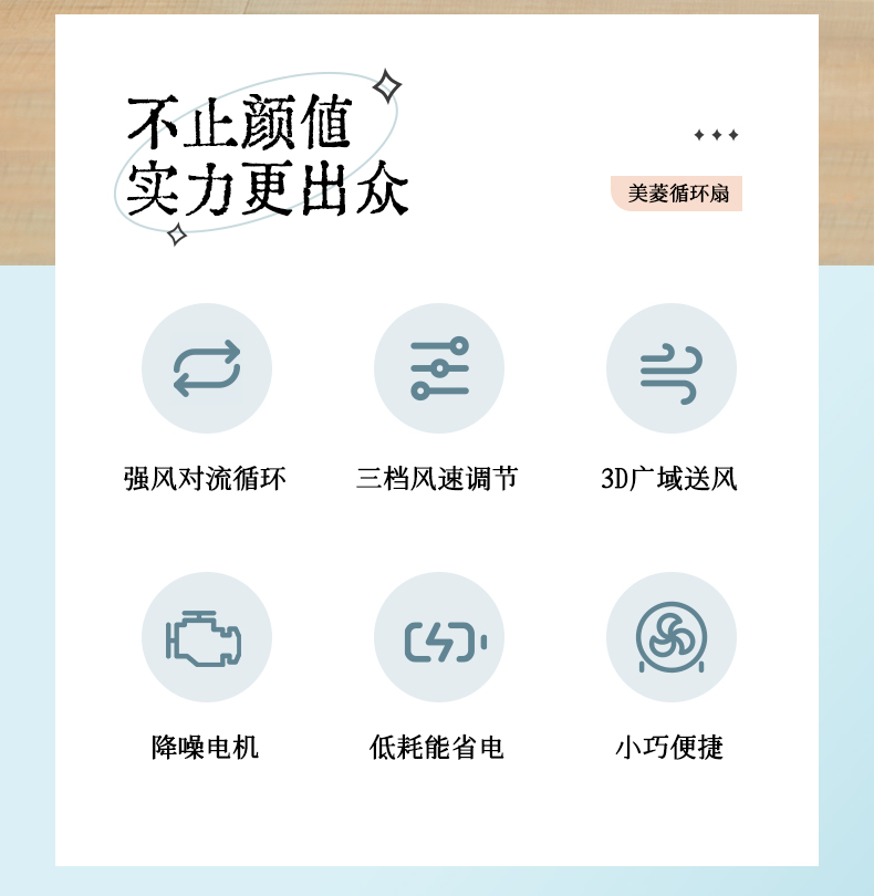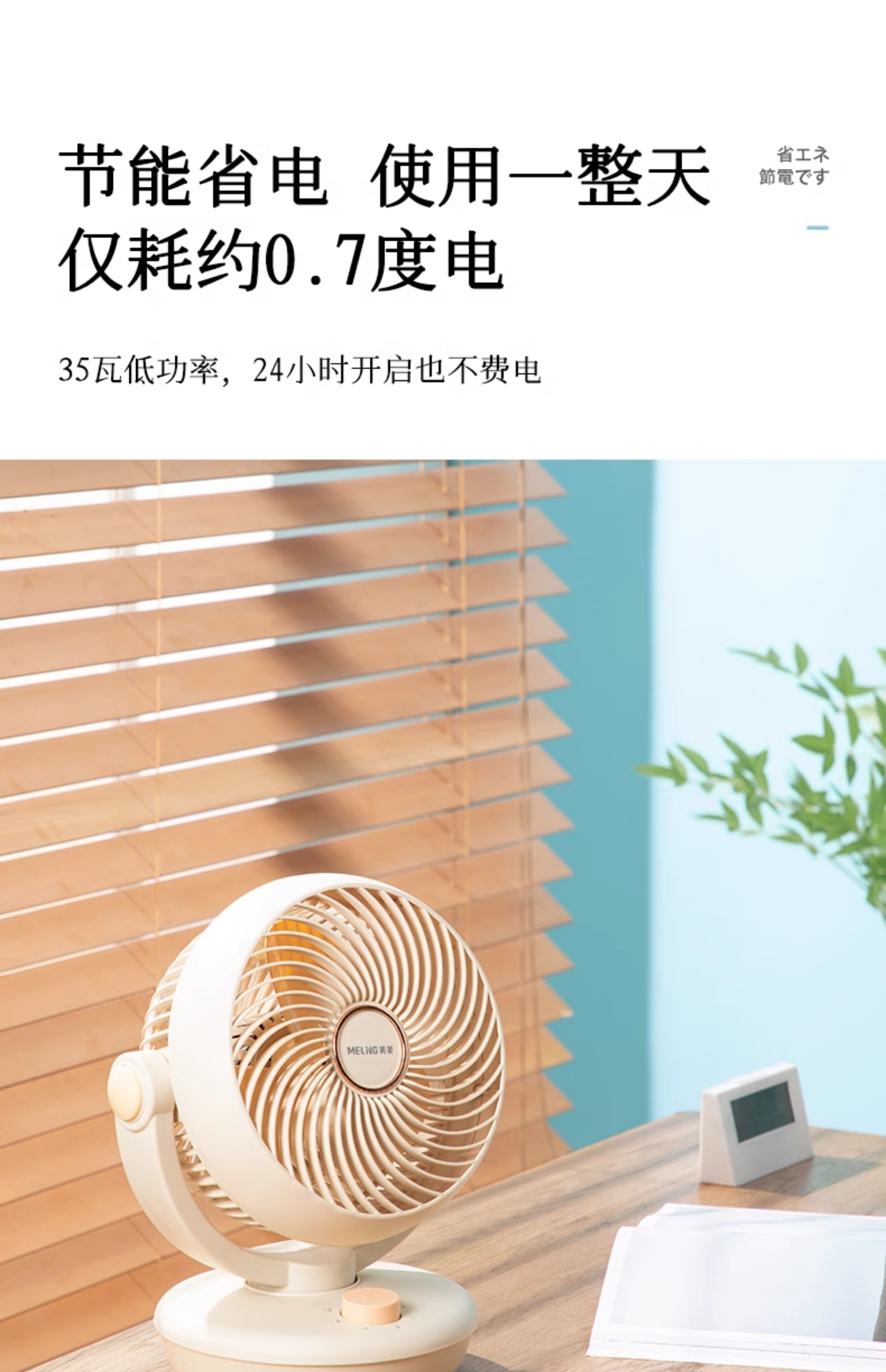 美菱空气循环扇台式轻音家用电风扇学生宿舍桌面办公室小型电扇