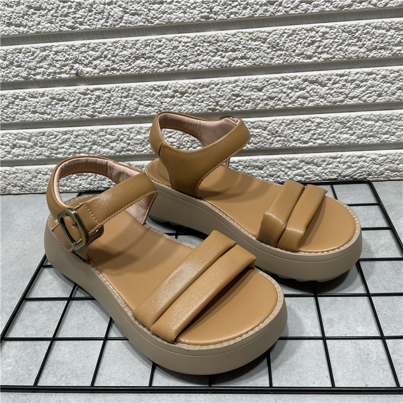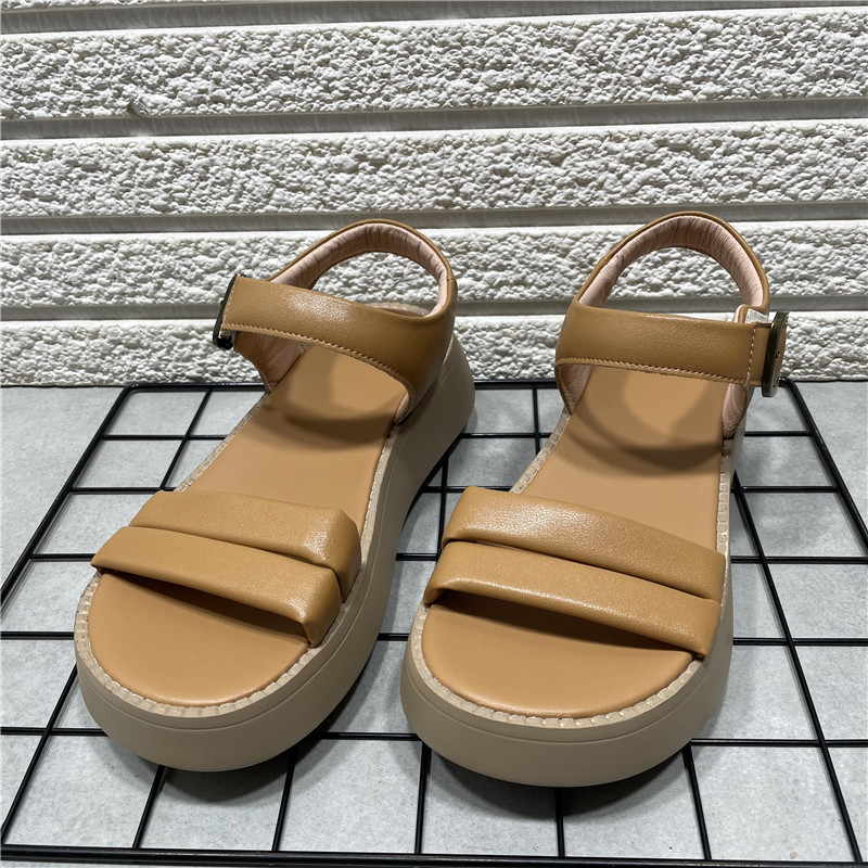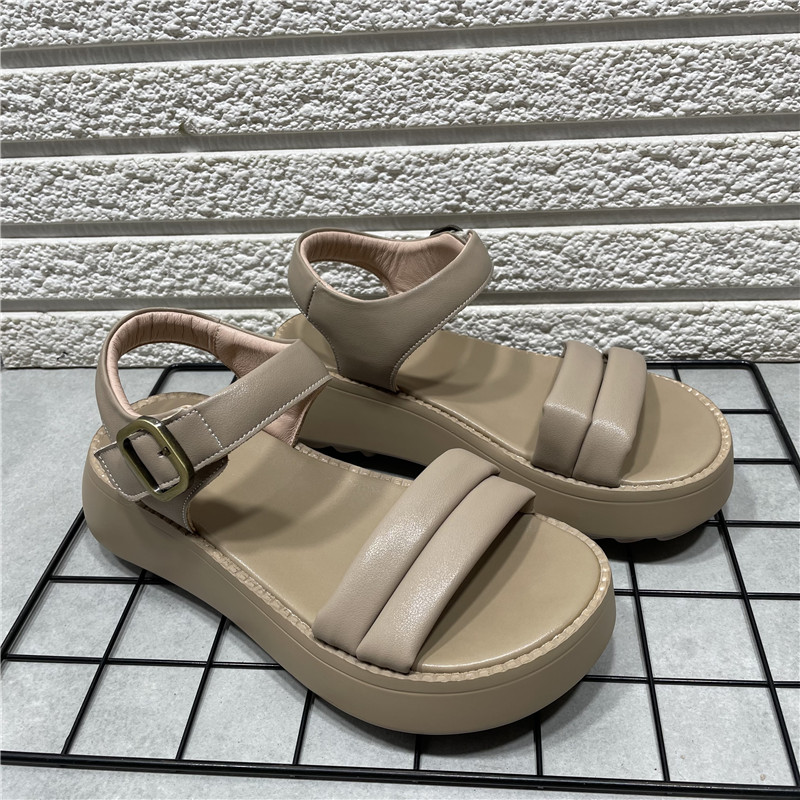 断码处理厚底轻便女鞋2024新款夏季真皮舒适罗马凉鞋女外穿妈妈鞋
