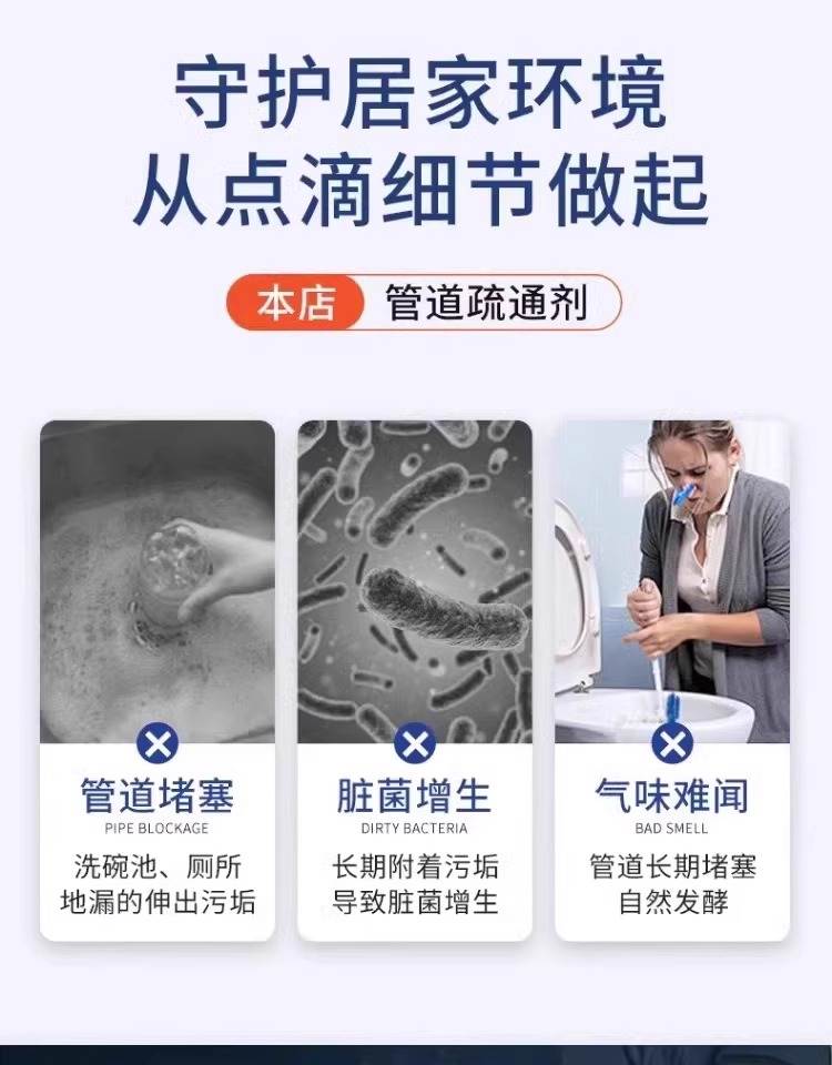 管道疏通剂强力溶解官方旗舰店厨房马桶堵塞地漏防臭器去异味下水