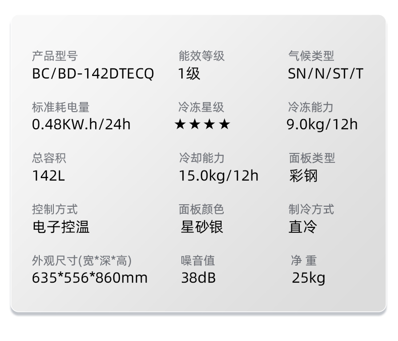 美菱142L一级变频家用减霜冷藏冷冻冰柜节能冷柜BC/BD-142DTECQ