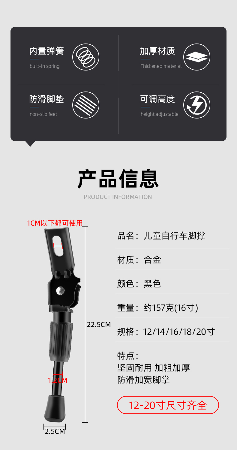 儿童自行车脚撑童车停车架平衡车支架脚撑山地车车梯子配件大全