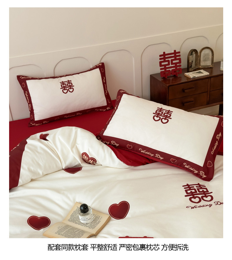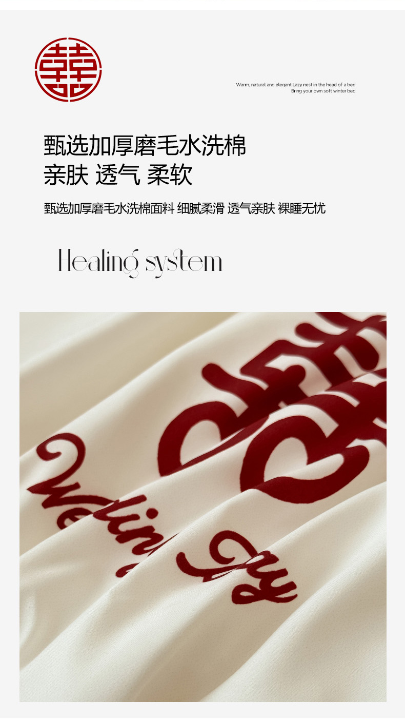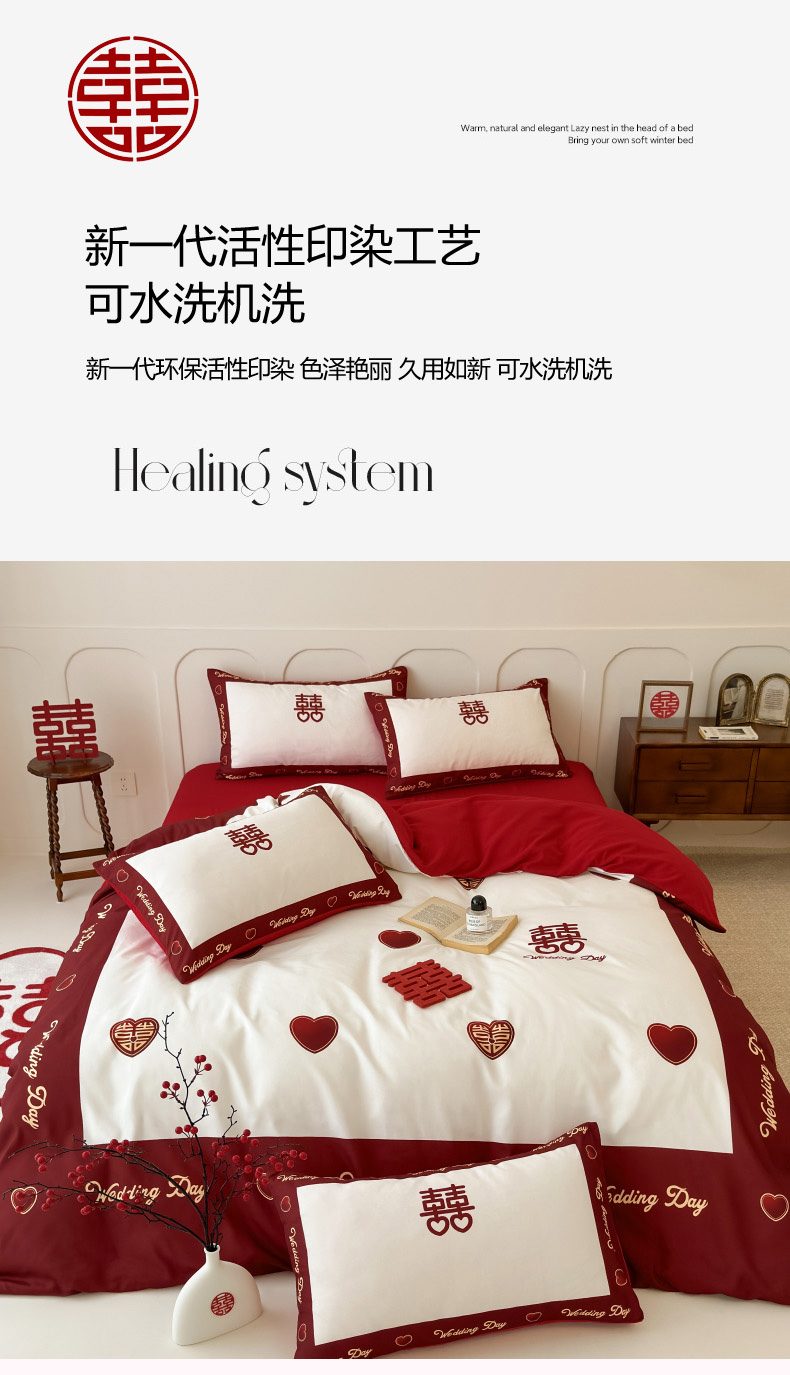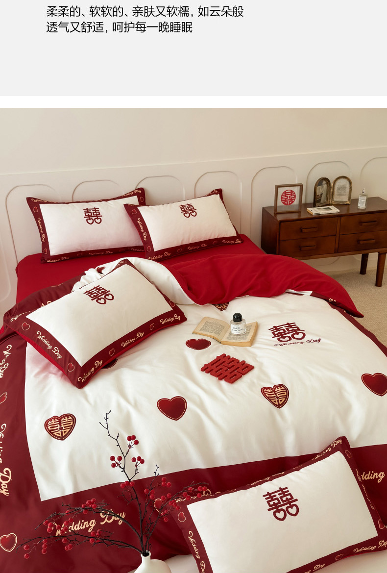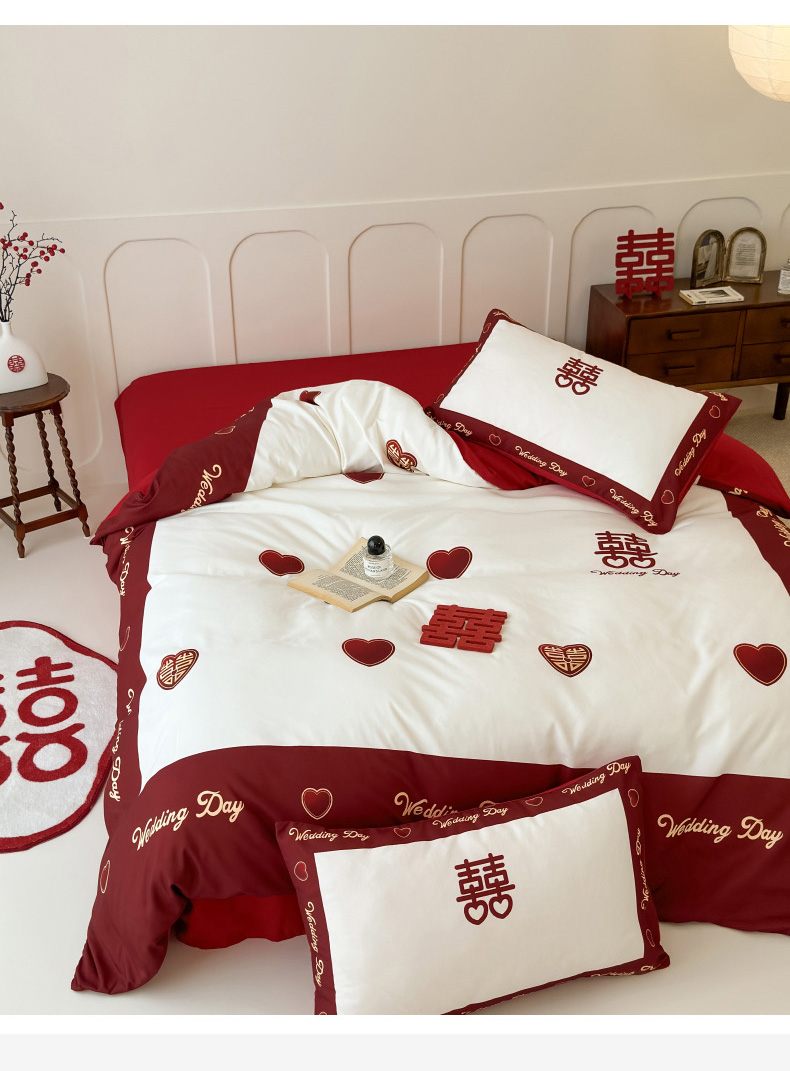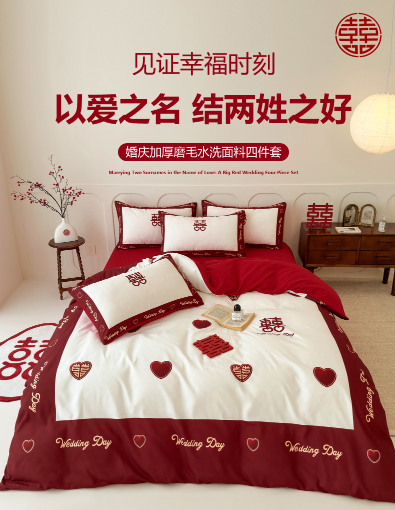 轻奢中式婚庆磨毛四件套大红色被套床单高档结婚床上用品双人喜被
