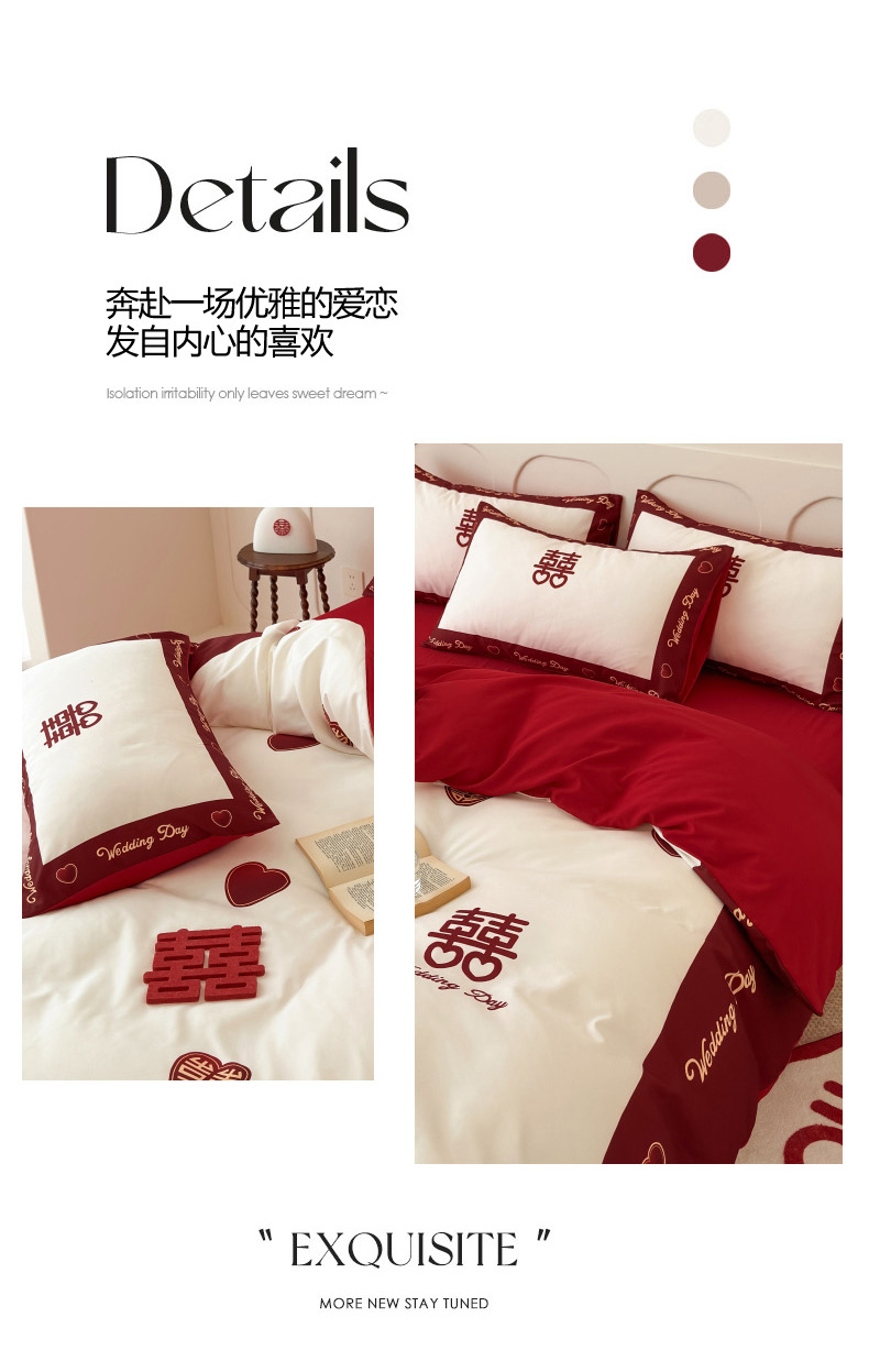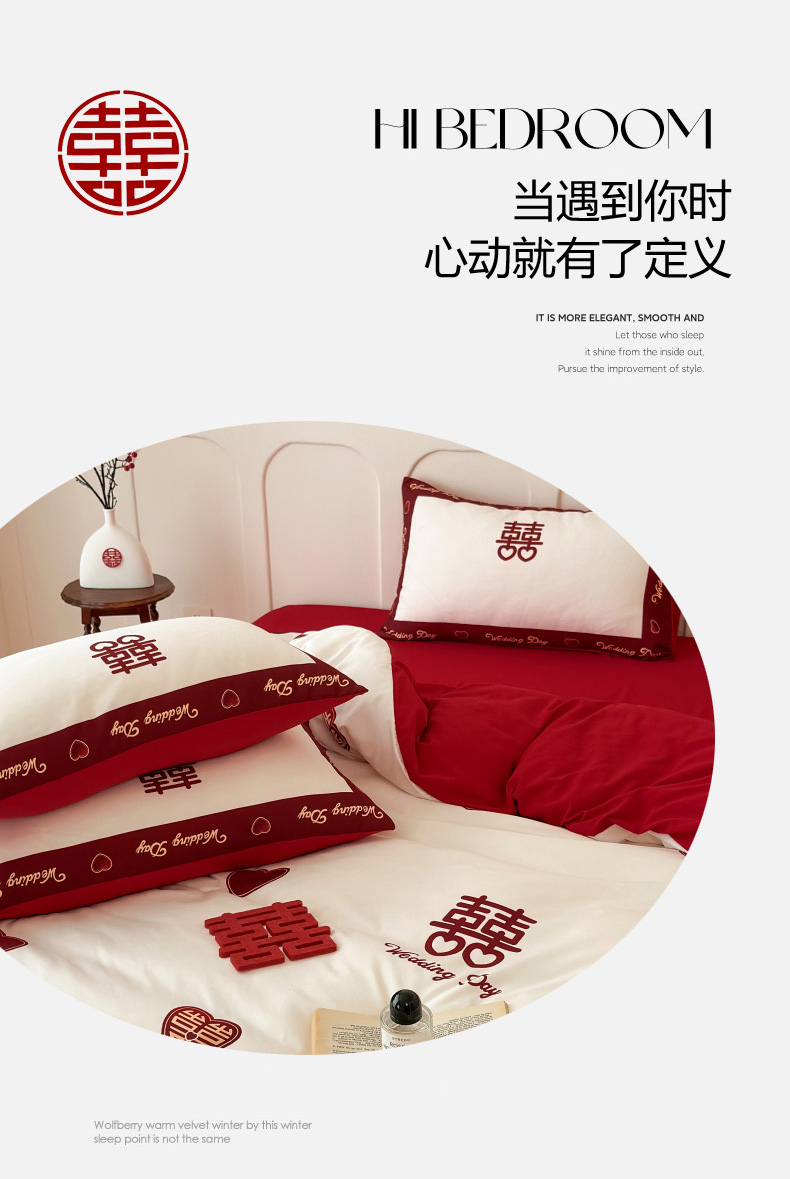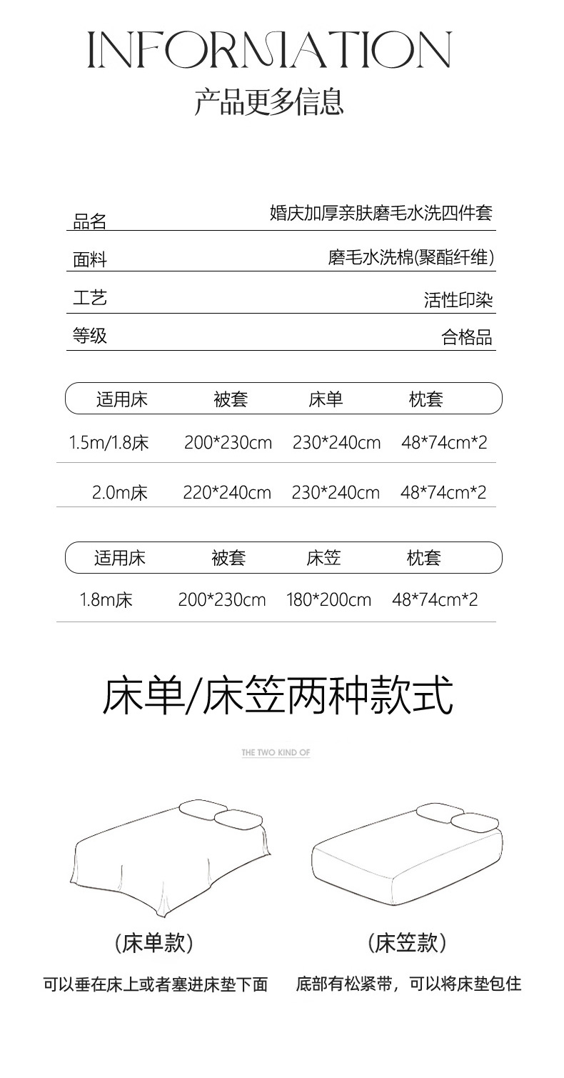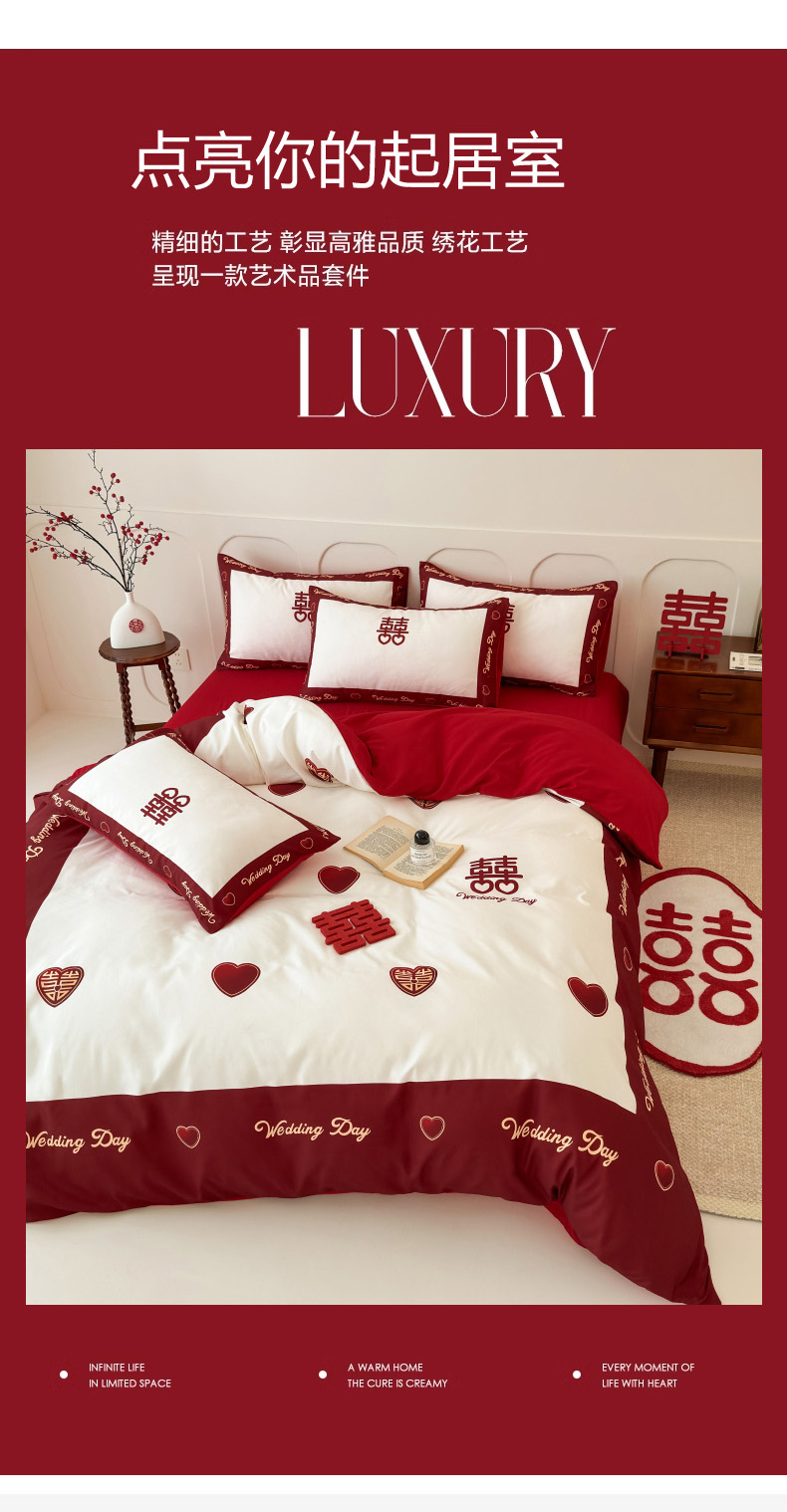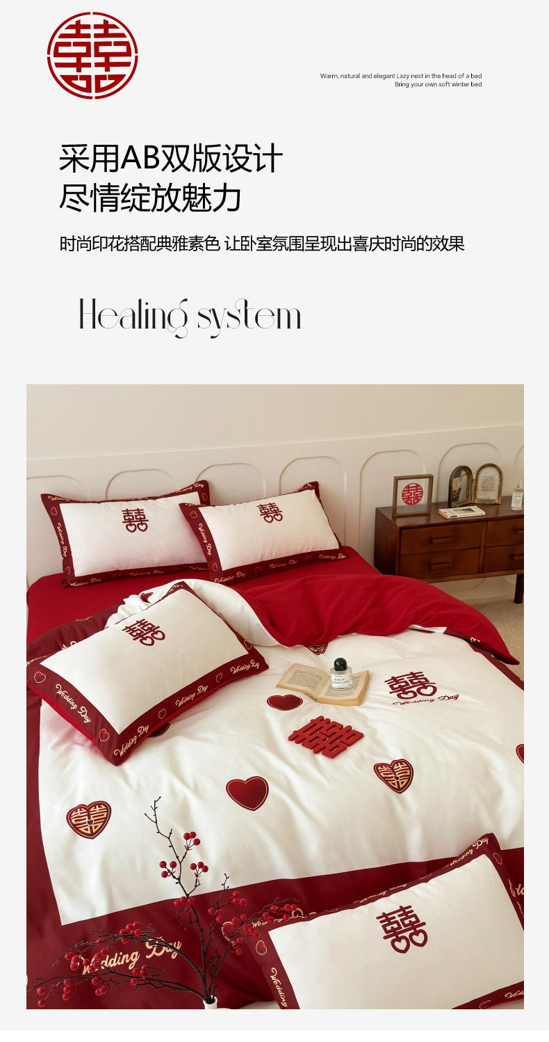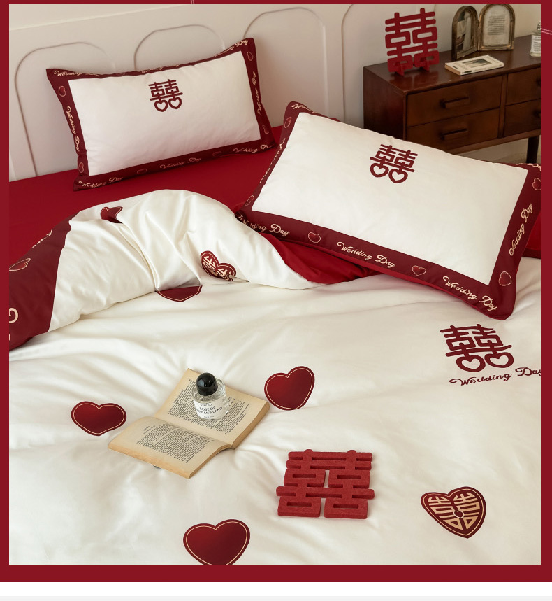 轻奢中式婚庆磨毛四件套大红色被套床单高档结婚床上用品双人喜被