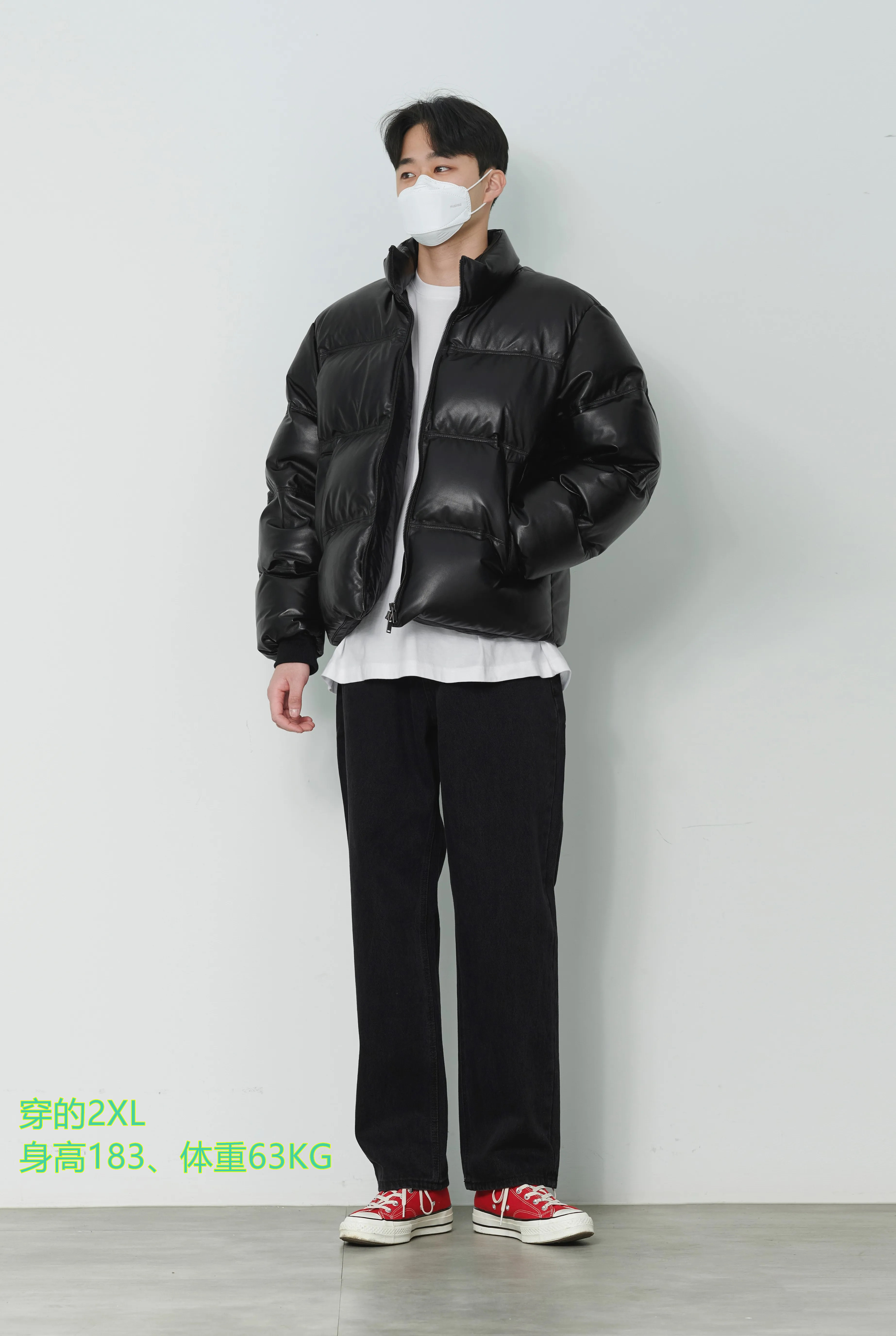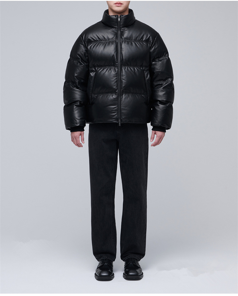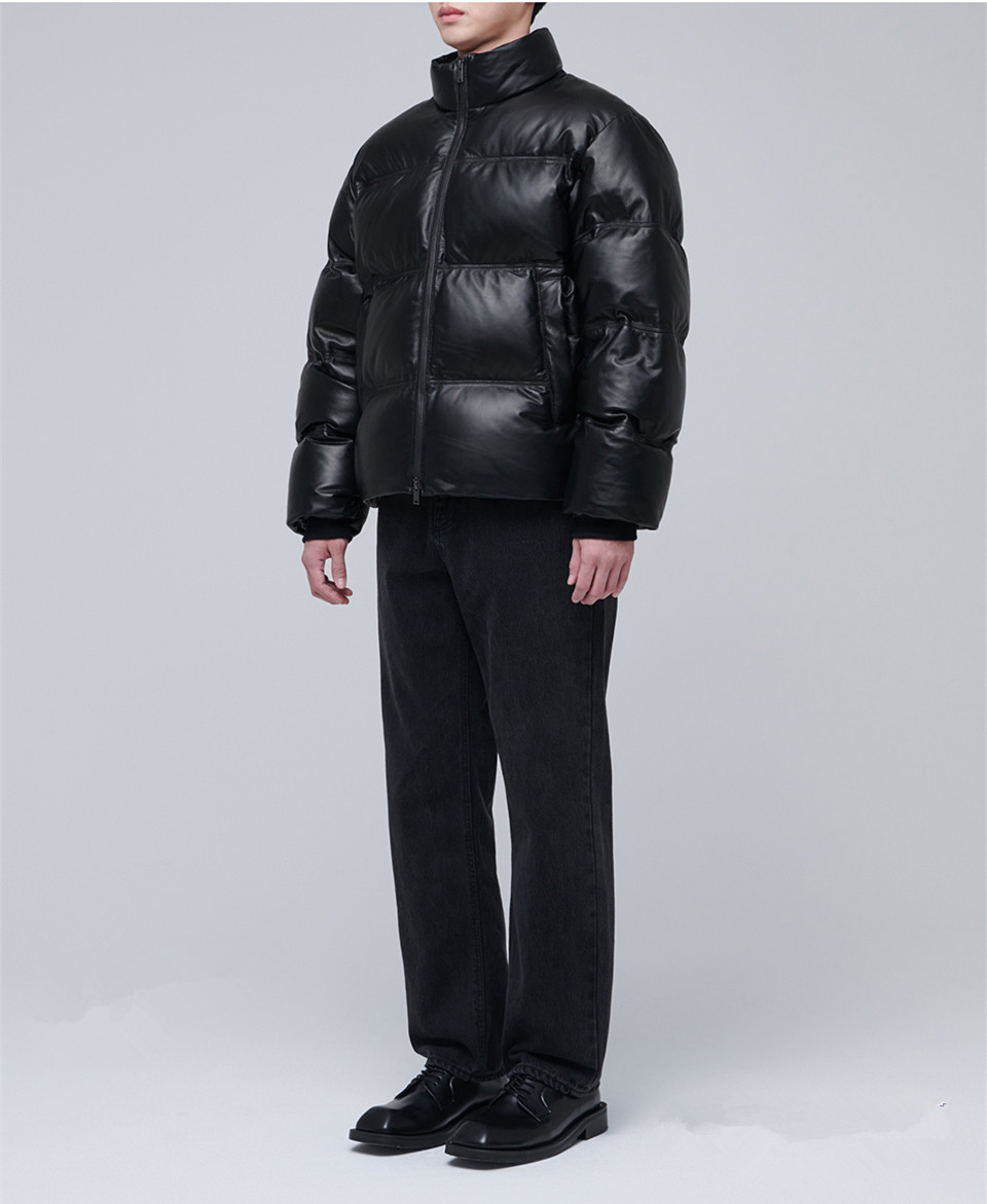 外贸微落肩廓形短款进口绵羊皮羽绒服中性男女