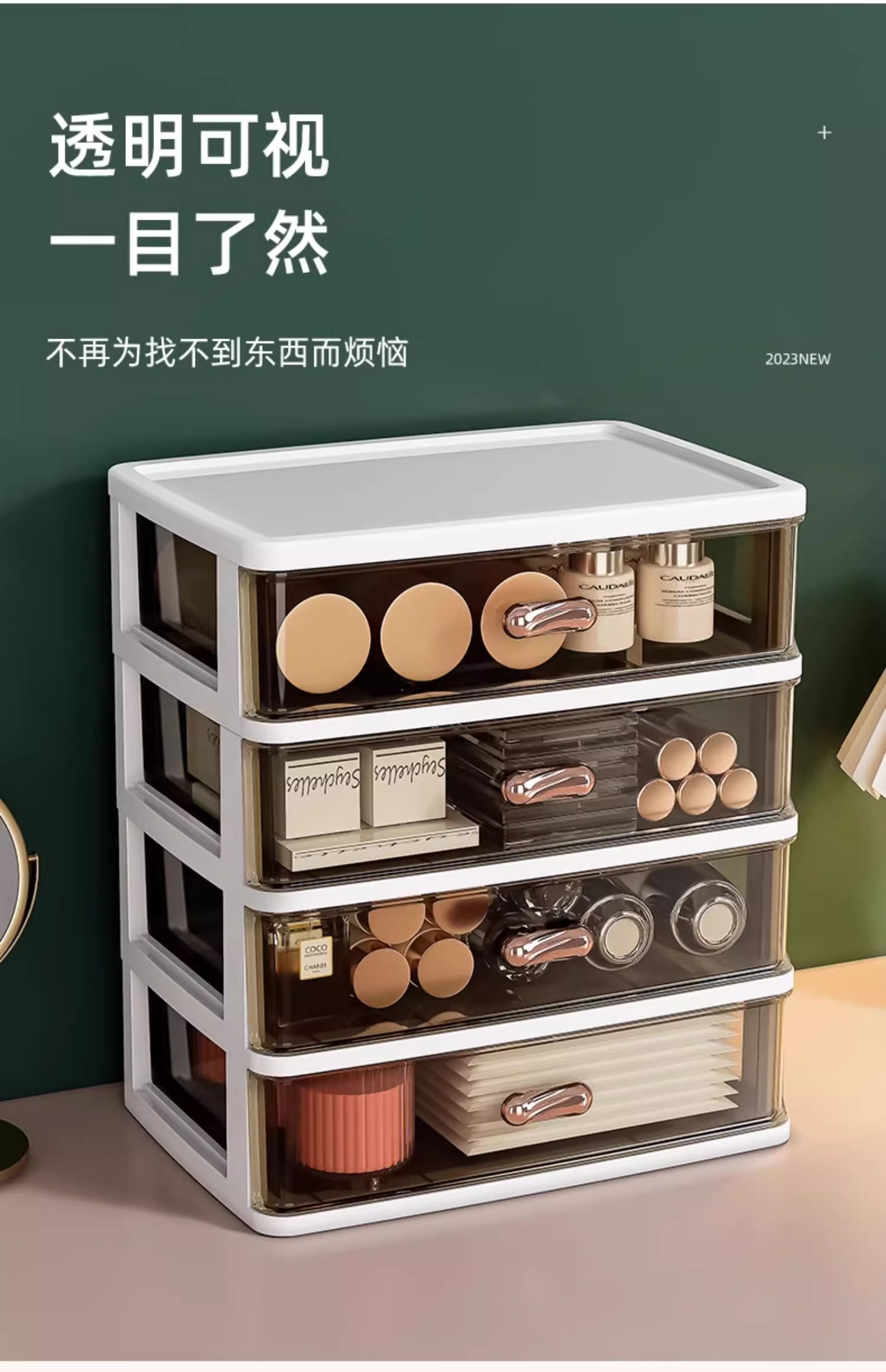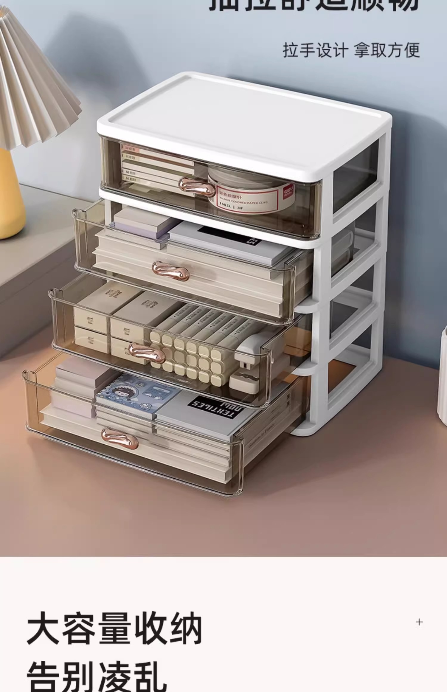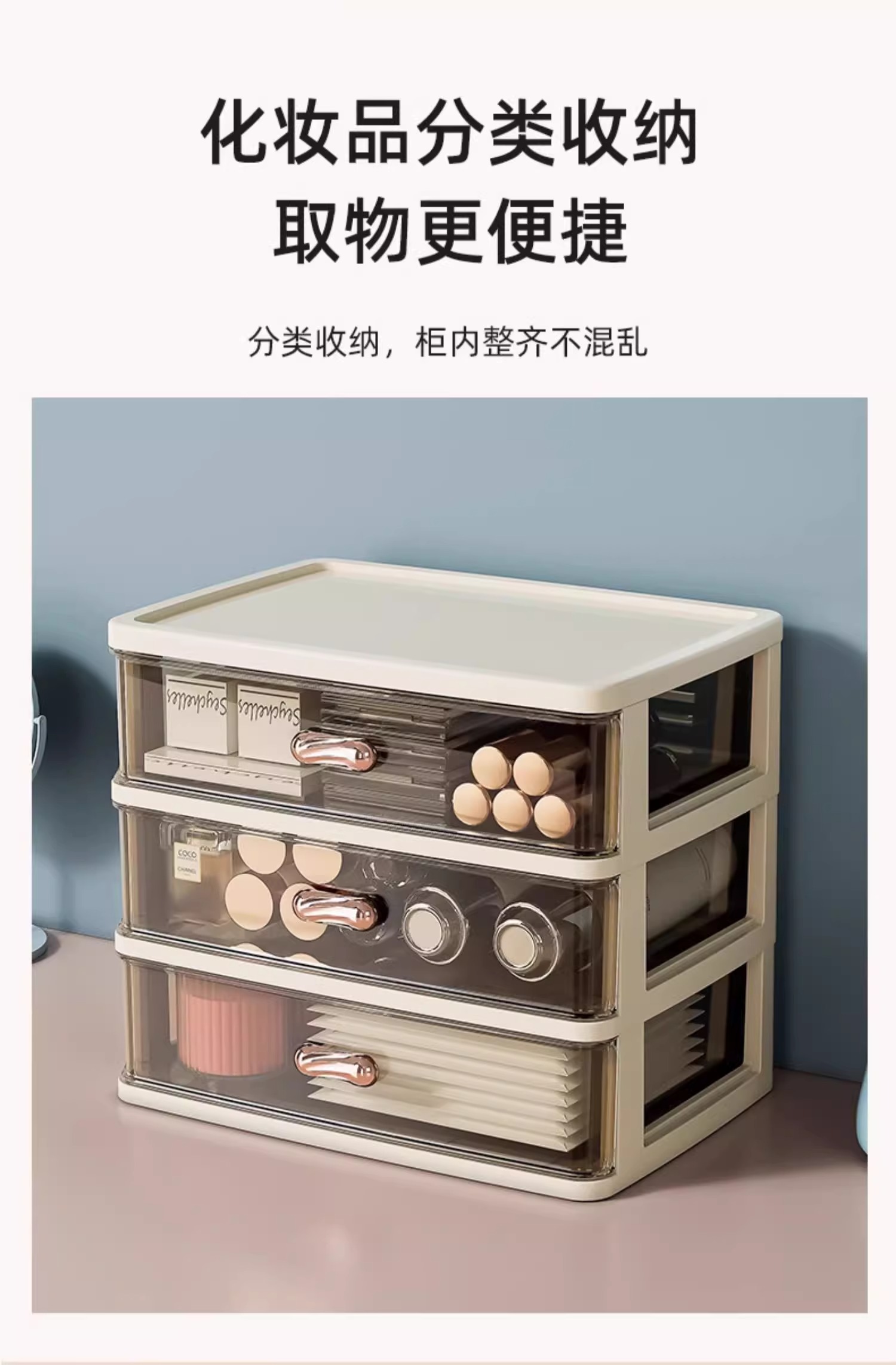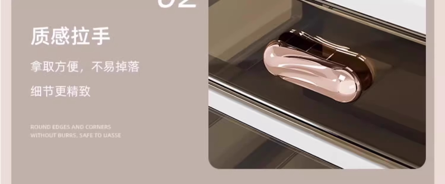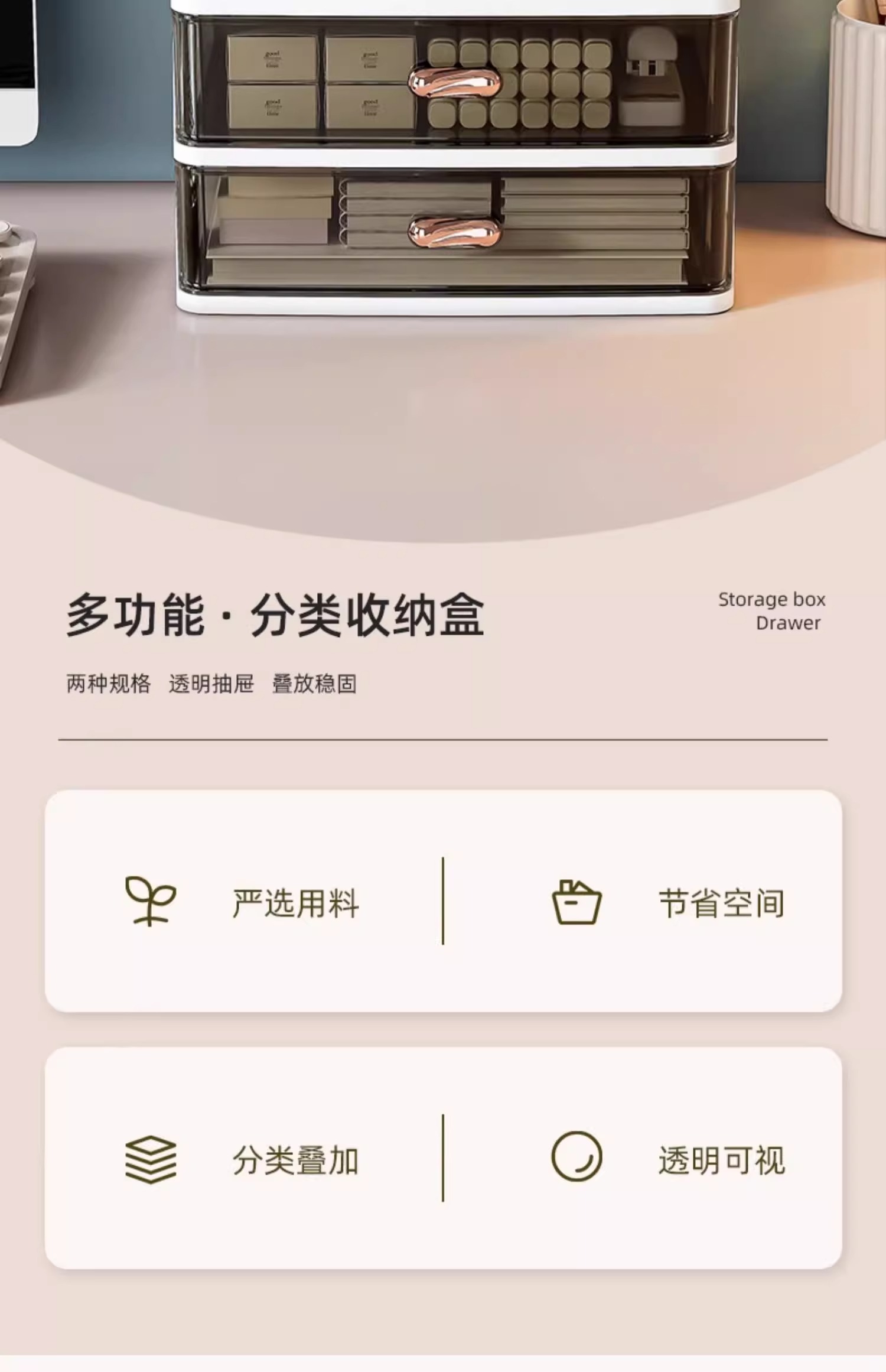 抽屉式桌面收纳盒办公室工位整理文具置物架镀金把手化妆品储物柜