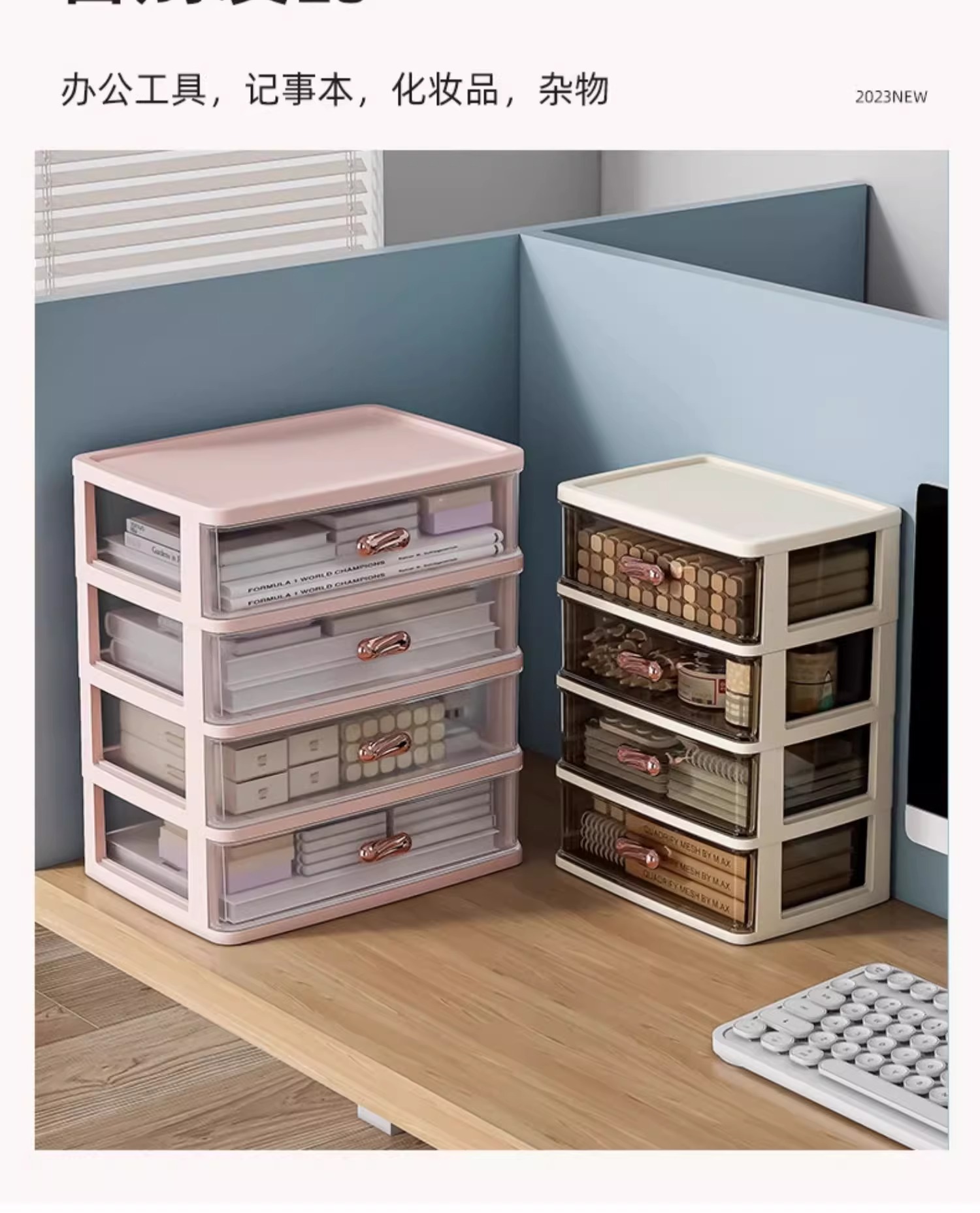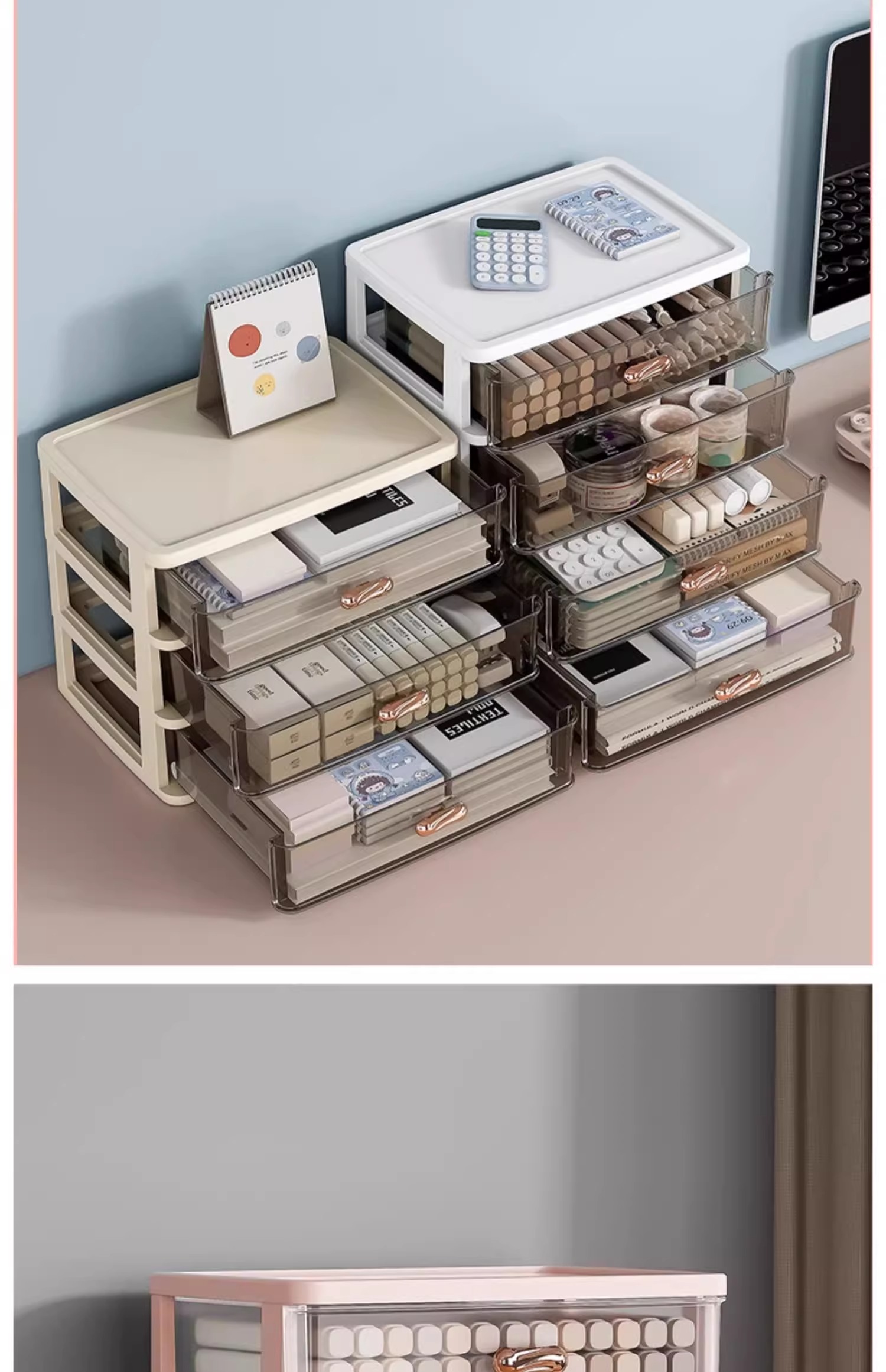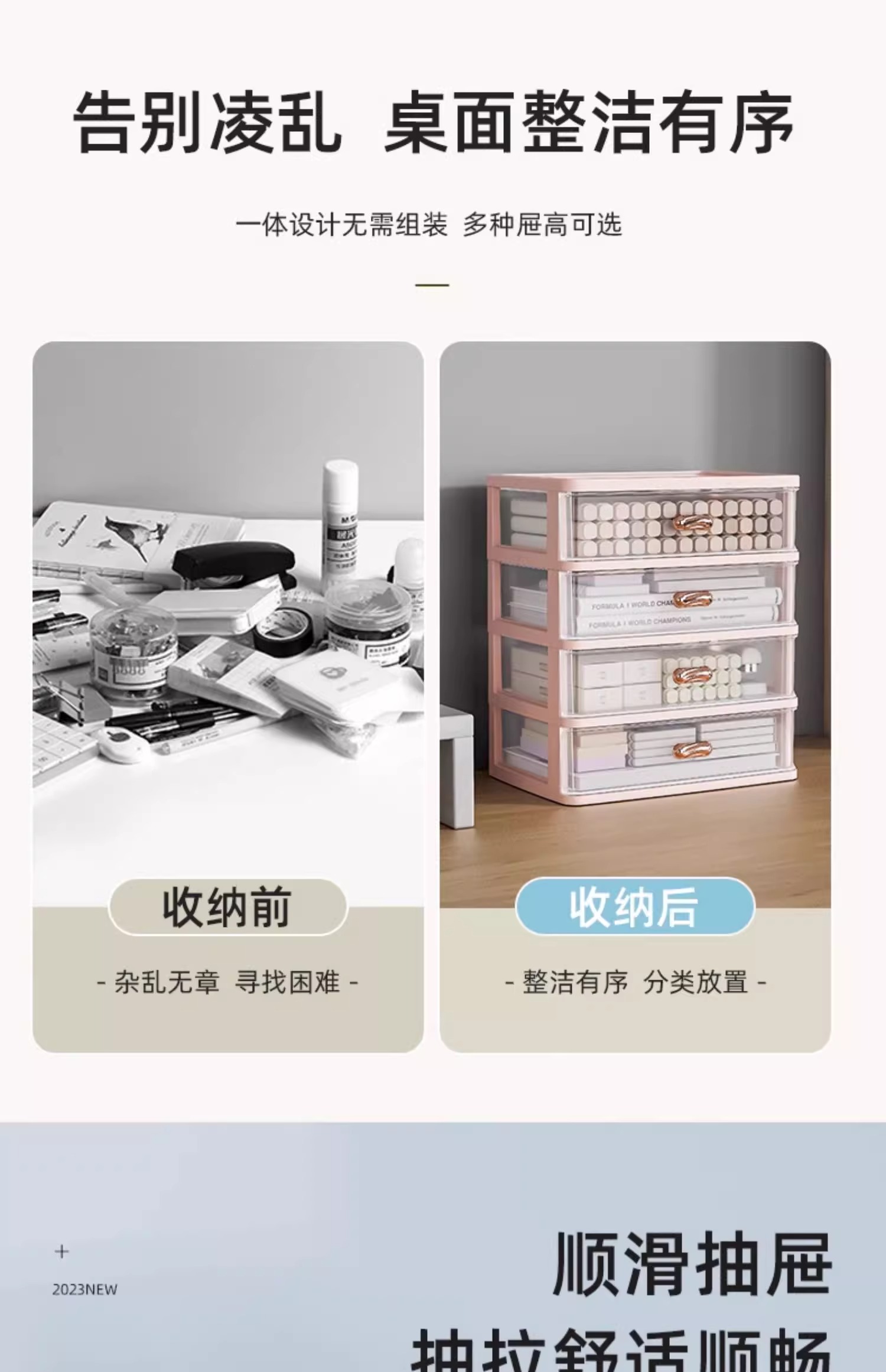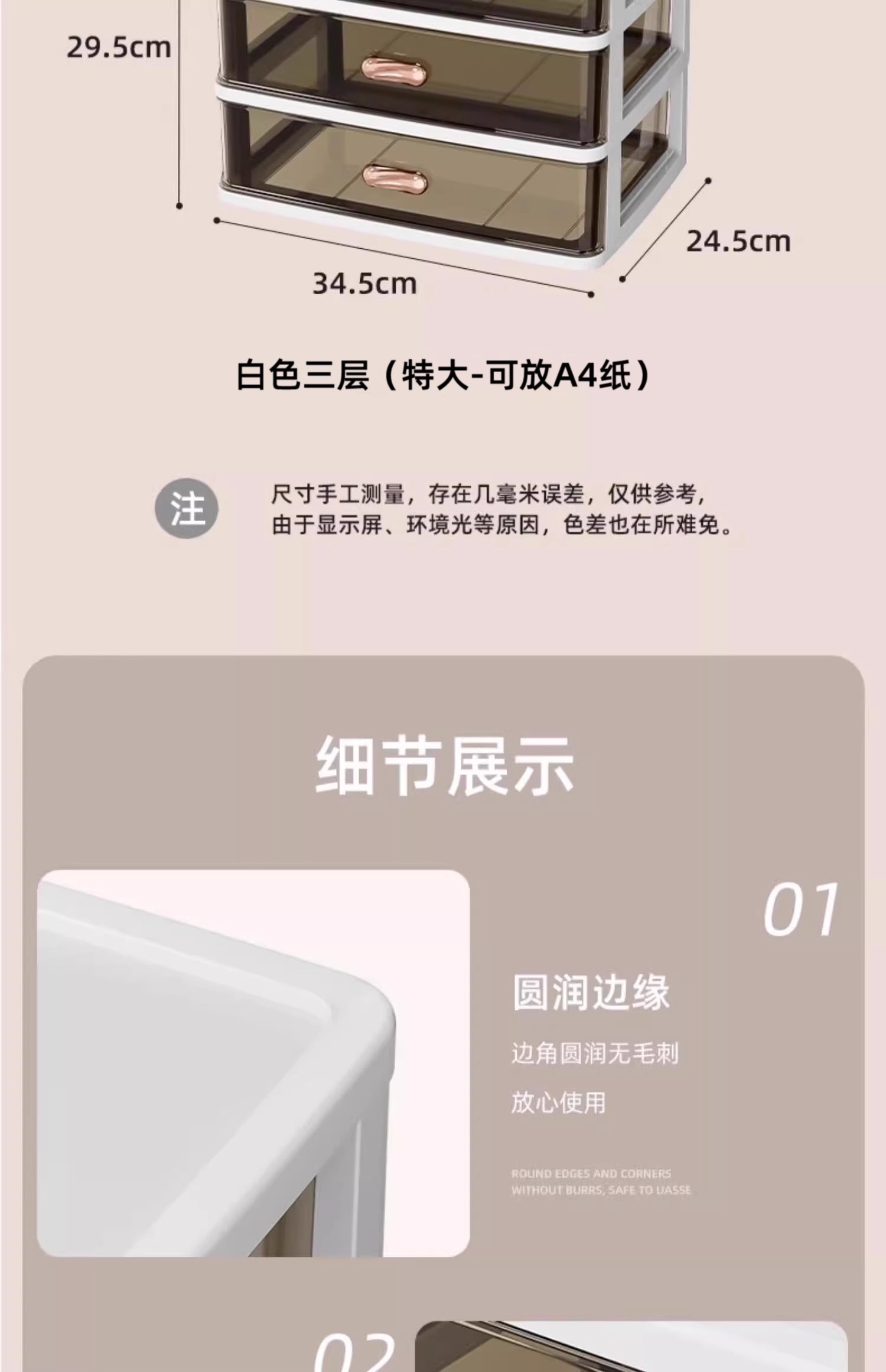 抽屉式桌面收纳盒办公室工位整理文具置物架镀金把手化妆品储物柜