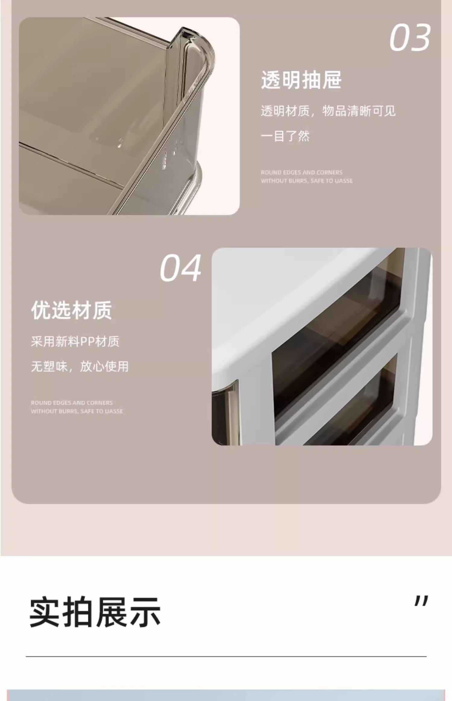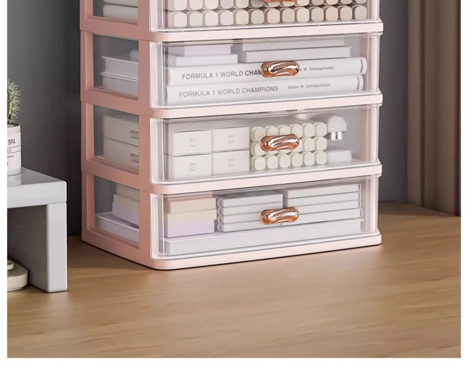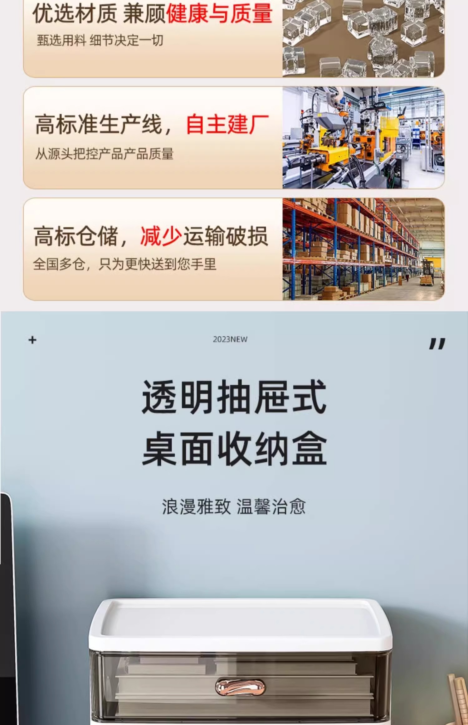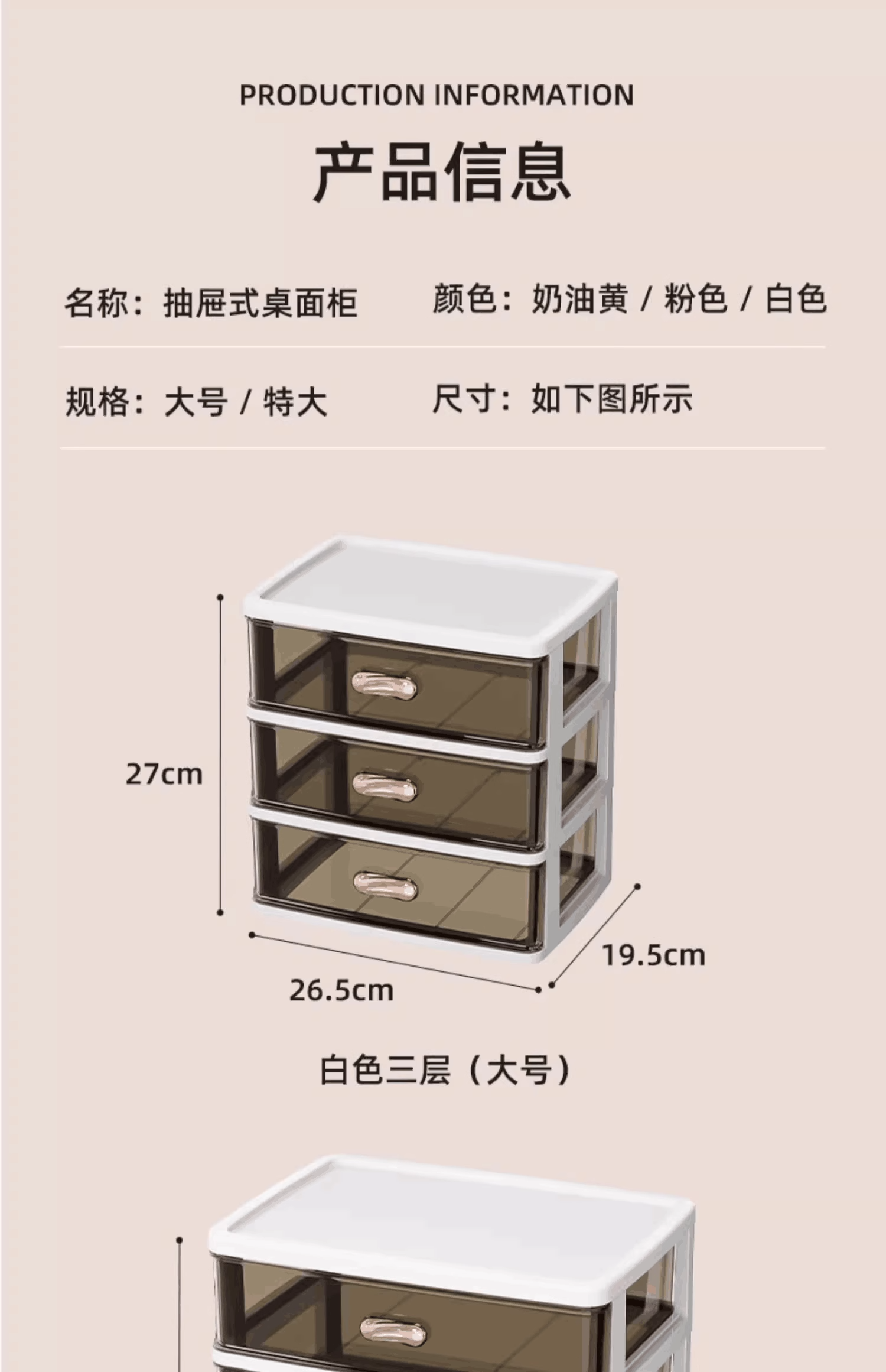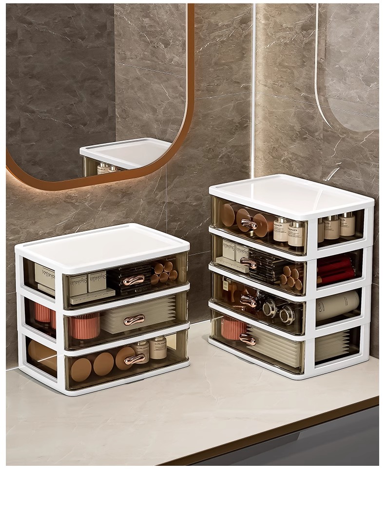 抽屉式桌面收纳盒办公室工位整理文具置物架镀金把手化妆品储物柜
