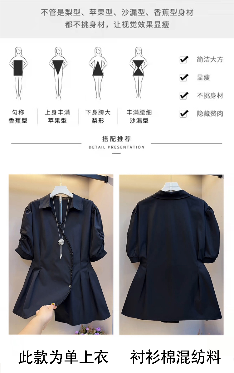 大码女装胖mm高级感短袖衬衫显瘦新中式纯色上衣百搭洋气小衫遮肉