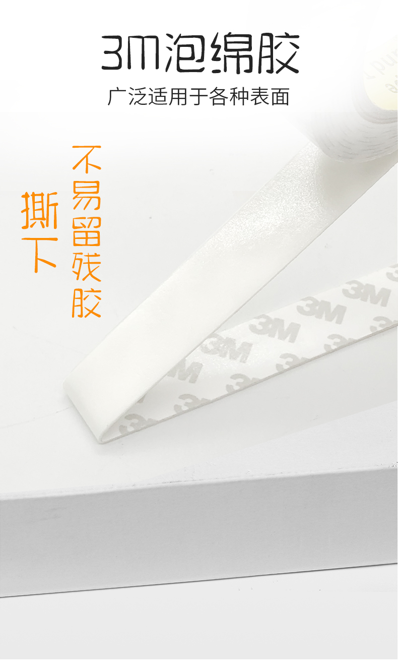 3m双面胶海绵胶带PE泡棉带强力白色泡沫双面胶挂钩铭牌粘贴高粘度