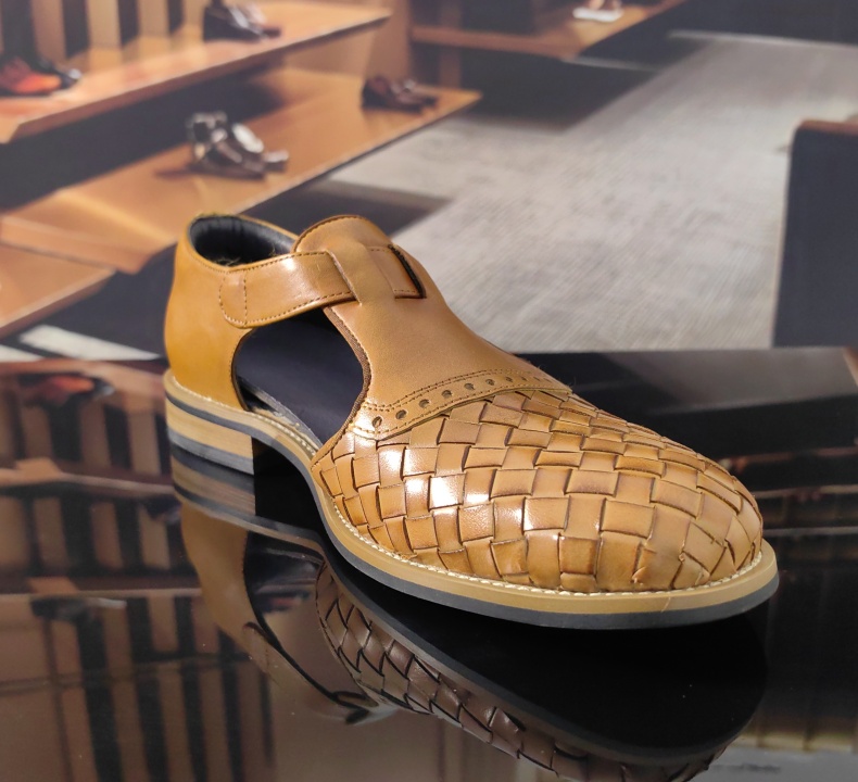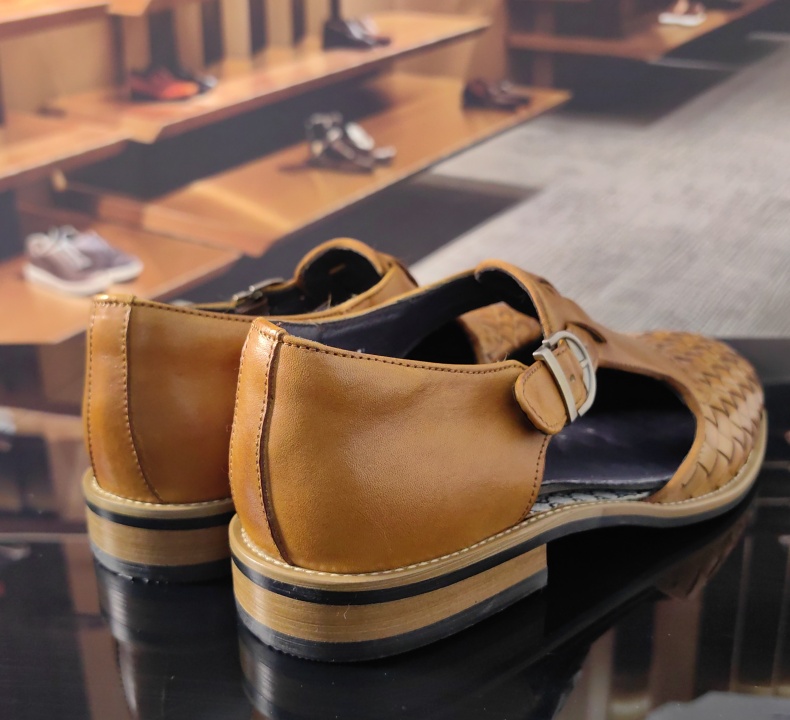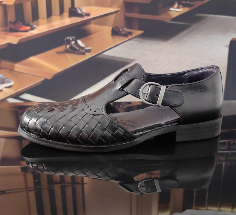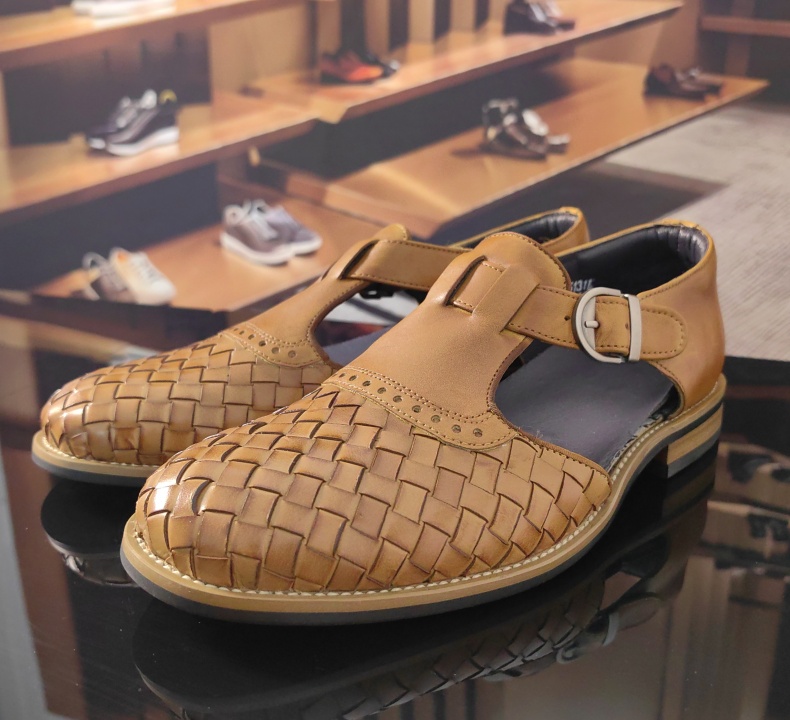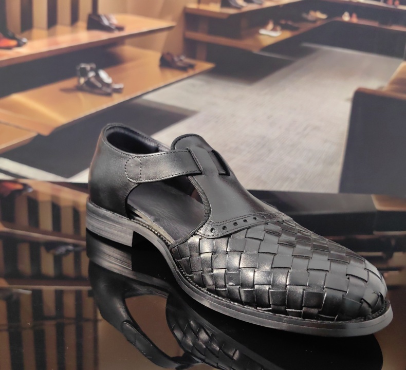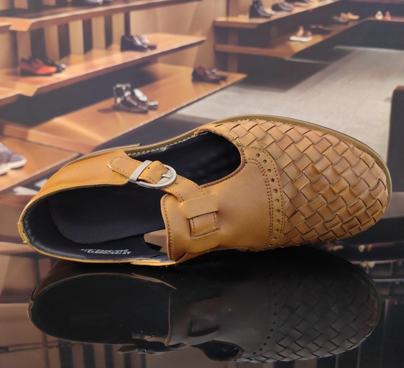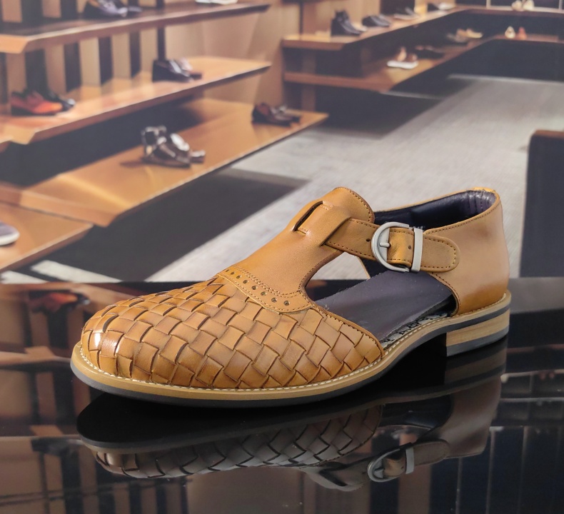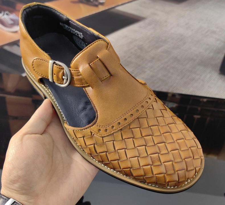 2025新款编织复古搭扣凉鞋男夏季商务休闲镂空大码真皮英伦沙滩鞋