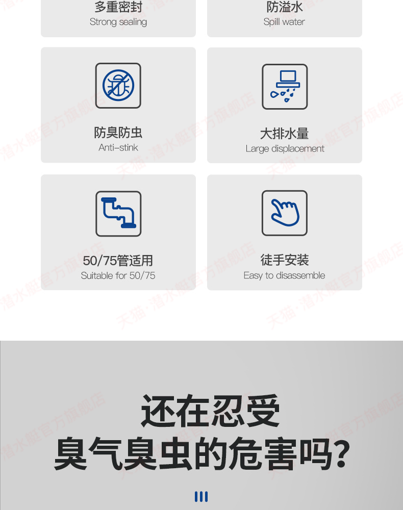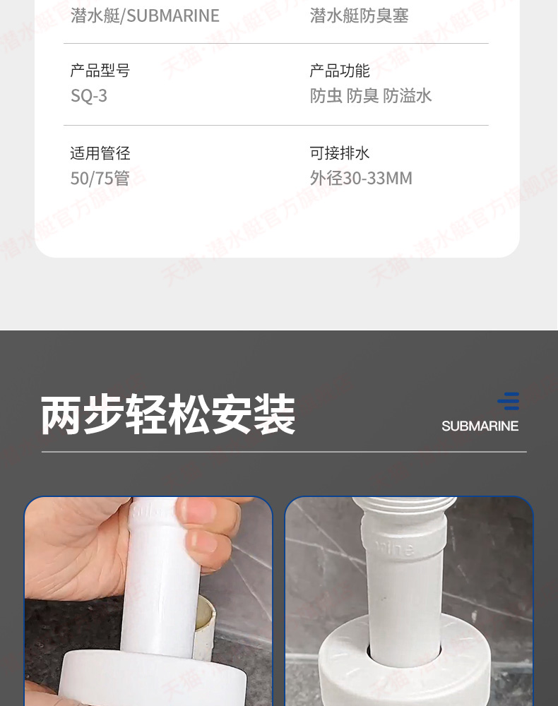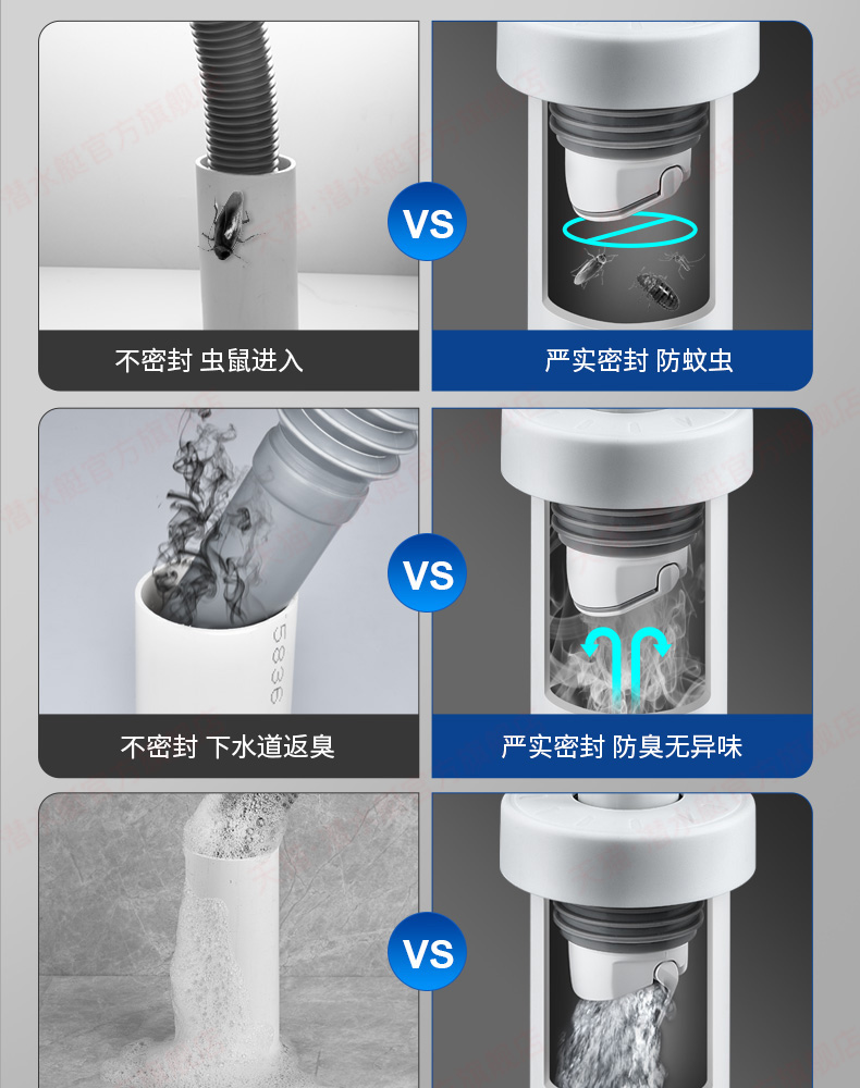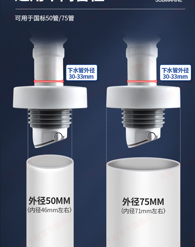 潜水艇下水管防返臭神器厨房管道密封圈塞洗手盆下水道封口盖配件