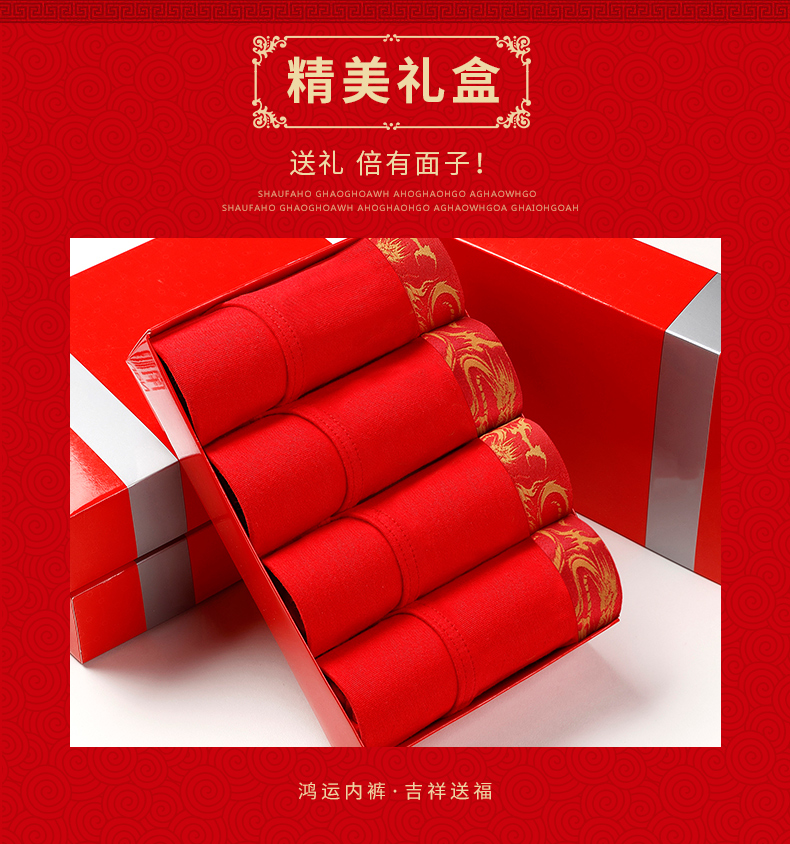雅鹿男士内裤男三角裤纯棉短裤大红色本命年男款男生裤衩2025新款