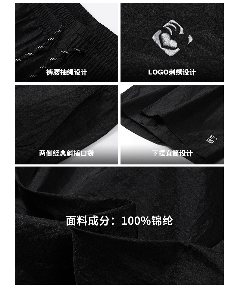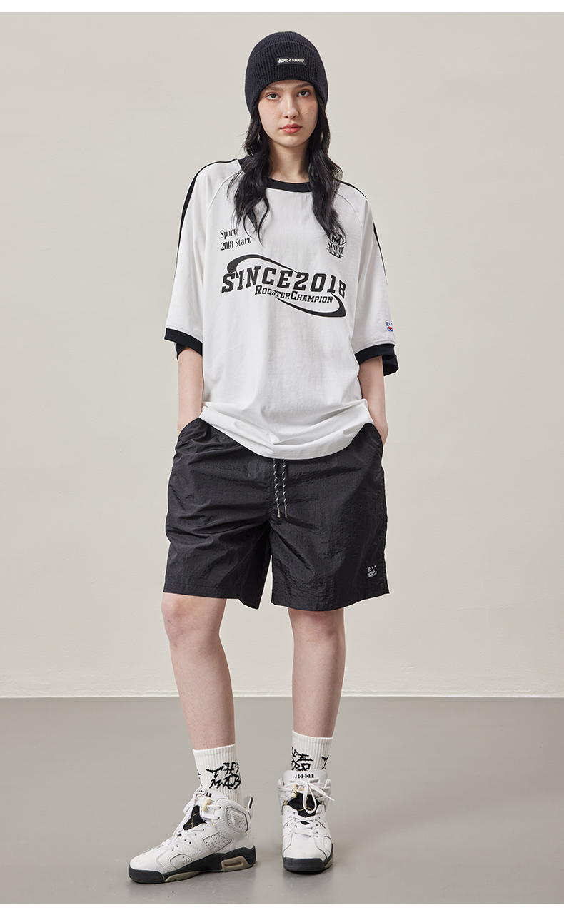 公鸡冠军短裤男2025夏季新款黑色宽松直筒薄款情侣休闲运动沙滩裤