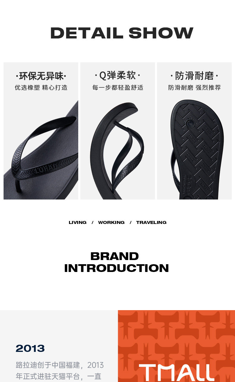 路拉迪QQ弹人字拖男夏简约防滑黑色夹脚凉拖软底夹拖橡胶沙滩拖鞋