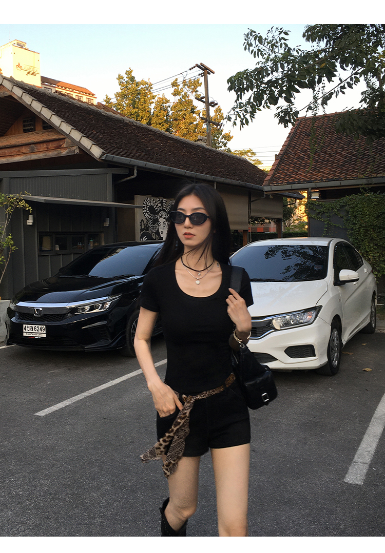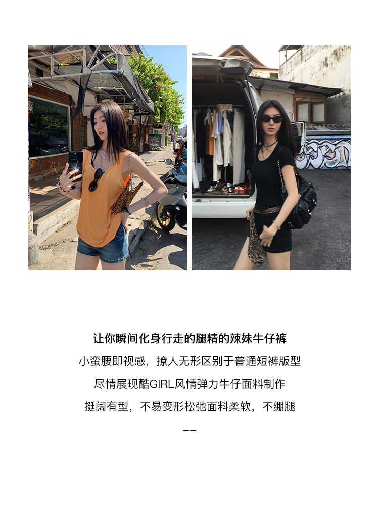 MULVAN 长腿狙击|辣妹高腰修身牛仔短裤女夏季蓝色直筒百搭热裤