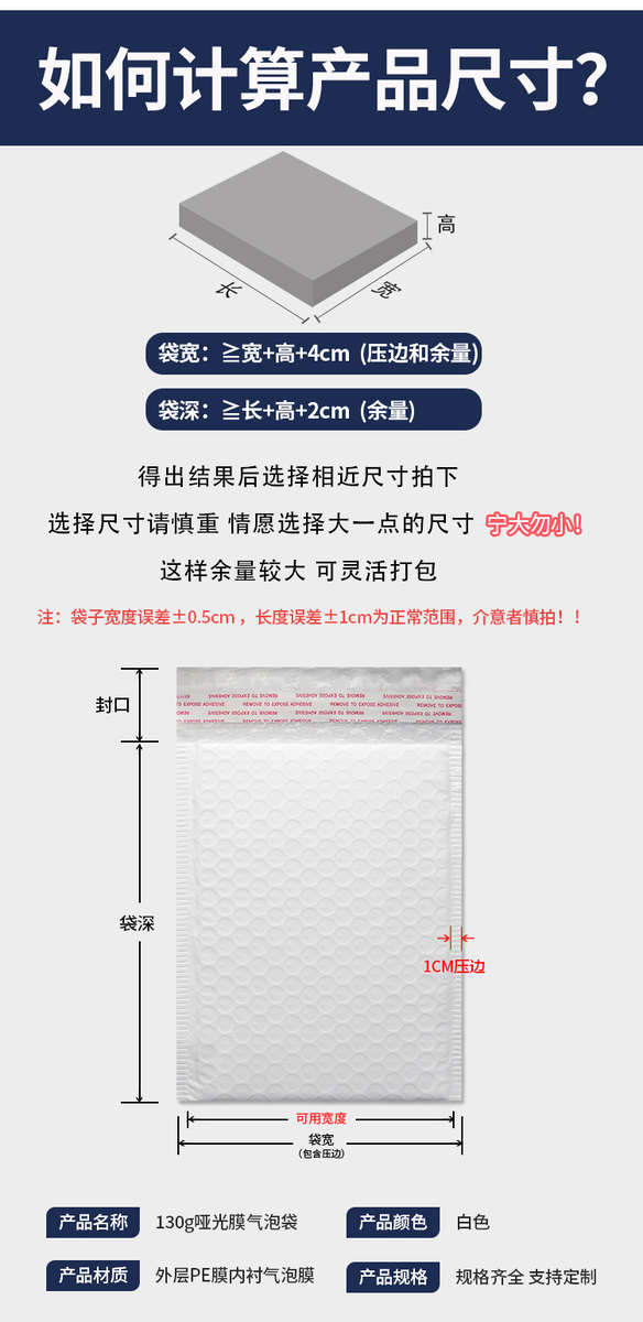白色加厚气泡袋珠光膜批发快递打包防震包装泡沫袋哑光防水信封袋