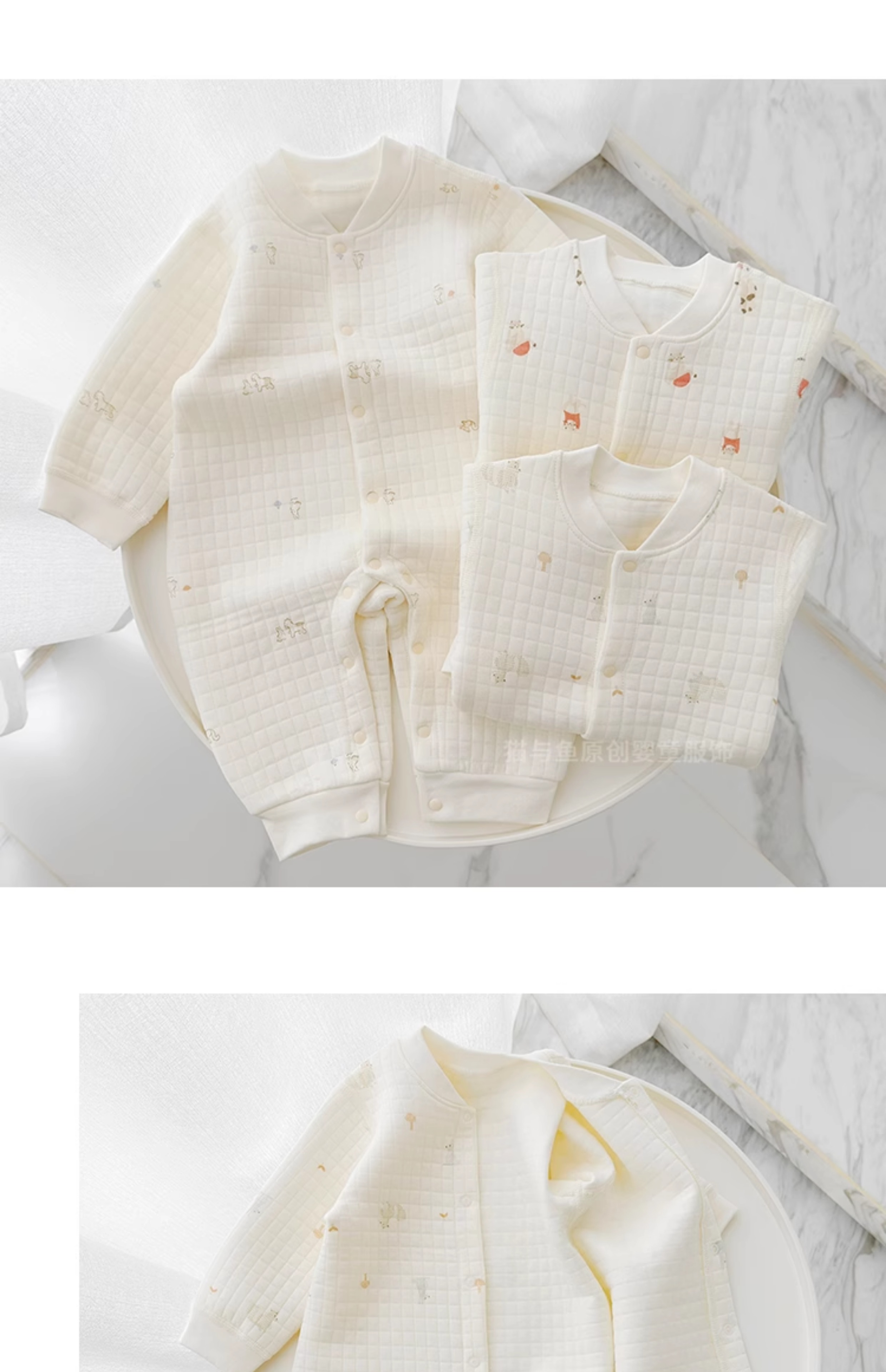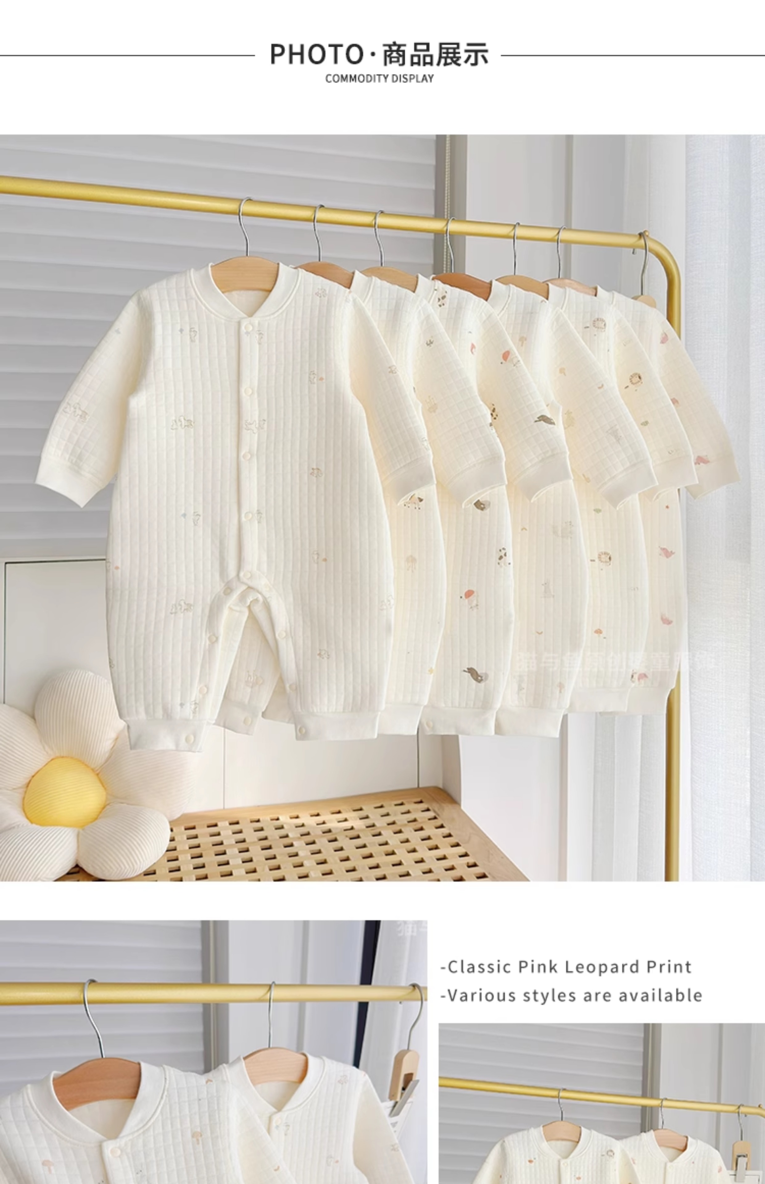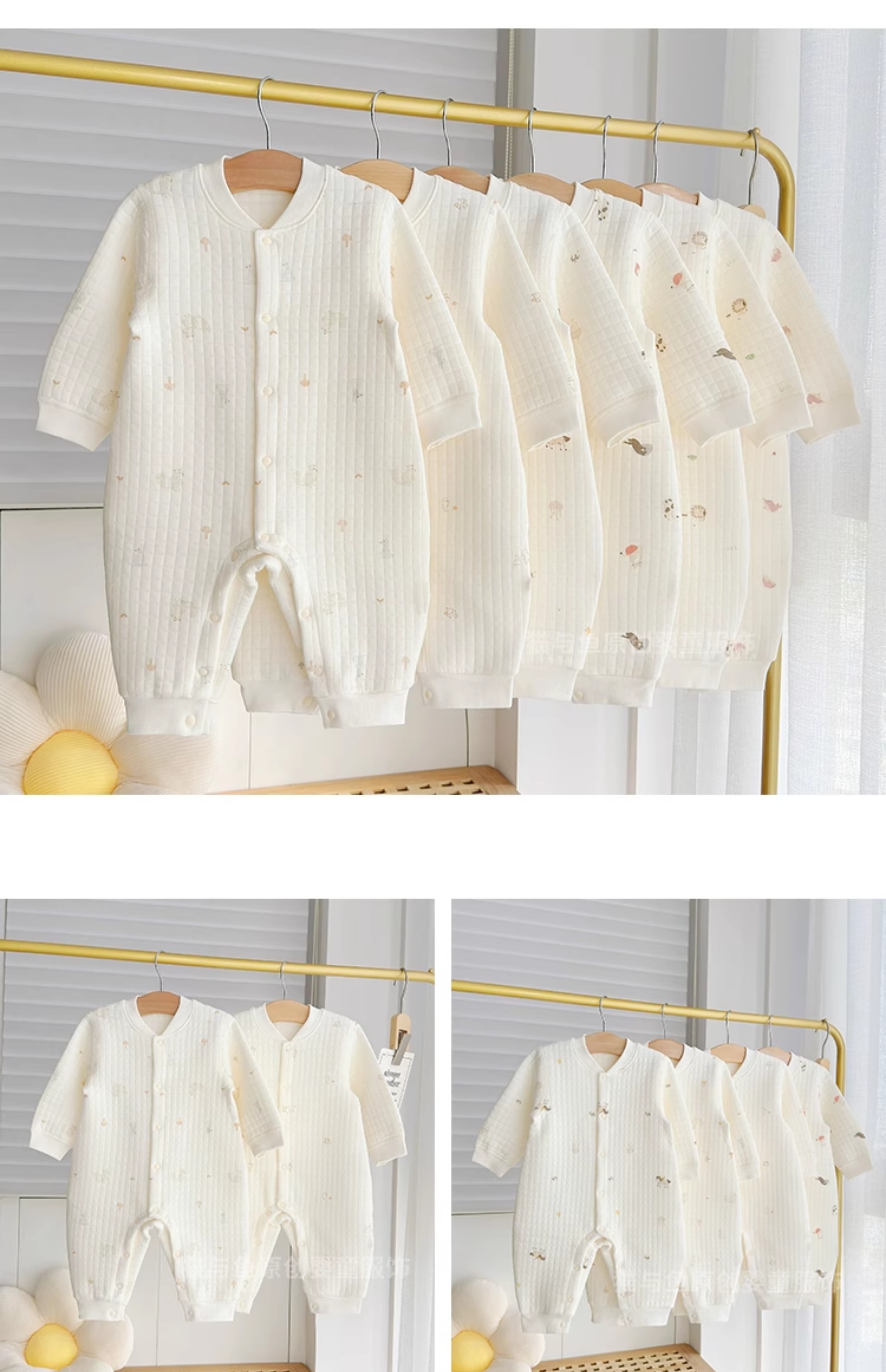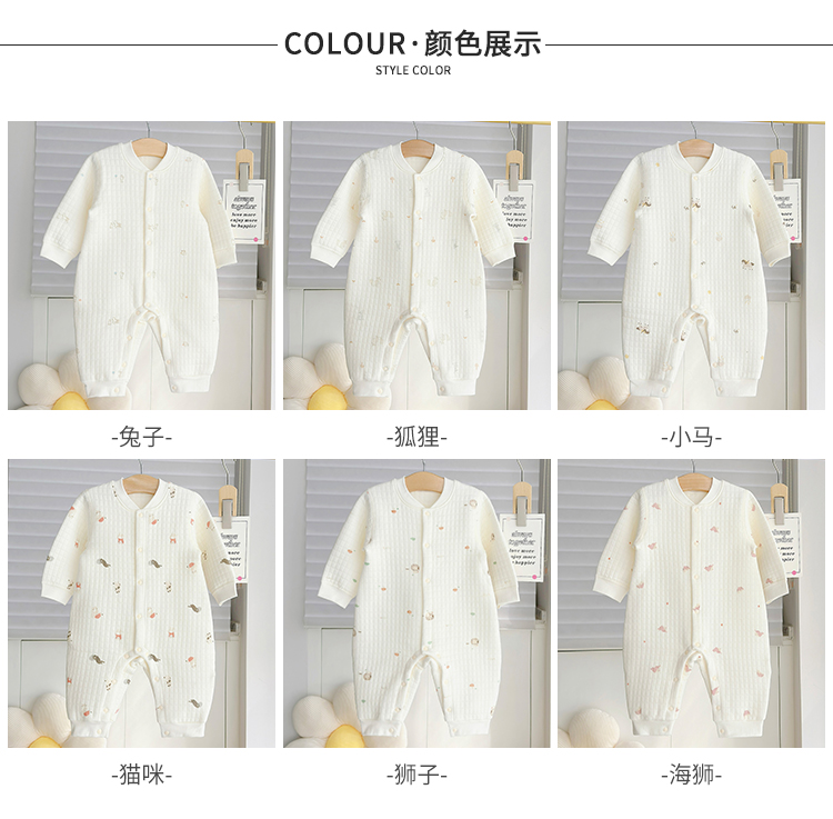 婴儿秋季保暖哈衣男童女童无骨纯棉爬服连体衣新生宝宝0-2岁外穿