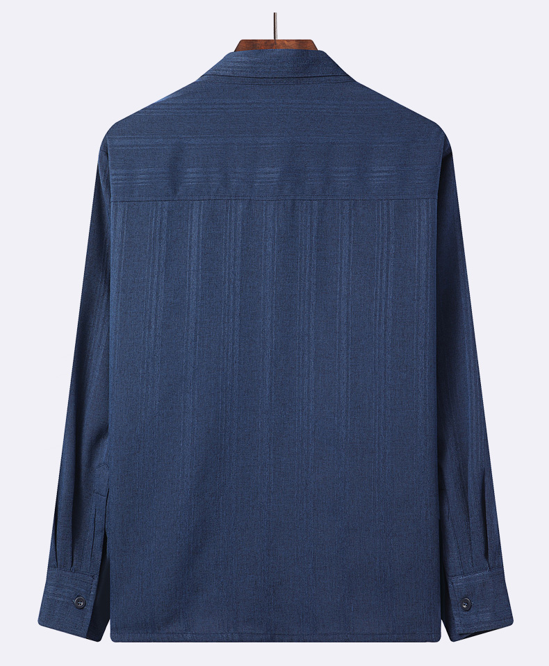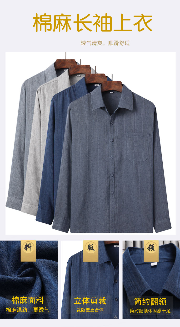 春秋季爸爸长袖衬衫中老年人男爷爷夏装上衣衬衣棉麻薄款60-70-80
