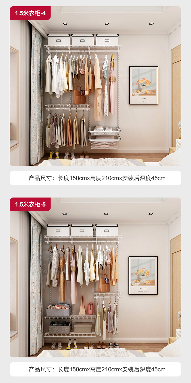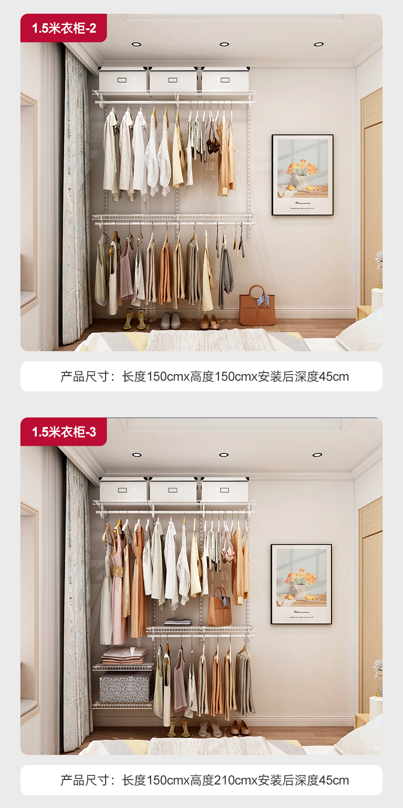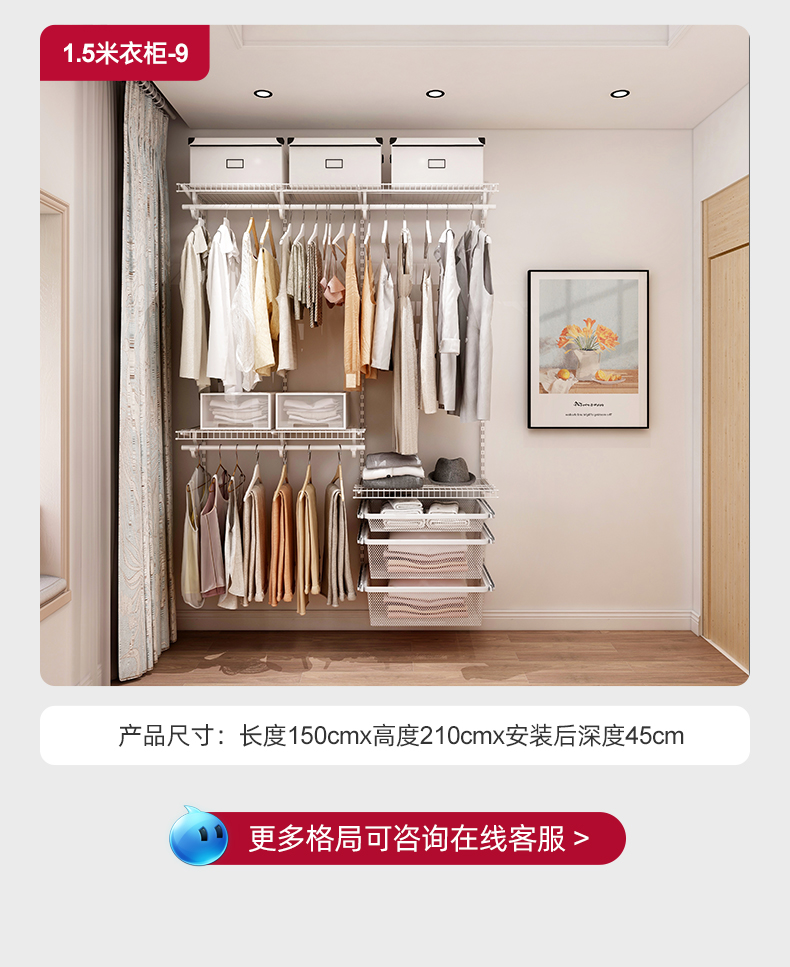 铂耐金属衣帽间置物架环保砌墙步入式衣柜钢架1.5米衣橱