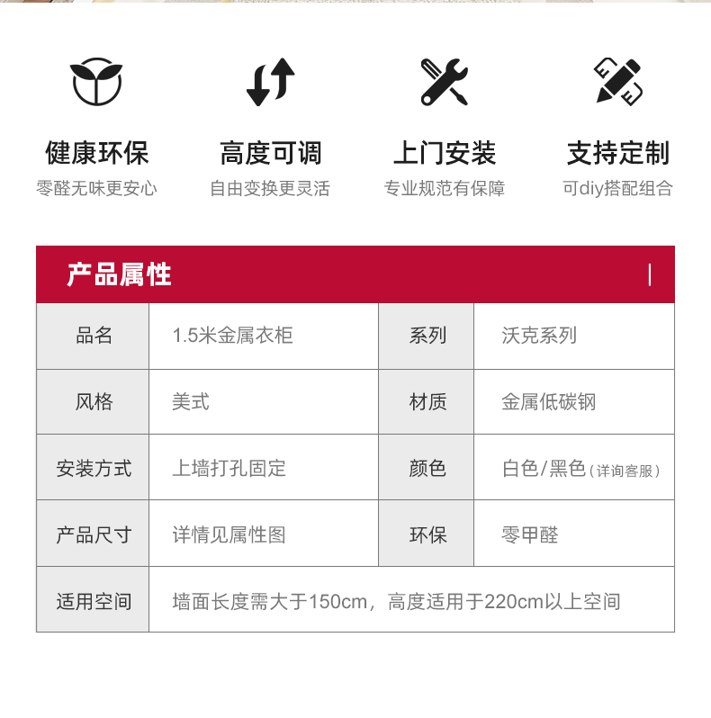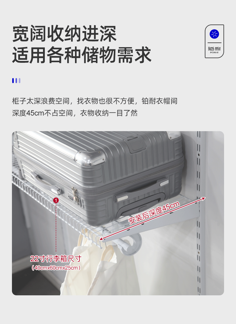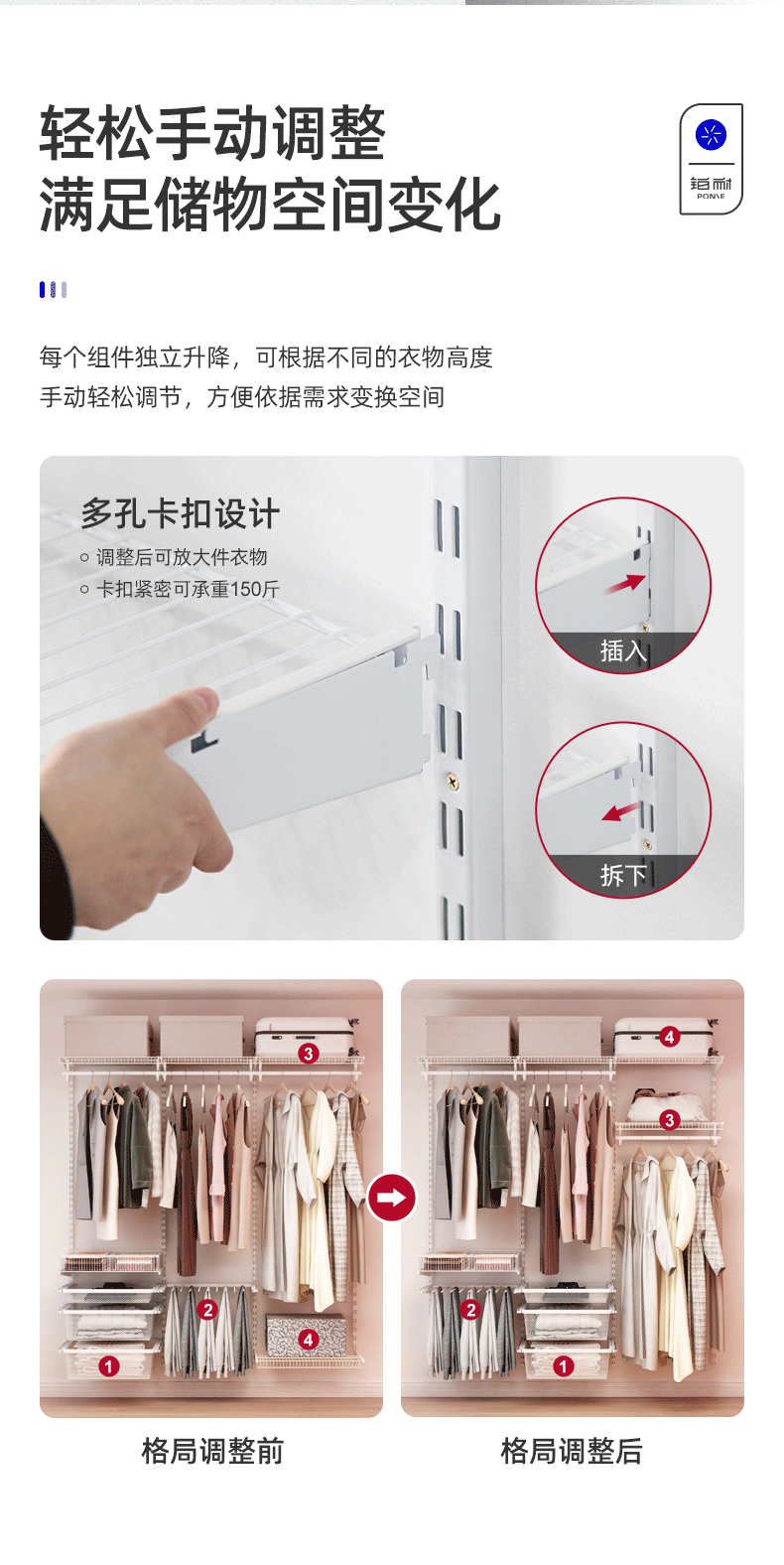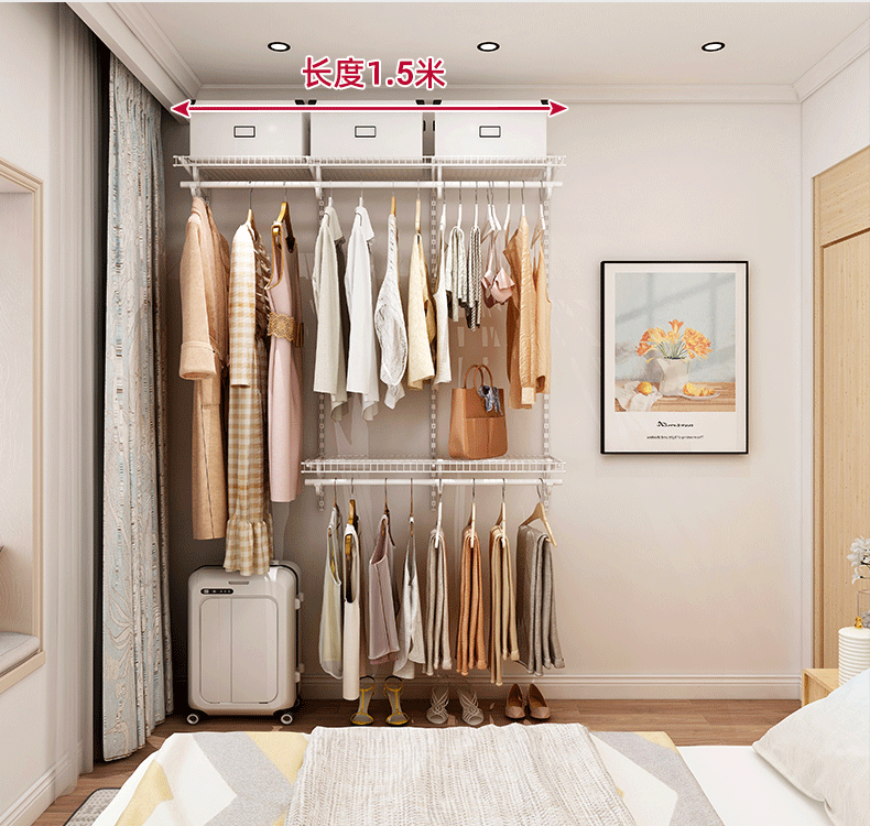铂耐金属衣帽间置物架环保砌墙步入式衣柜钢架1.5米衣橱