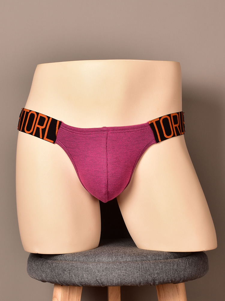 男纯棉三角裤细条纹高叉宽裤边皮筋字母性感低腰潮男打底裤显腿长