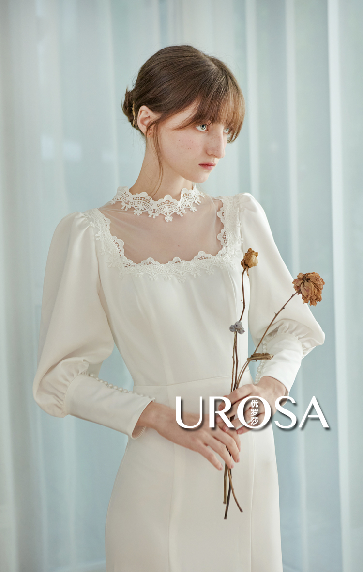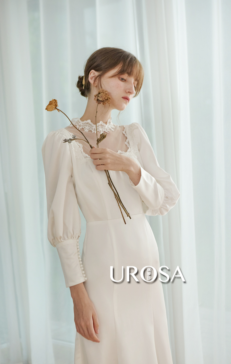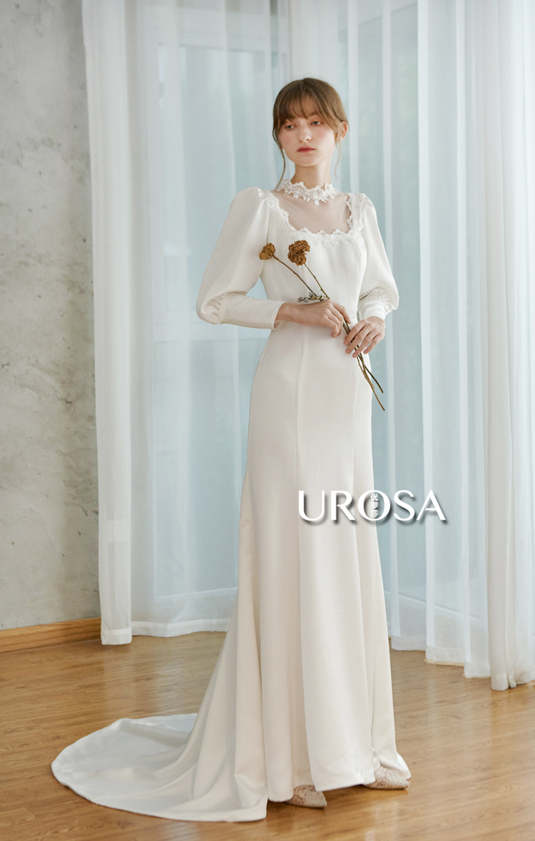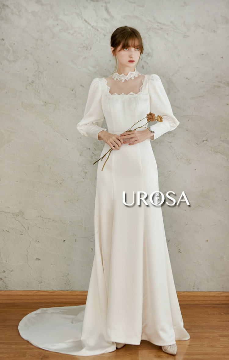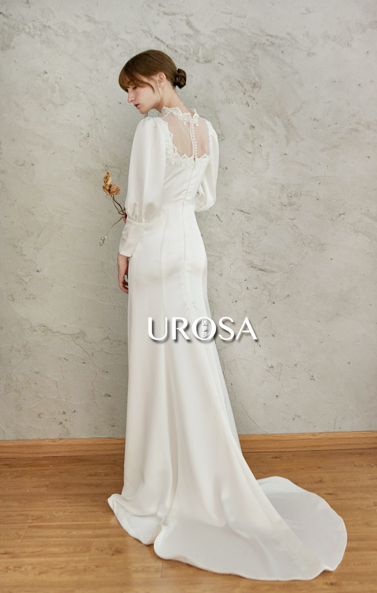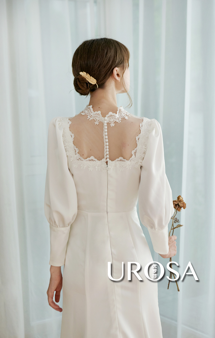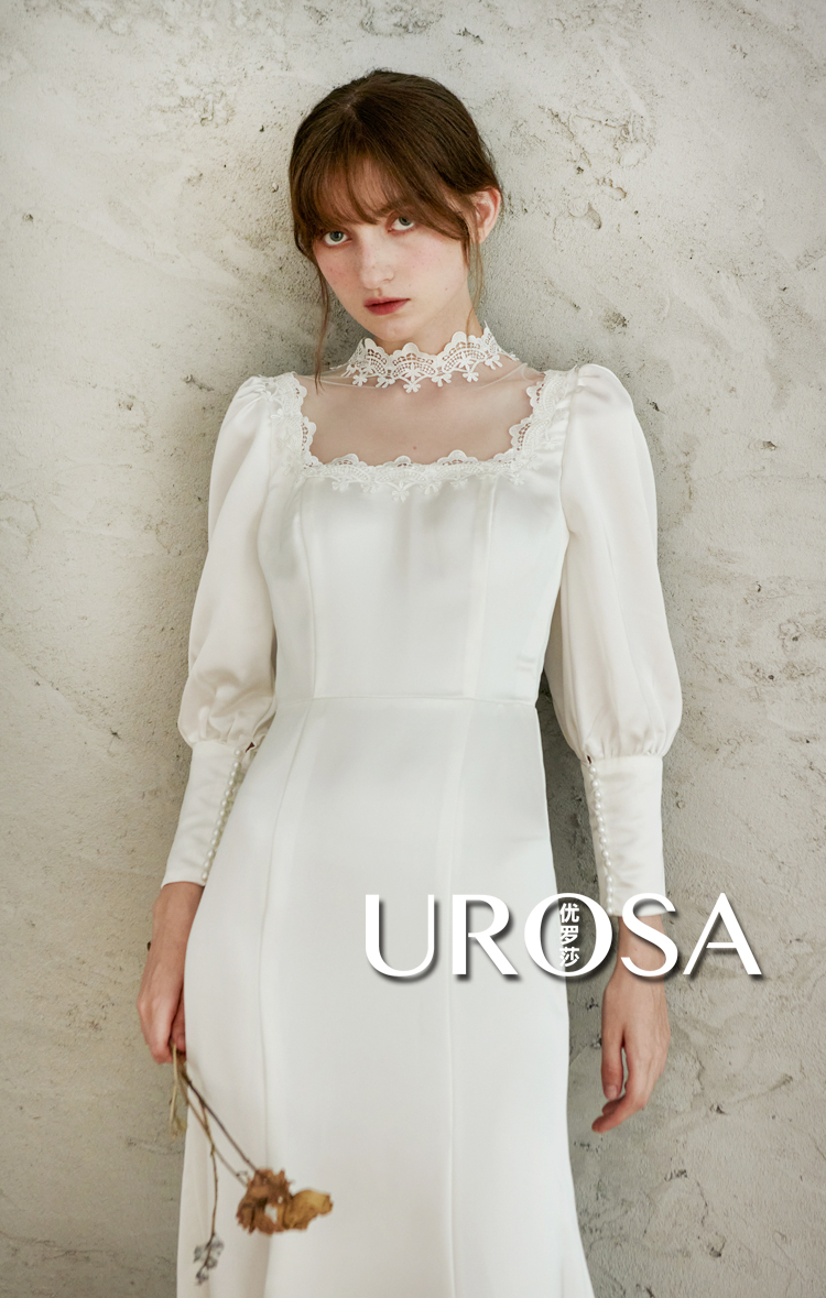 设计师原创新款复古灯笼袖绸缎新娘婚纱优雅气质鱼尾显瘦森系轻纱