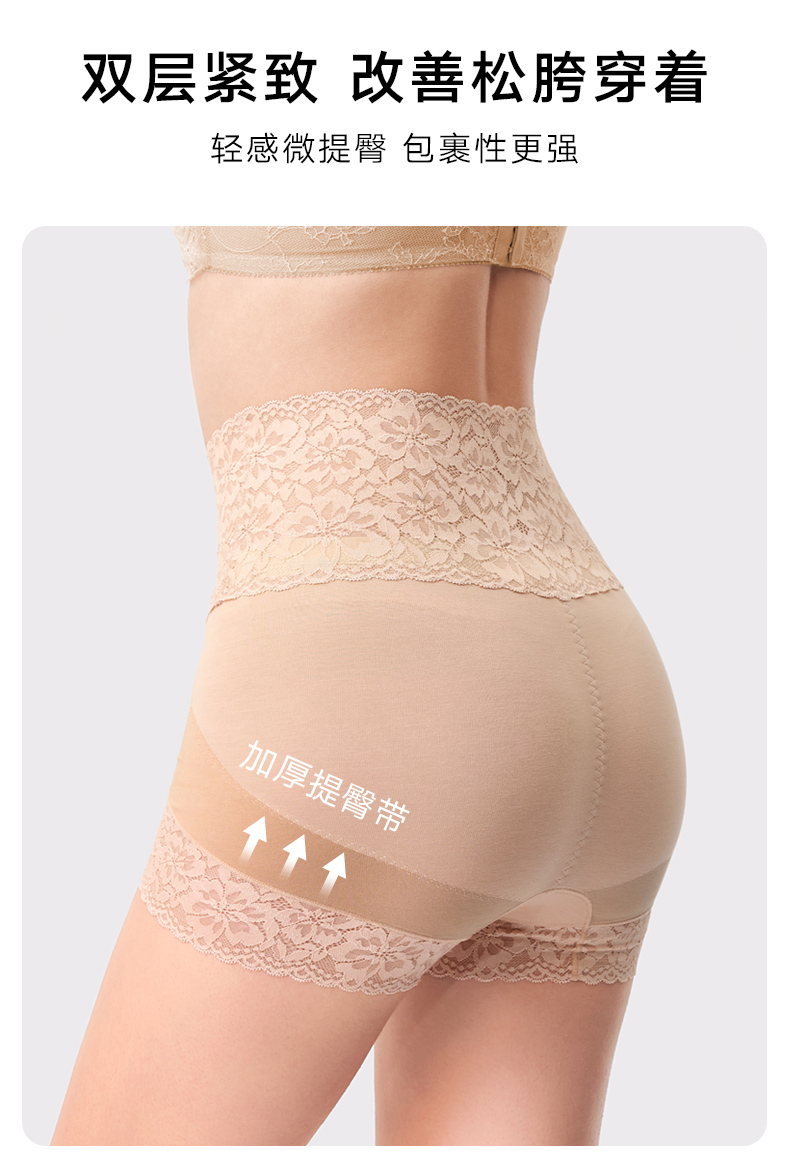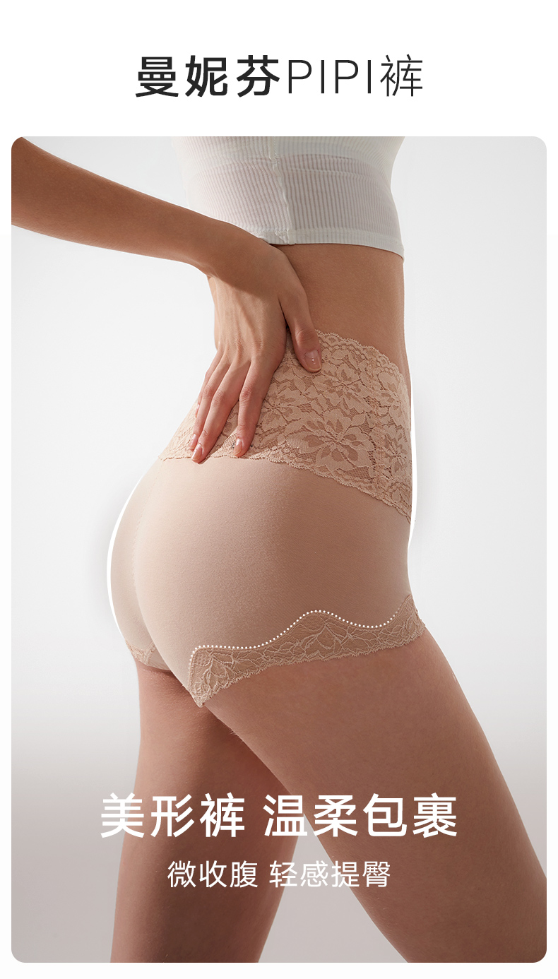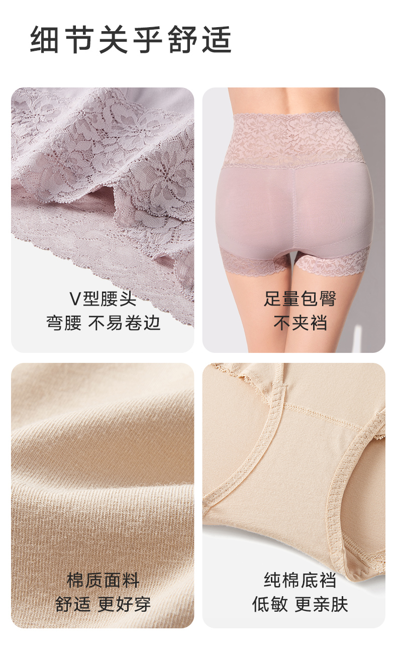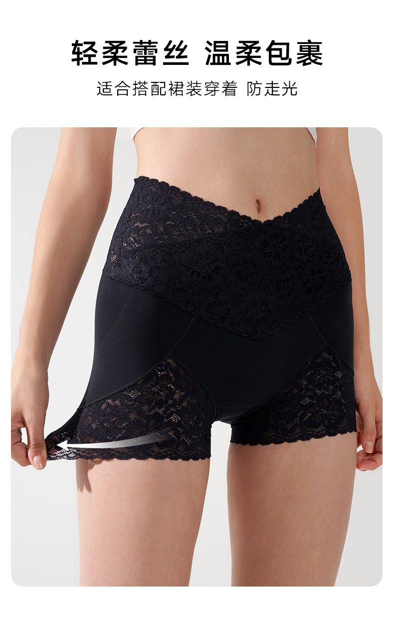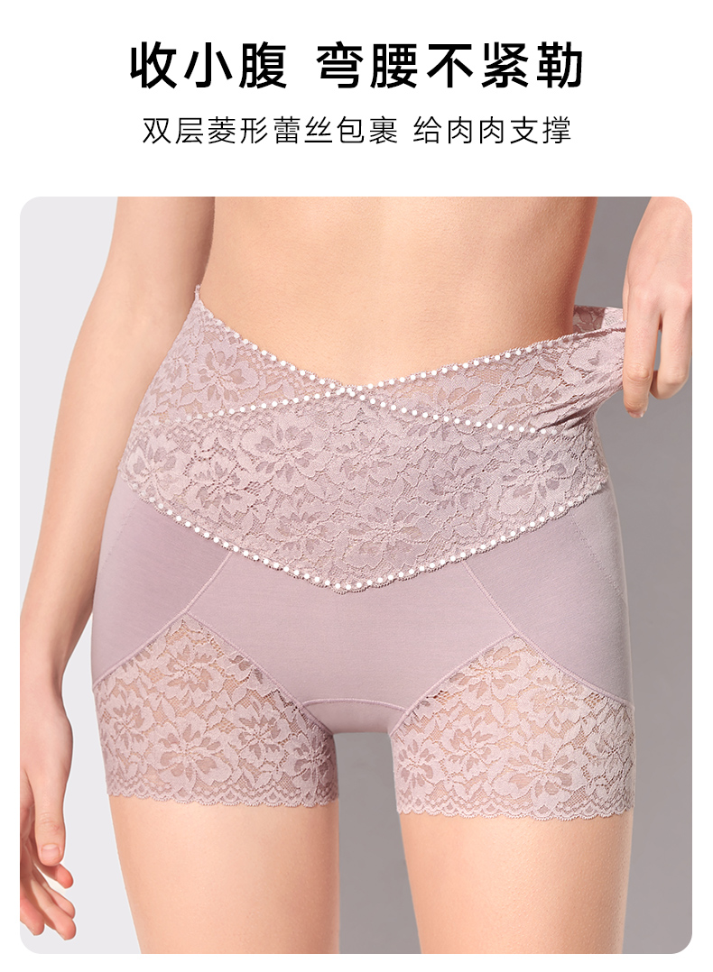 2条装曼妮芬性感蕾丝短裤高腰平腿裤纯棉底裆内裤安全女生打底裤