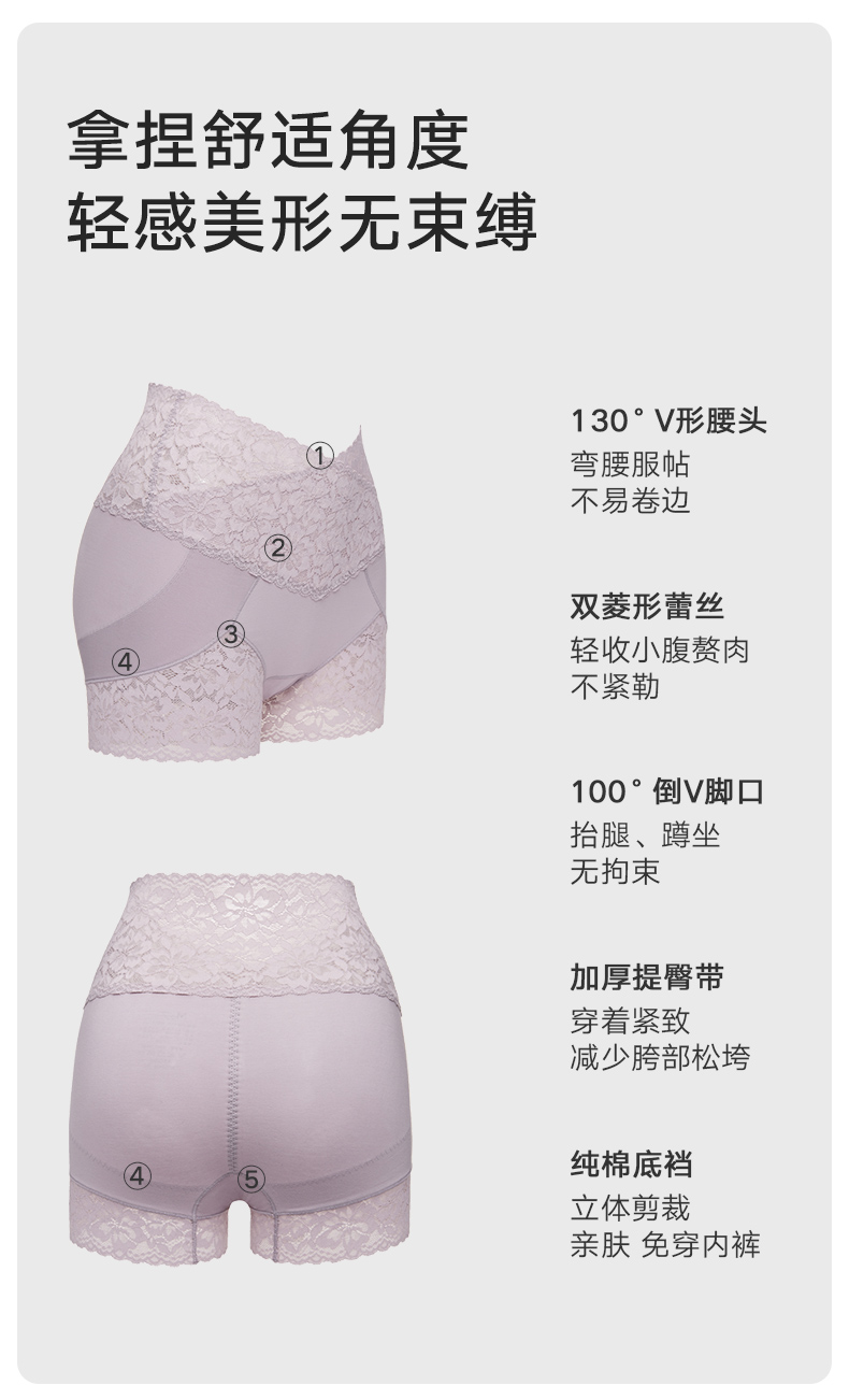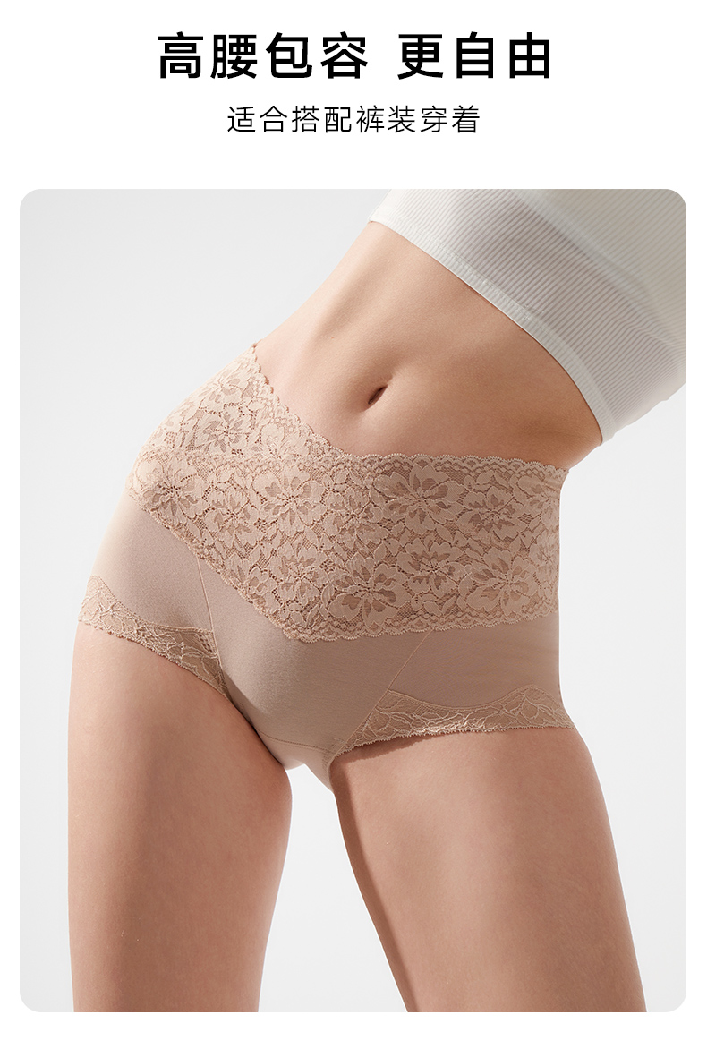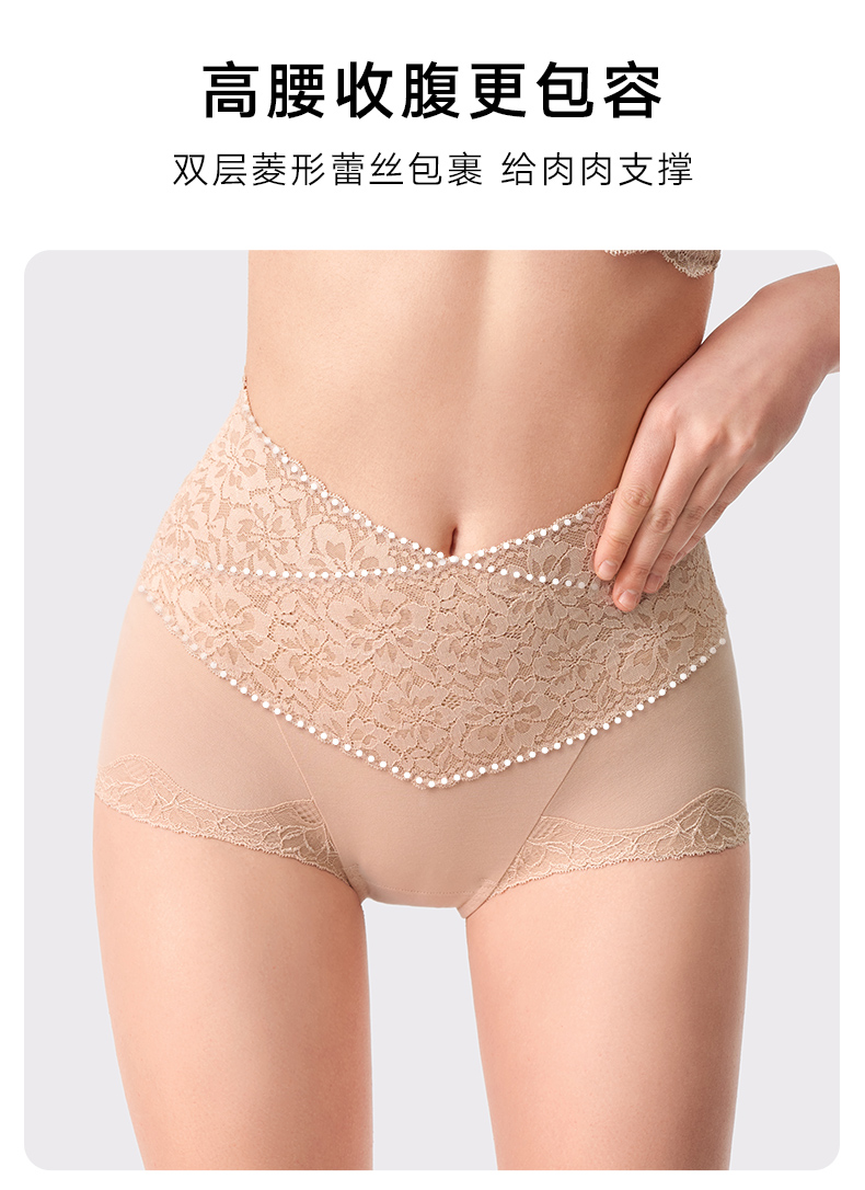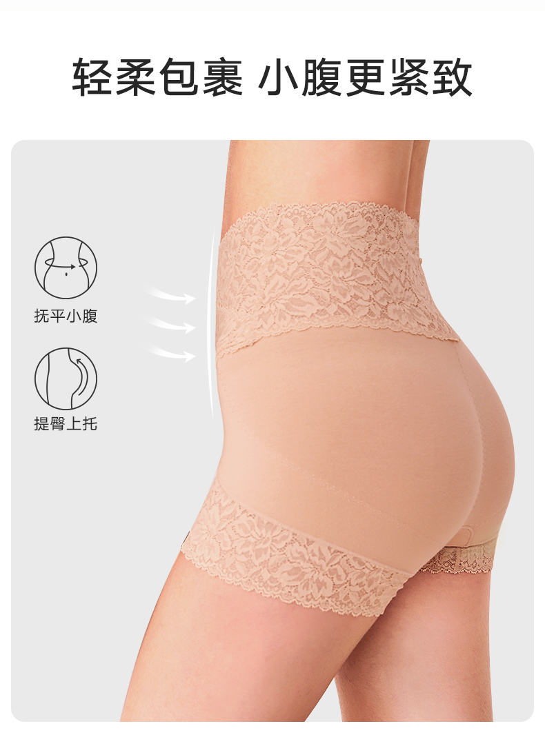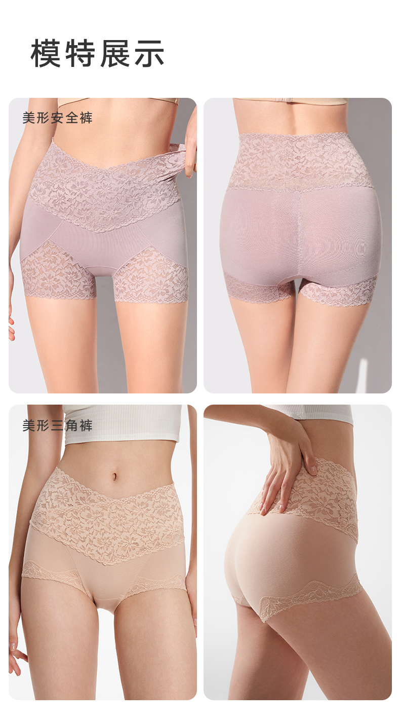 2条装曼妮芬性感蕾丝短裤高腰平腿裤纯棉底裆内裤安全女生打底裤