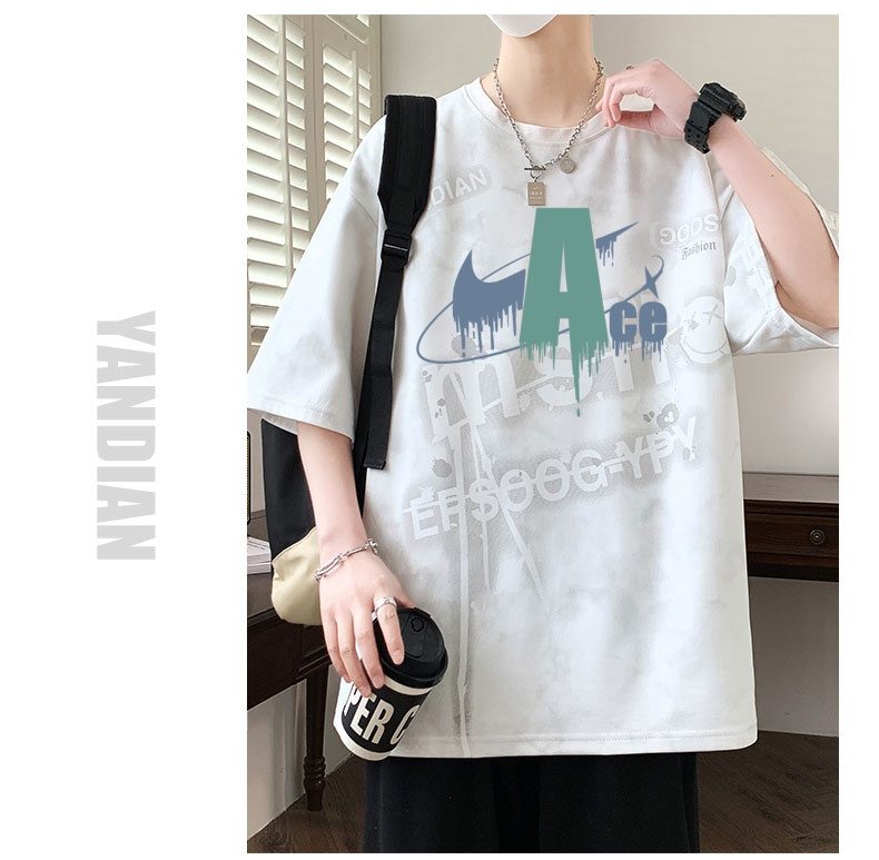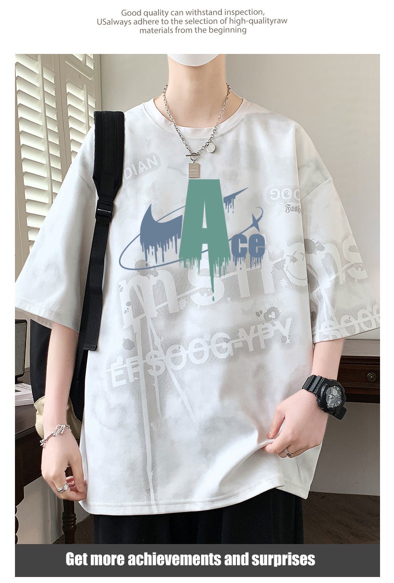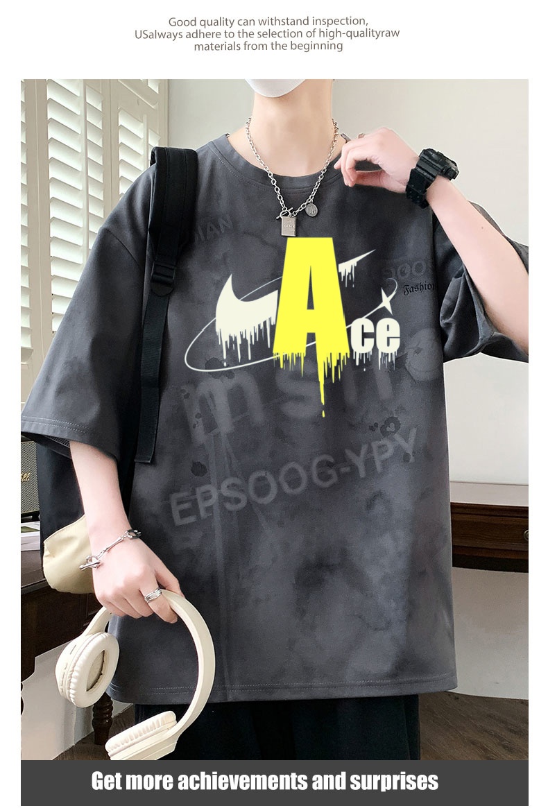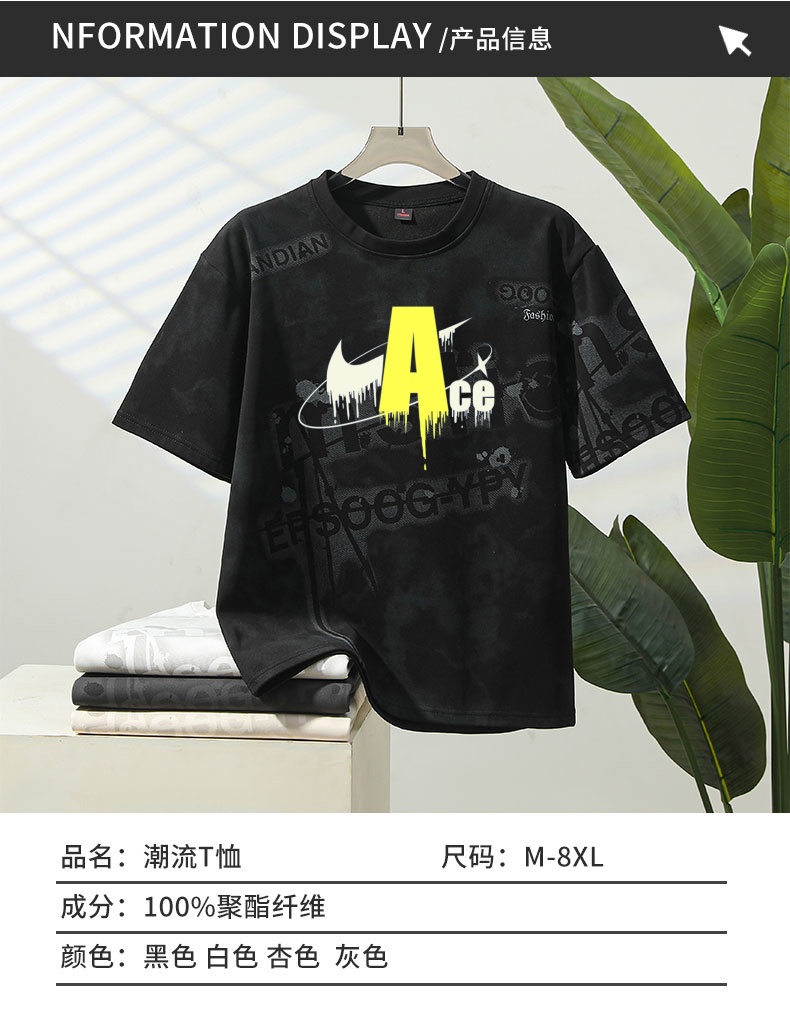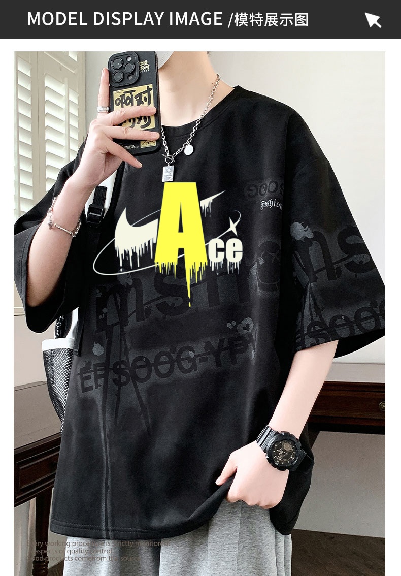 耐克顿T恤男夏季新款潮牌大码不规则满印圆领宽松休闲百搭五分袖