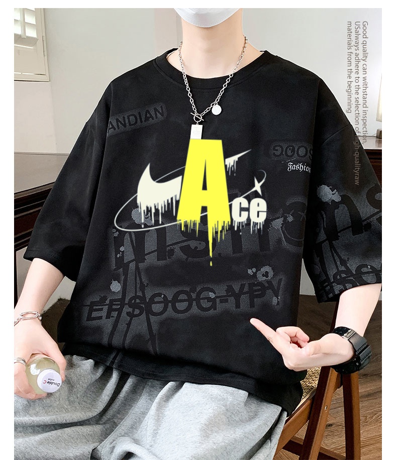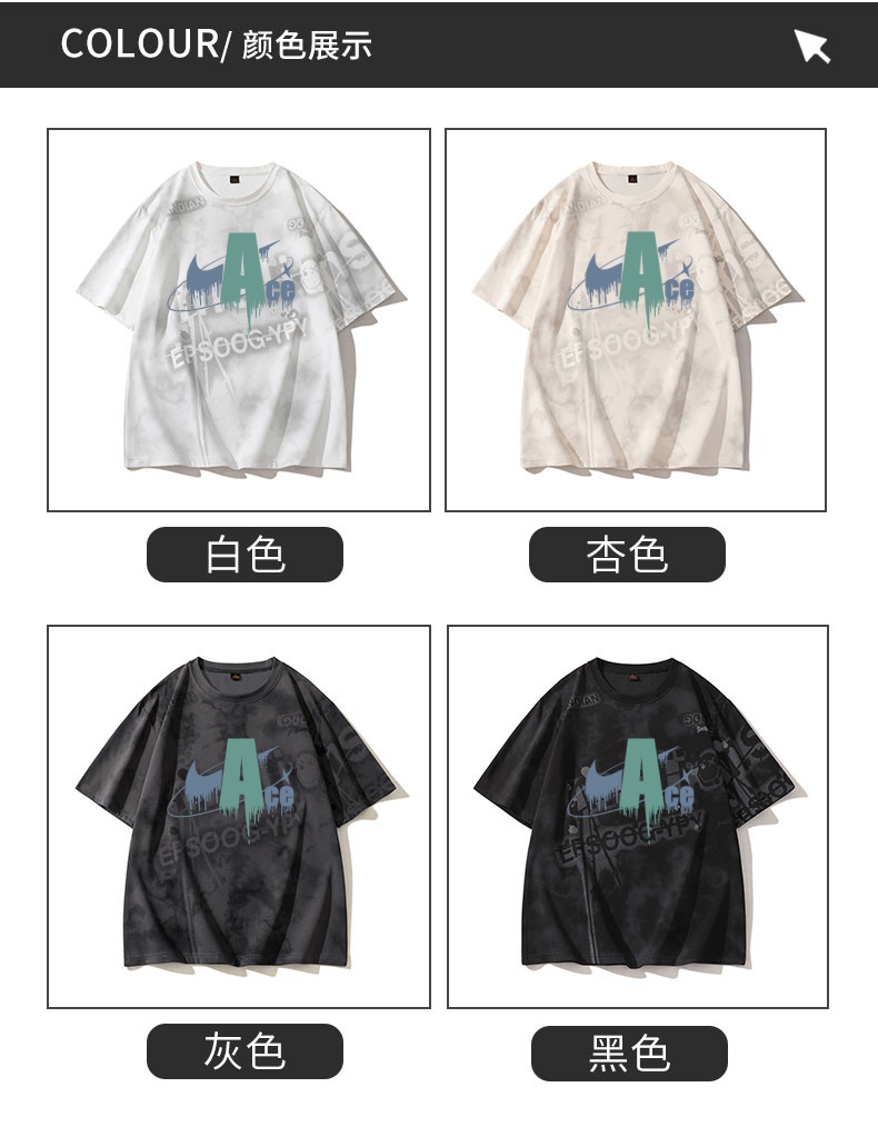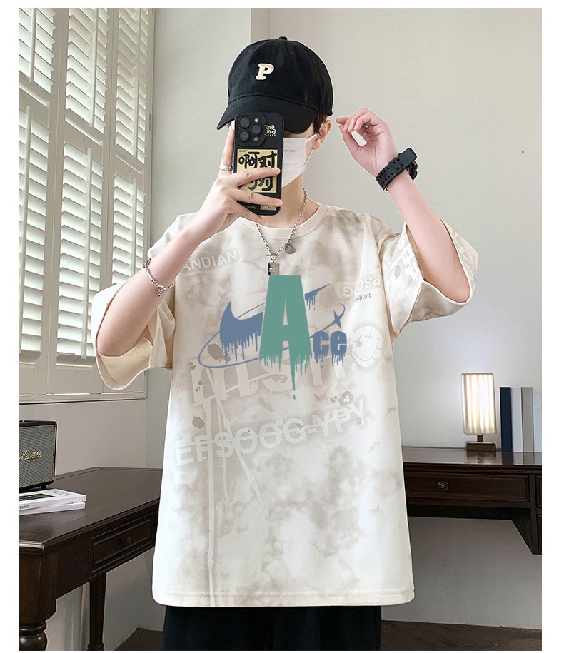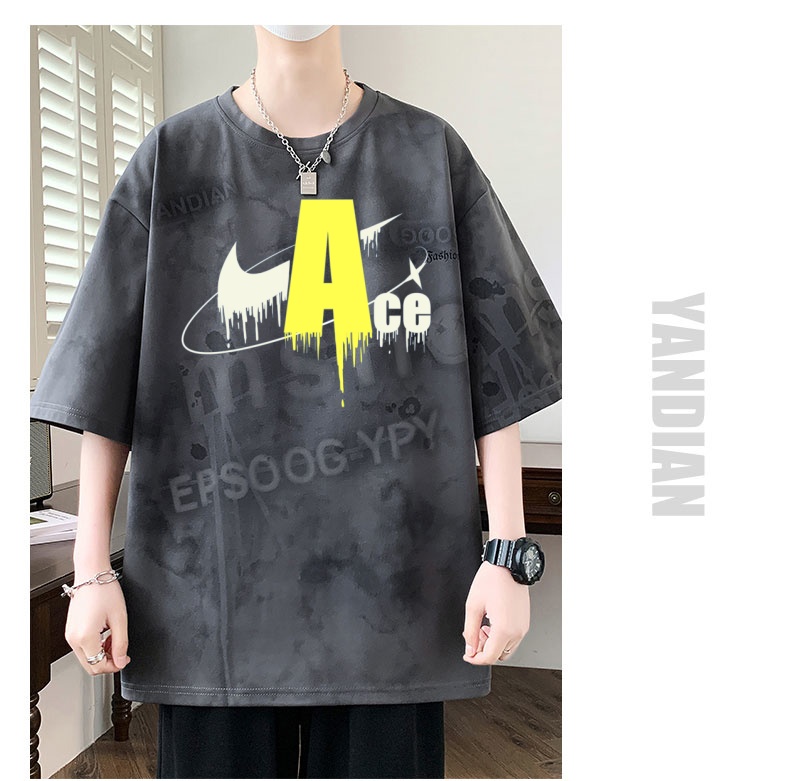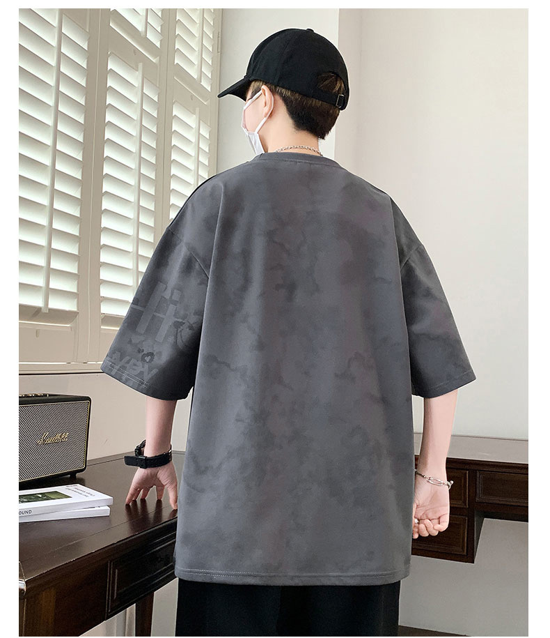 耐克顿T恤男夏季新款潮牌大码不规则满印圆领宽松休闲百搭五分袖