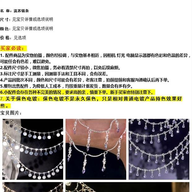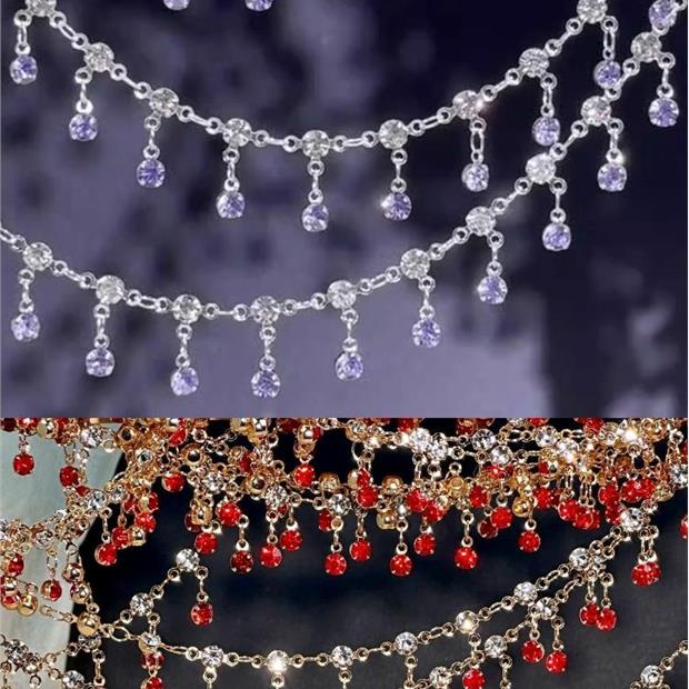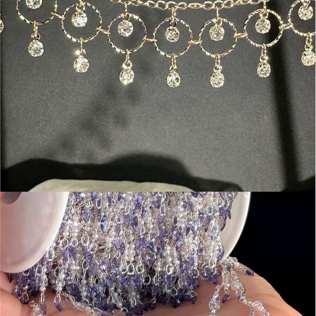 DIY手工服装鞋包辅料铜链条流苏彩色锆石排须链饰品挂坠链材料