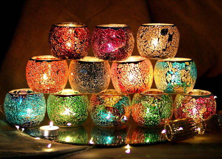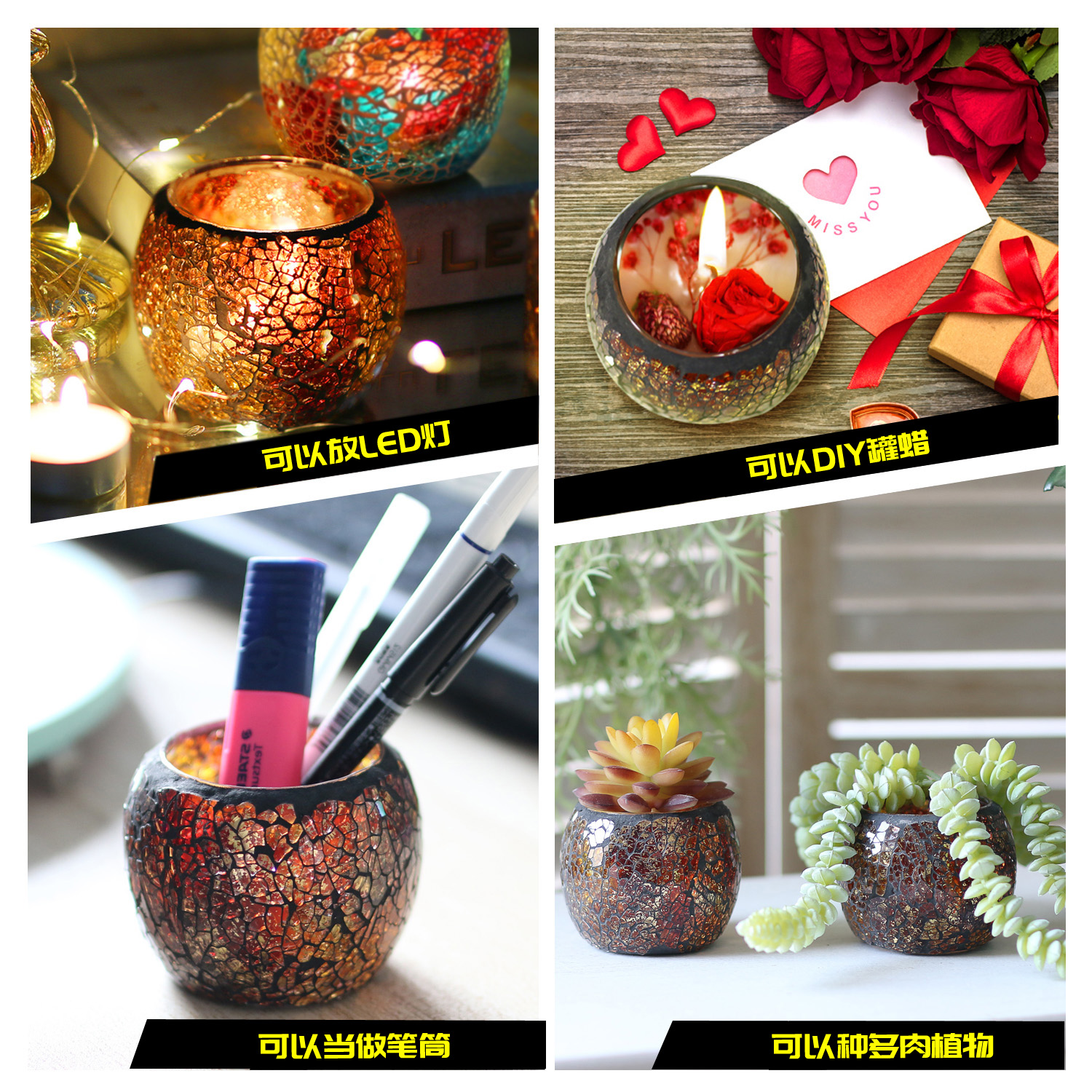 马赛克玻璃烛台欧式烛光晚餐创意婚庆蜡烛杯道具餐桌摆件酥油灯
