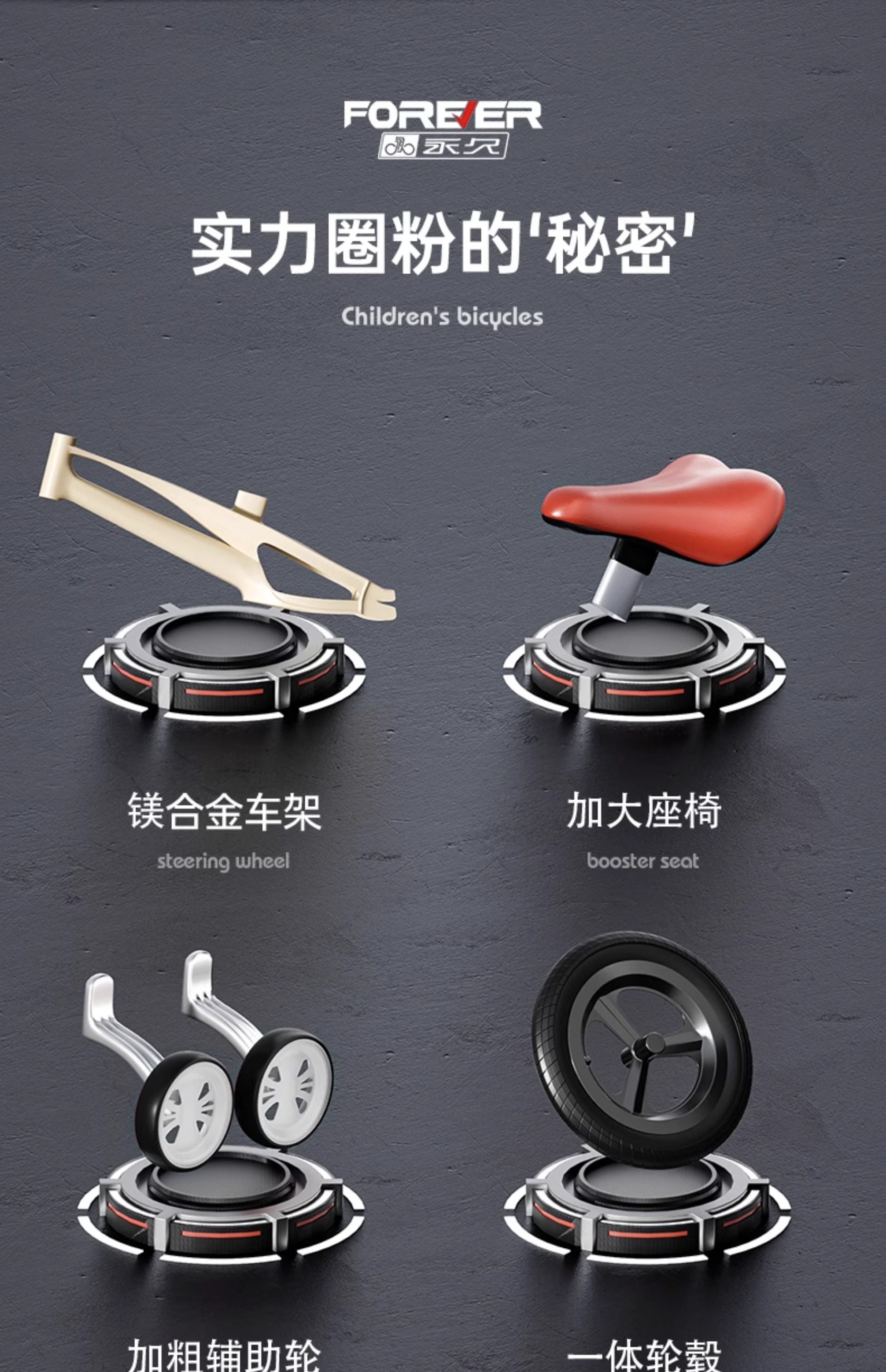 永久镁合金儿童自行车男女孩2-3-6-12岁宝宝小孩学生脚踏中大童车