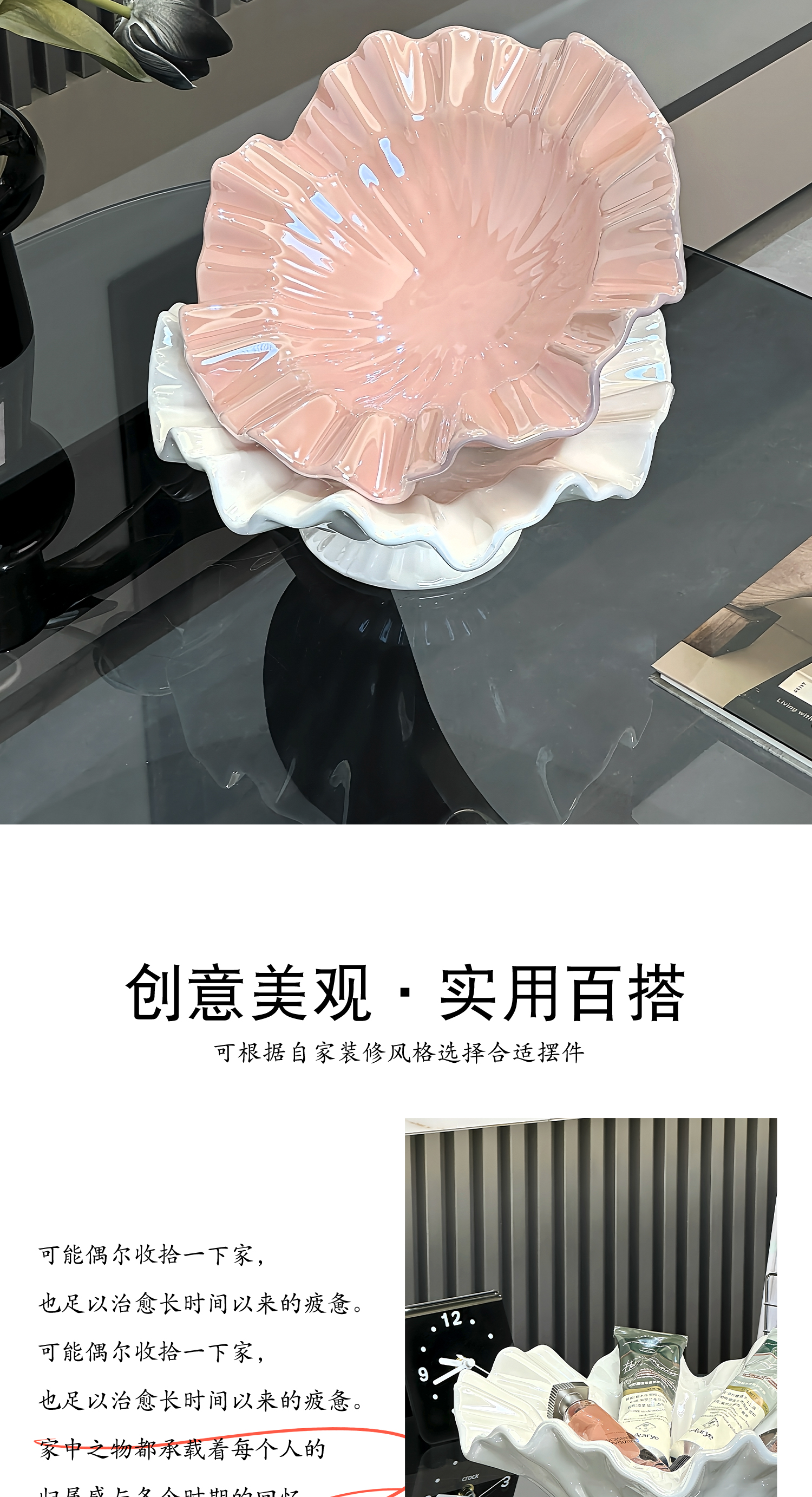 高颜值果盘陶瓷花边高档摆放零食创意水果盘客厅茶几家用2024新款