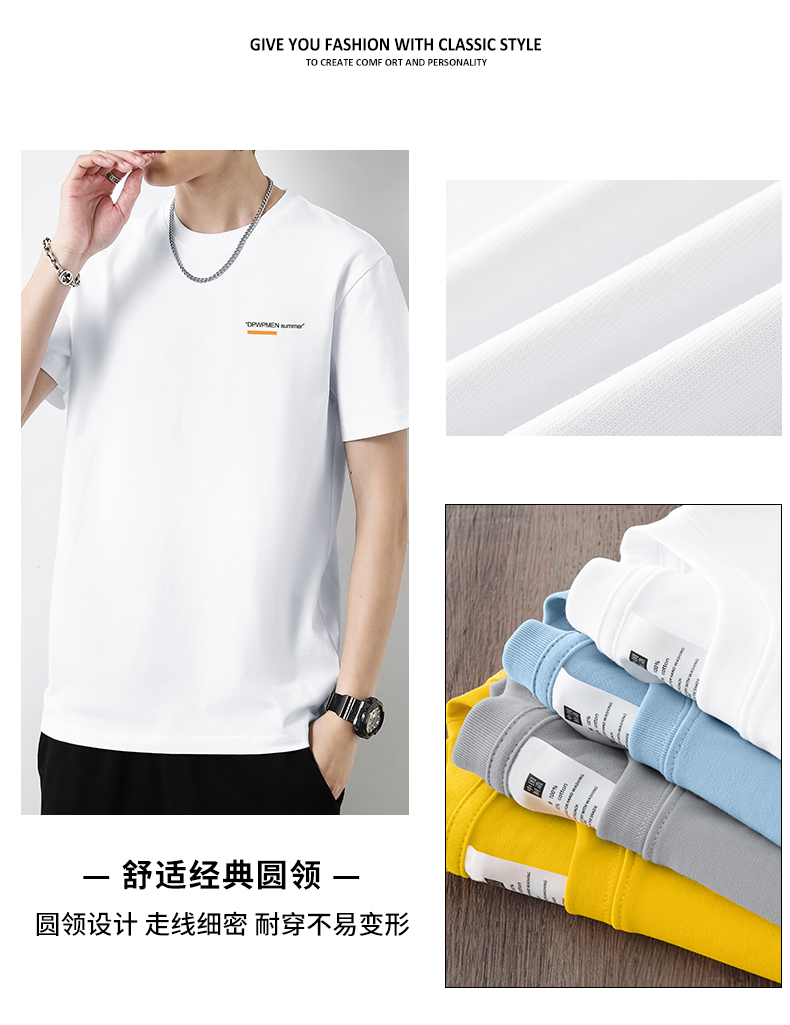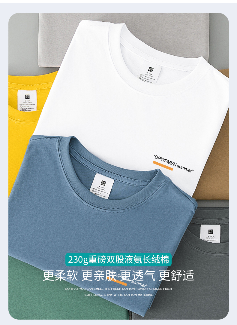 230g重磅纯棉短袖t恤男装圆领潮流夏季液氨长绒棉打底衫全棉半袖