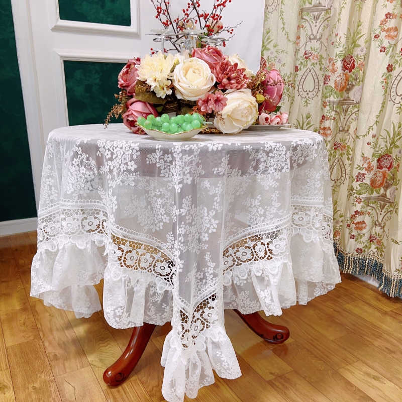 ins风复古法式蕾丝床头柜桌布小清新盖布打印机微波炉家用防尘罩