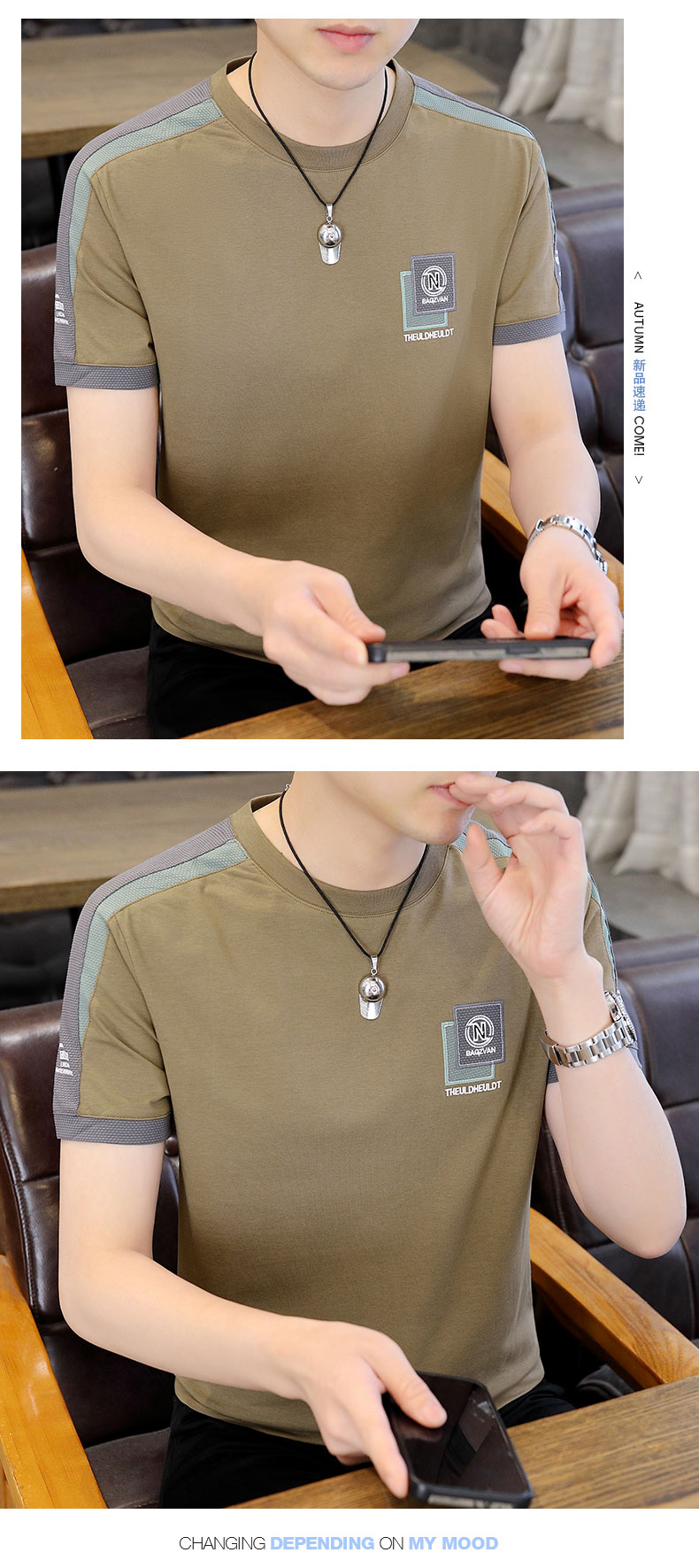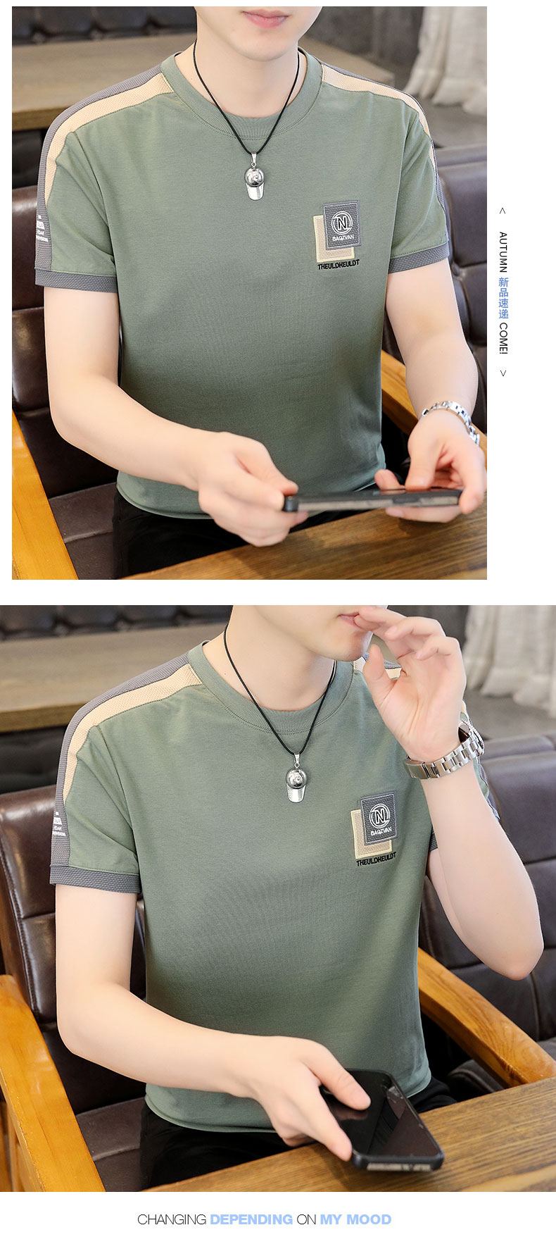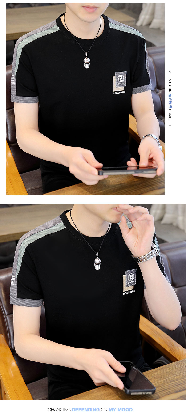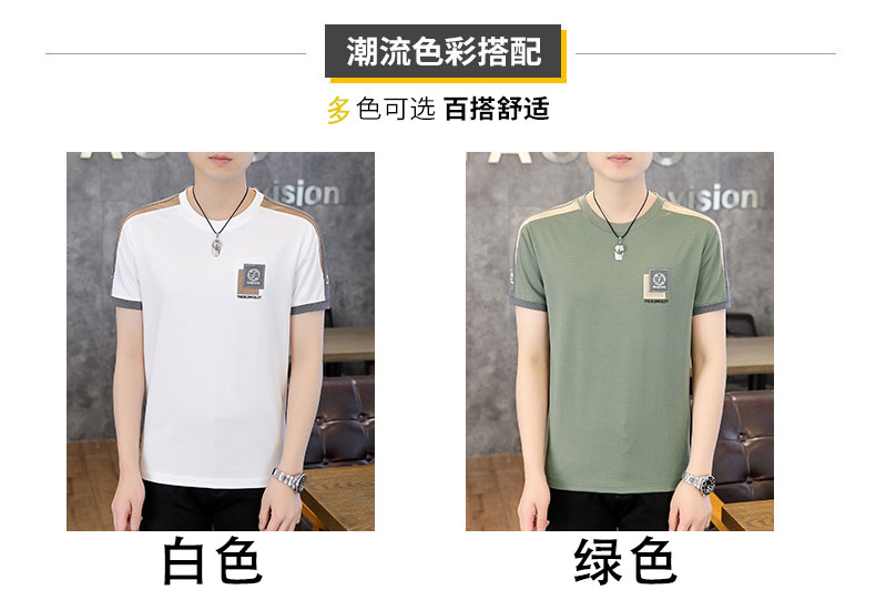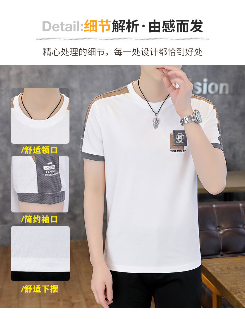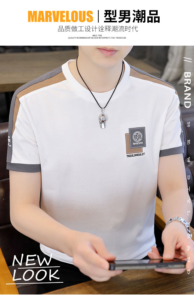 男士短袖T恤 夏季薄款棉质上衣 休闲潮流男装衣服 刺绣半袖男汗衫