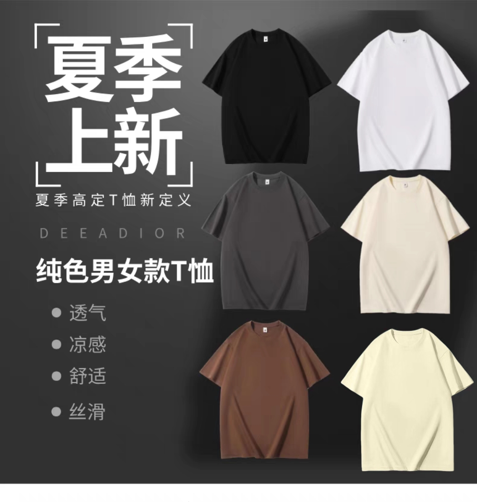 2025夏季新款男女同款圆领短袖T恤纯色简约百搭休闲上衣1