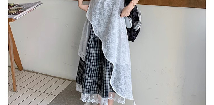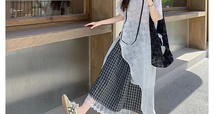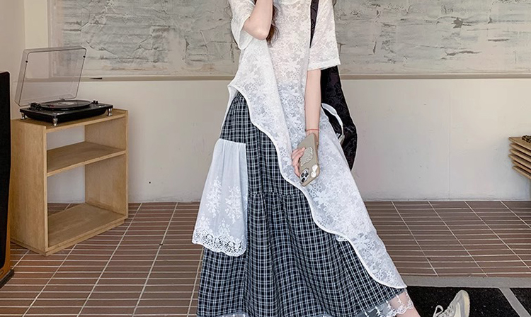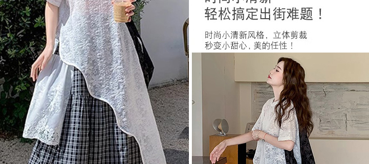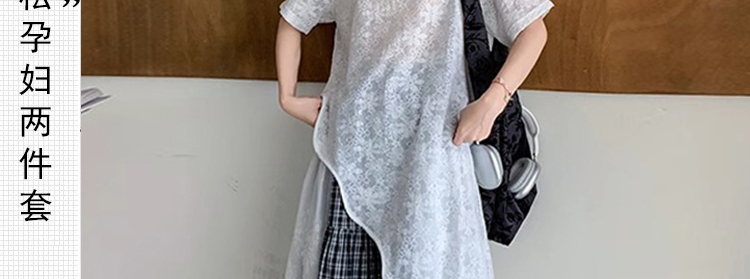 时尚洋气孕妇夏装新款休闲设计感格子半身裙宽松不规则罩衫两件套
