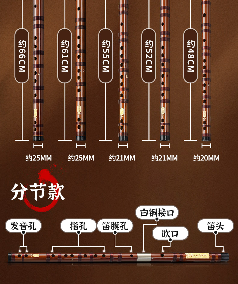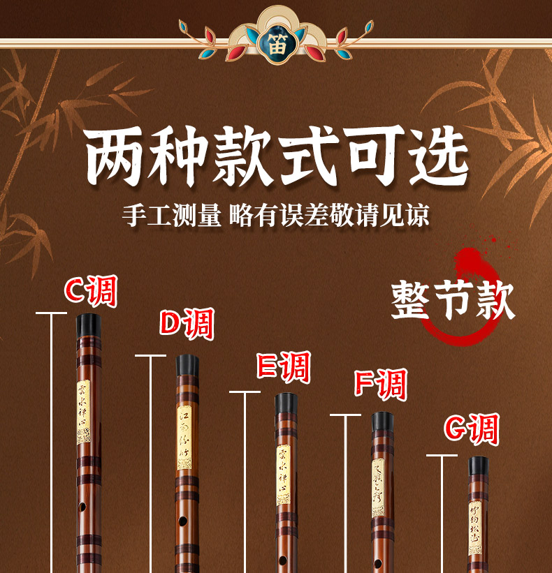专业笛子初学者零基础竹笛入门苦竹f演奏级c调成人e儿童g横笛乐器