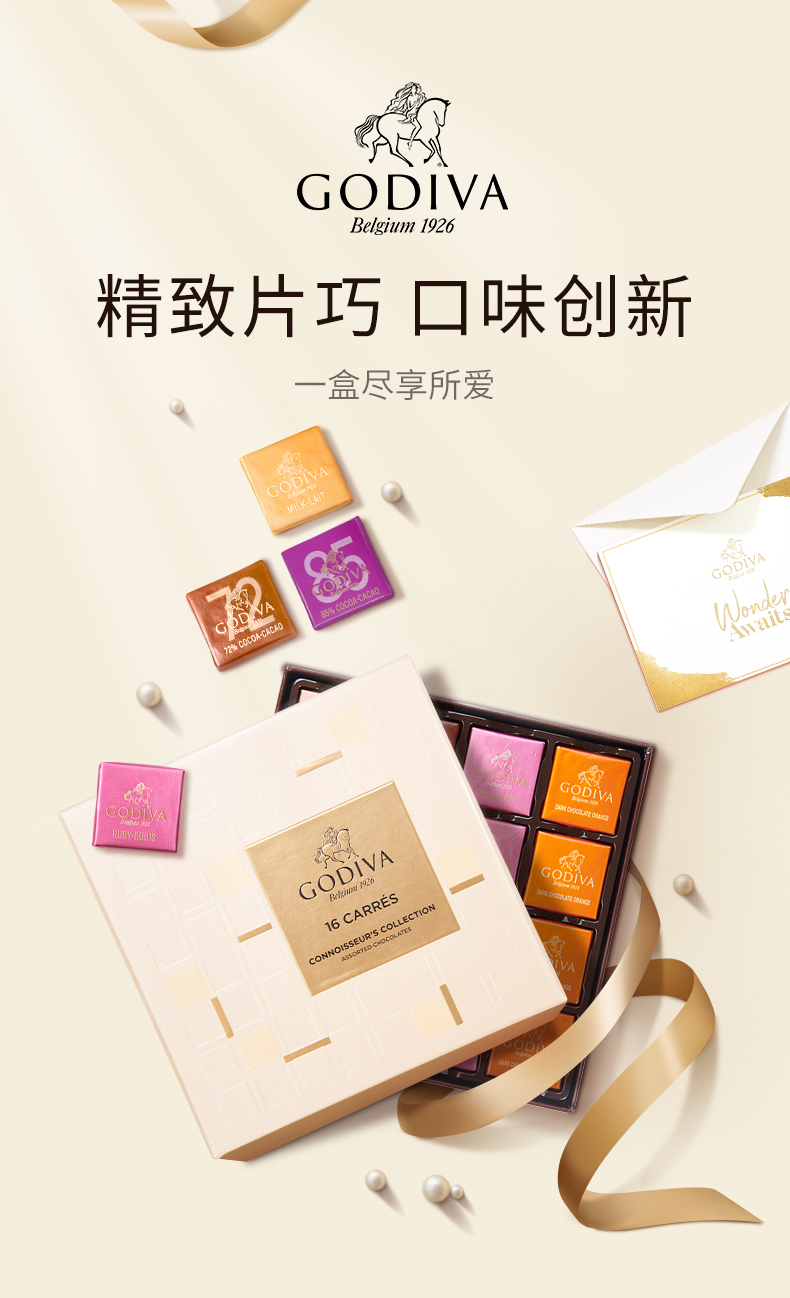 GODIVA歌帝梵黑巧克力礼盒16片装生日送礼物零食原产国比利时