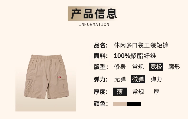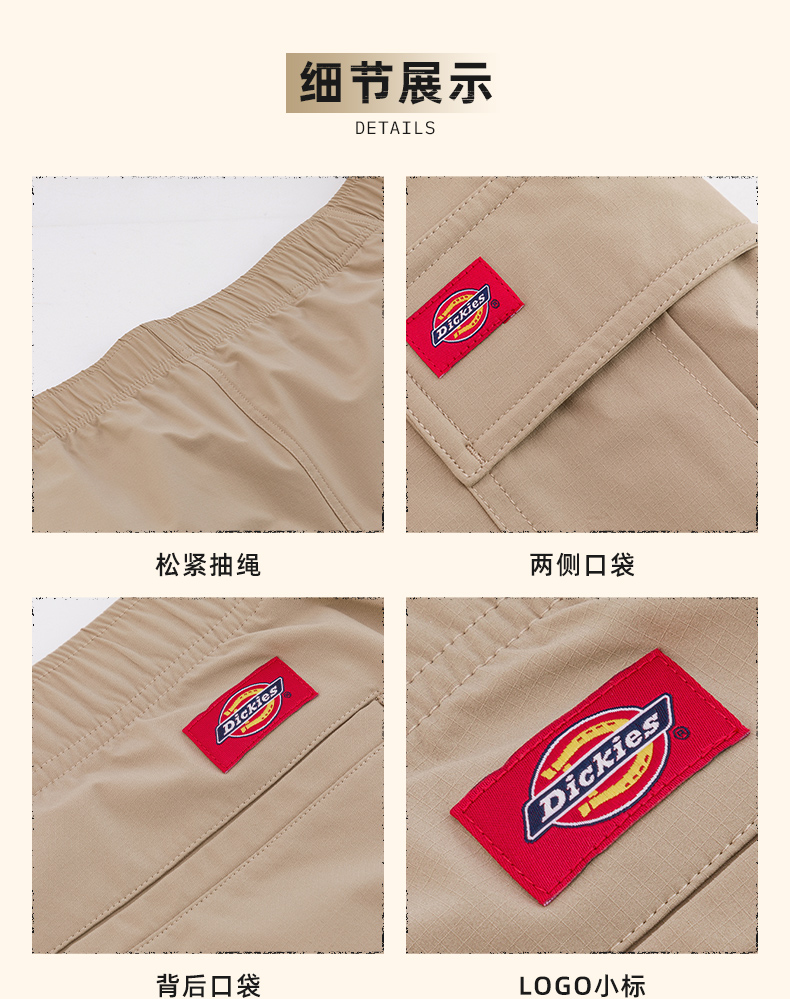 Dickies25春夏新款 休闲宽松版型多口袋工装短裤松紧腰围男女情侣
