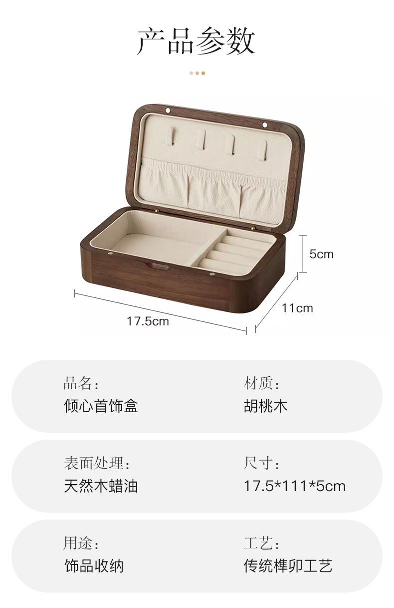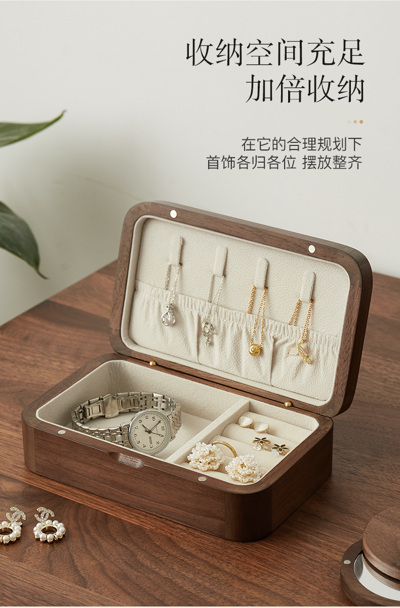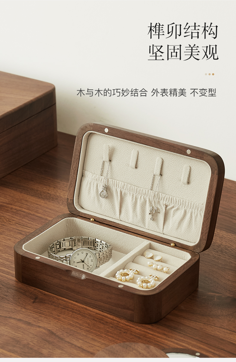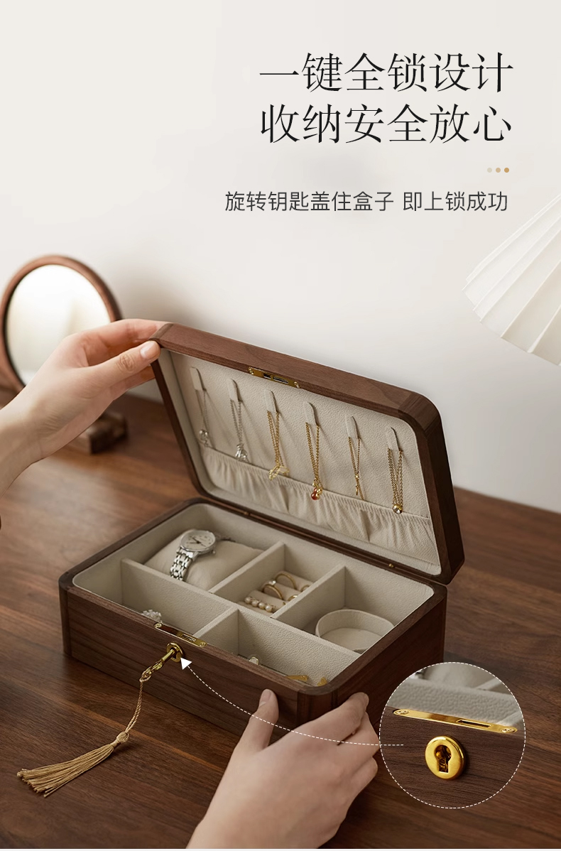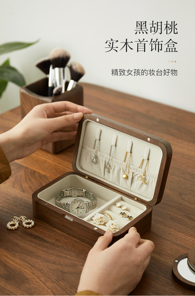 实木首饰收纳盒家用珠宝大容量耳钉项链木质饰品便捷高档精致小型