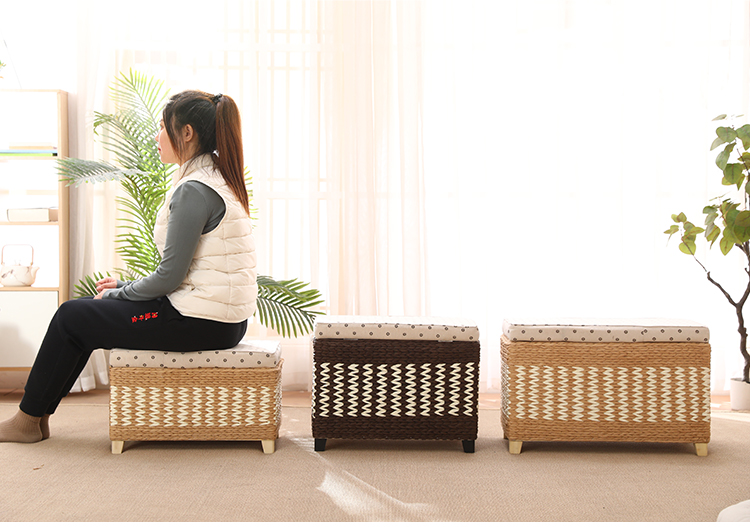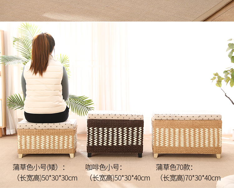 藤编坐凳收纳凳储物凳子茶几换鞋凳实木板家用可坐人整理箱沙发凳